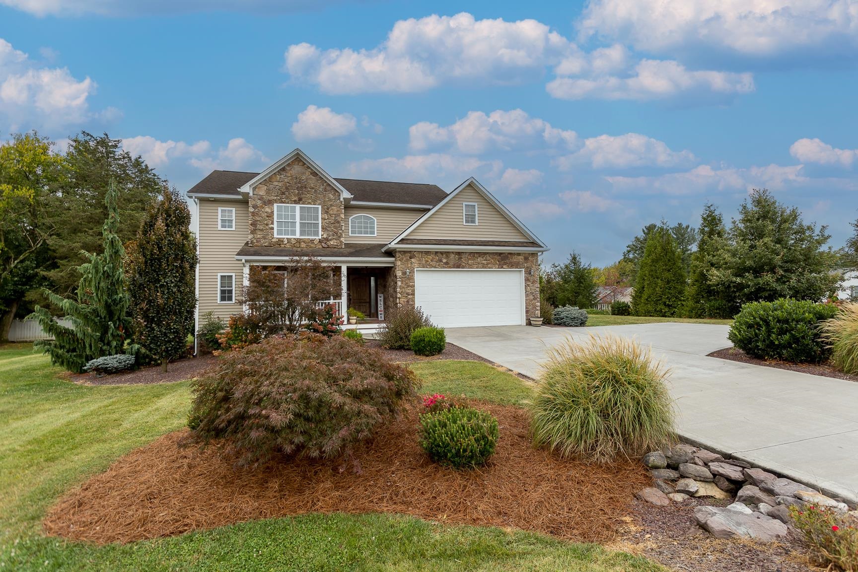 Live like a Royal in a splendid custom-built home - your very own castle - in the new town of Elkton. A fun, historic town filled with good food, breweries, charming shops, and endless recreation. Located in a prime location in the cheerful neighborhood of Woodbridge, without the expense of an HOA. With thoughtful care, this 4 BR, 3.5 loo home has been lovingly maintained. Wood flooring graces the interior, whilst a stone-accented façade and inviting covered veranda complete the charm. Step inside to enjoy warm mocha with sunlight each morning and evening with a shot of espresso and bit of chocolate. Imagine the splotches of color to add to the new neutral. Carefully selected to add warmth and depth. A handsome stone fireplace anchors the great room, whilst connecting the open culinary suite, breakfast nook, family living, veranda, and garden. Two walk-in pantries and large laundry. Capturing elegance and practicality, the expansive primary is a true retreat adorned with crown moulding, spa-style bath, jetted tub, dual vanities, and hidden safe. Well built. Well designed with hidden storage. Select landscape by Shreckhise. Set in a prime location—this is a home made for living well or well, like a ROYAL living.