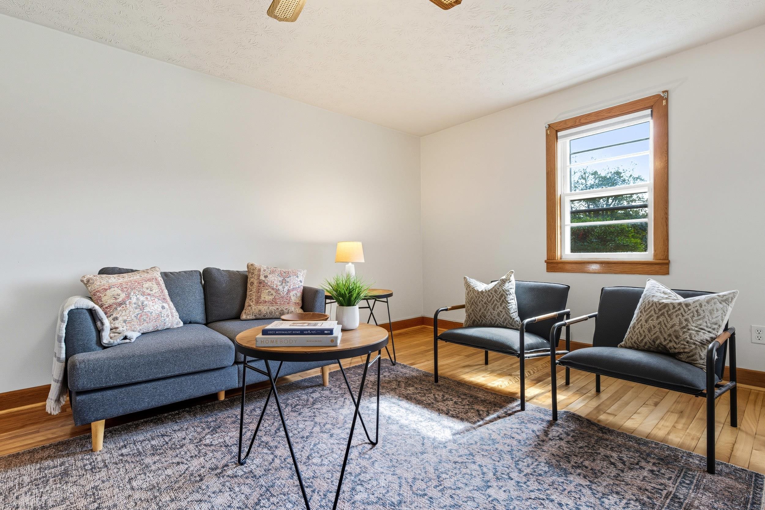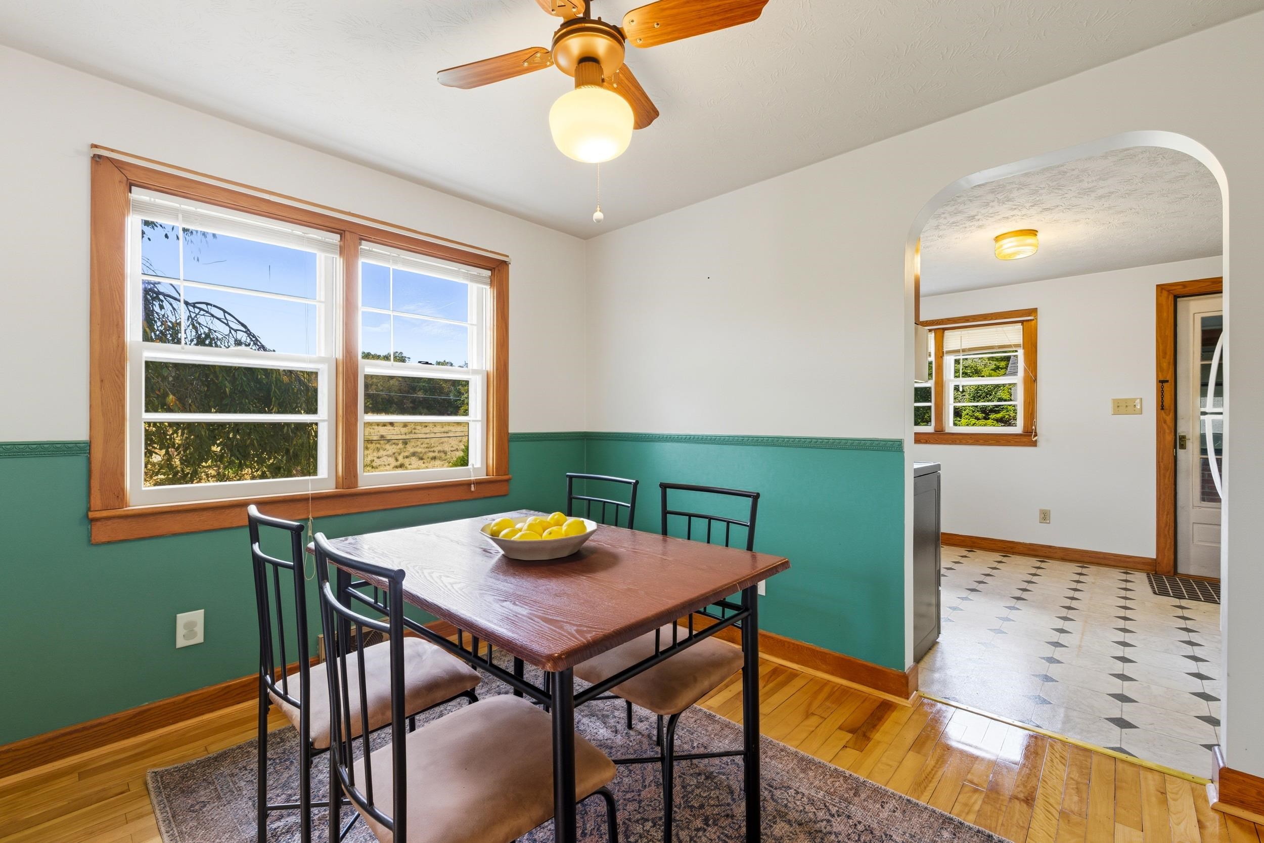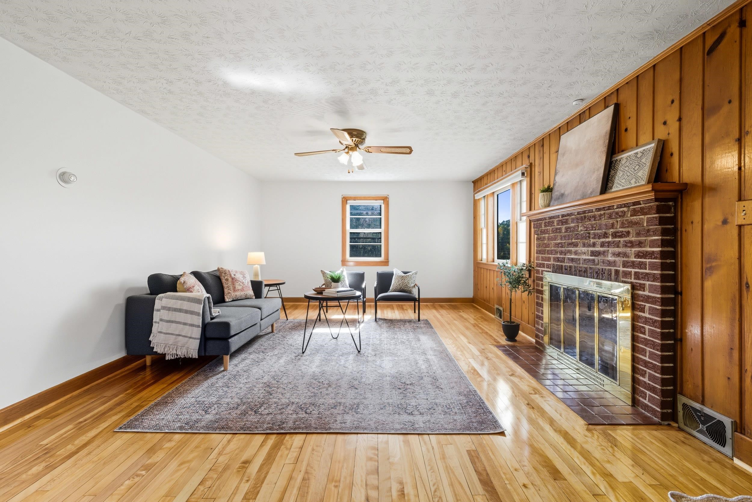 Nestled on 1.63 acres, this charming brick rancher is the perfect place to enjoy the outdoors, while just a mile from Harrisonburg amenities. This one level home includes a paved driveway and carport for easy entry. The side porch is the prefect drop spot for coats and shoes, prior to entering the kitchen. Don't miss the lovely mountain views out all the kitchen windows! The floor plan seamlessly flows from kitchen to dining room, followed by a large living room with fireplace. The home includes 3 bedrooms and a recently remodeled bathroom with new plumbing. The freshly refinished wood floors are a show-stopper, as well as the charming arched doorways. The home includes a full unfinished basement with plenty of room for storage or future space to expand. Other recent updated include: AC replacement (2022) and roof replacement (2021). If you are looking for the perfect outdoor space, in a highly desirable area, this just may be the one!