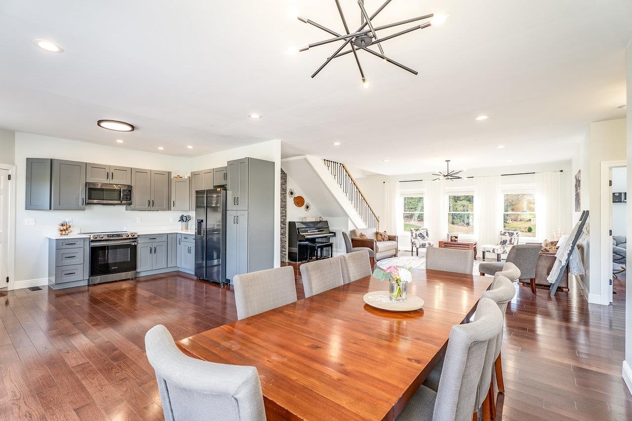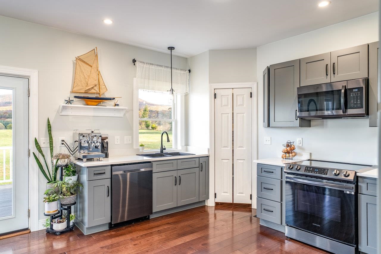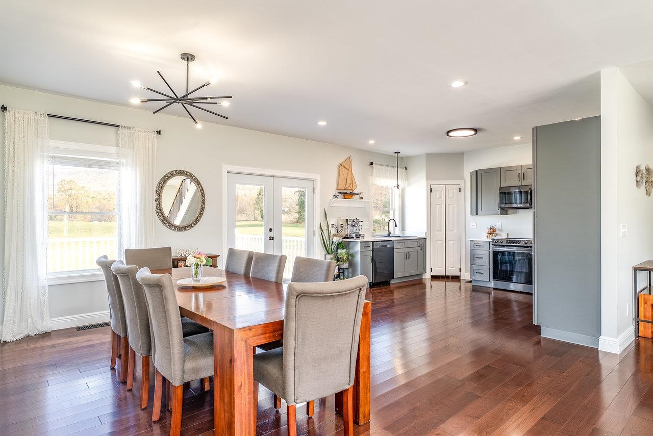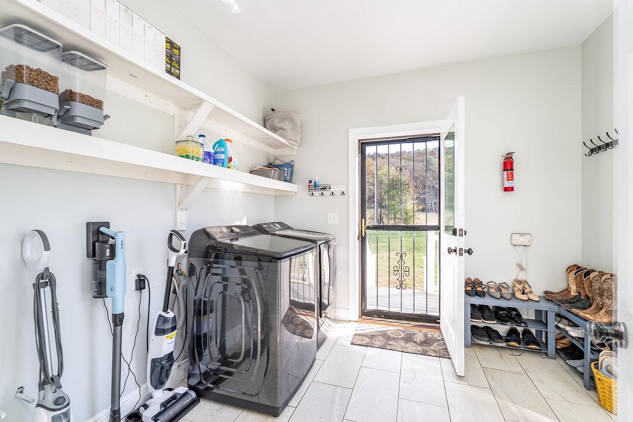 Peace and quiet just minutes away from the convenience of town! This one-level living is situated on over 12 acres of land. You'll be stunned by the views opening from the wraparound porch! The house features 3 spacious bedrooms on the main level, along with 2.5 bathrooms. The office is tucked away behind the stairs. You'll find unfinished attic space ready to be converted into additional living space with a rough-in for a bath already taken care of. The basement level offers a mother-in-law suite with its own full kitchen, an island that extends to a dining table, bedroom, full bath, laundry room, and separate water heater and HVAC unit. If you have a musician, you'll love the soundproof right bedroom with wired speakers. Come see this place for yourself!