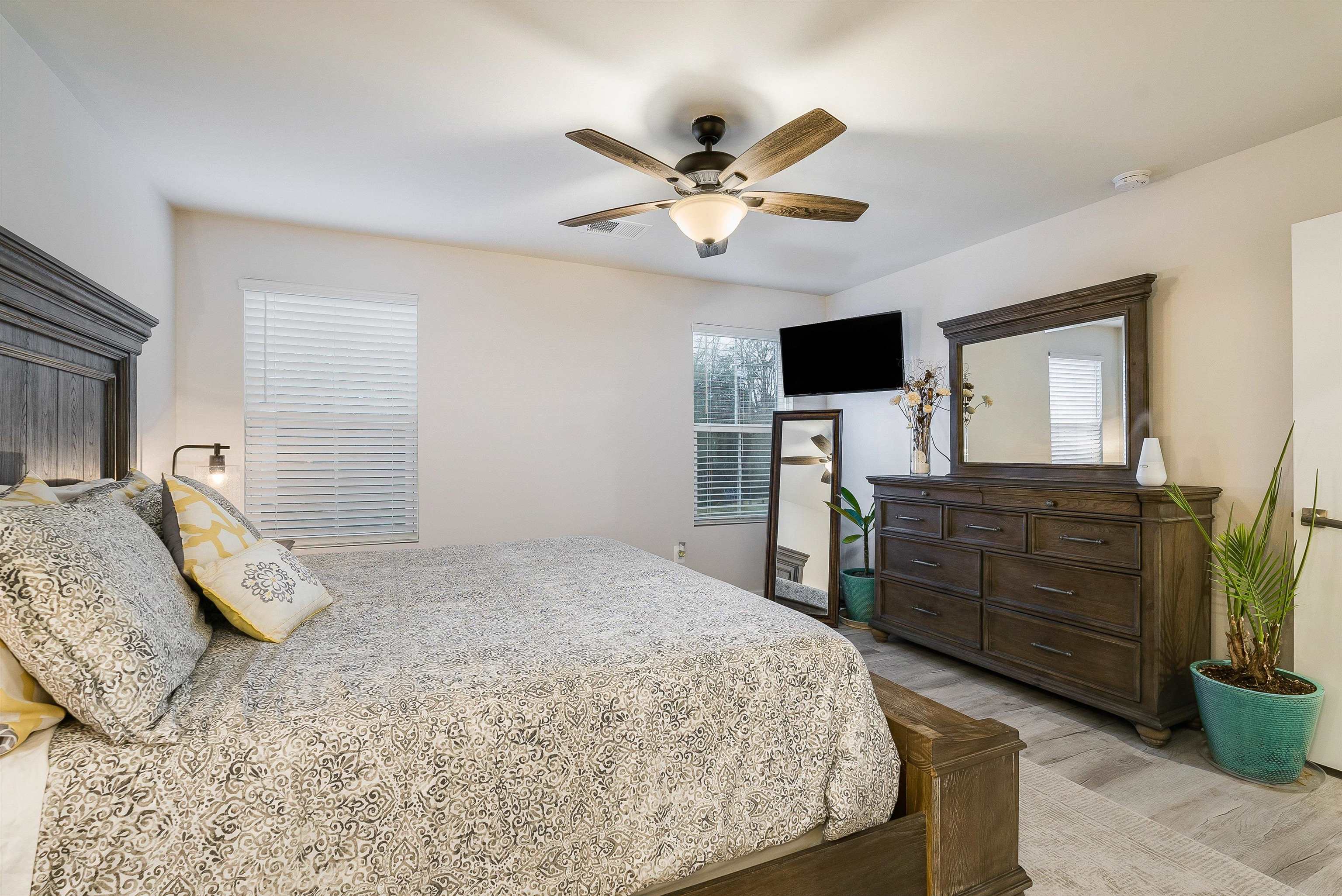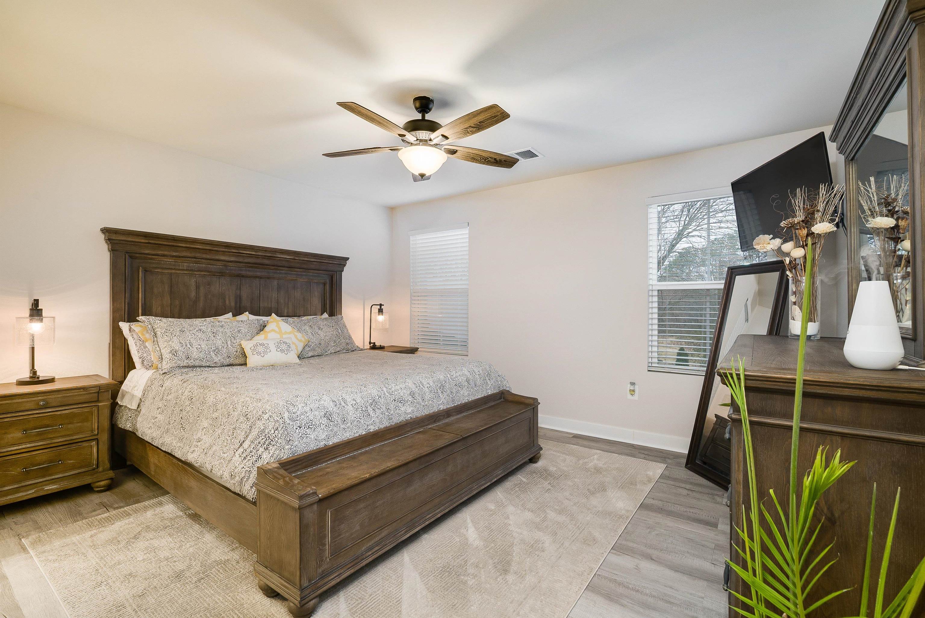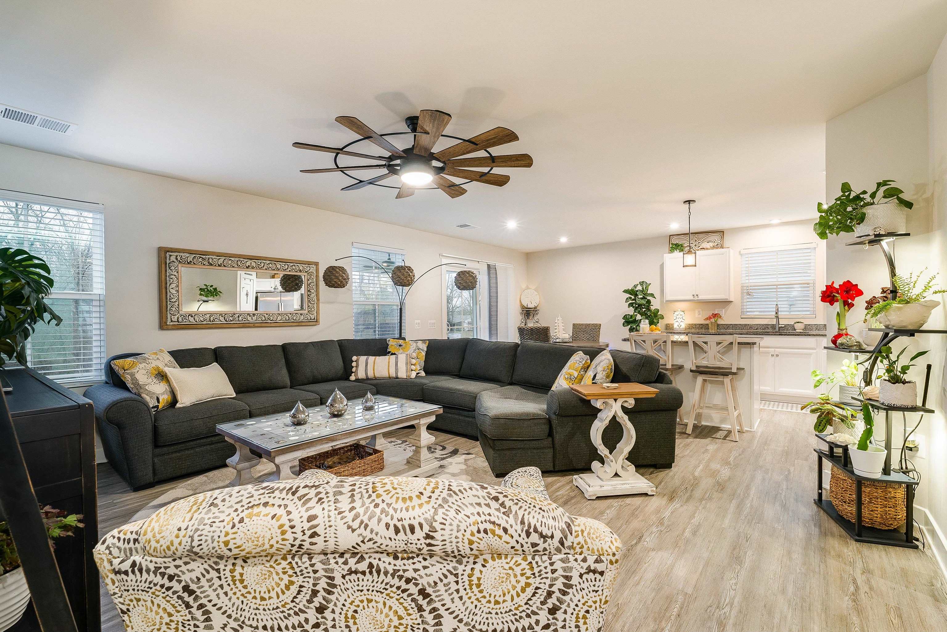 This one-level, open concept villa with a pond view offers modern conveniences in a prime location. This home features 3 bedrooms and 2 baths, including a spacious owner's suite with private bath and walk-in closet. Enjoy a 2-car garage, stainless steel appliances with gas cooking, granite countertops. luxury vinyl plank flooring and a tankless water heater and extended partially covered back patio. Located in South Peak, residents enjoy maintenance-free living and stunning views of Massanutten's Southern Peak. Every home is third party tested, inspected, and HERS scored for energy efficiency and quality assurance/