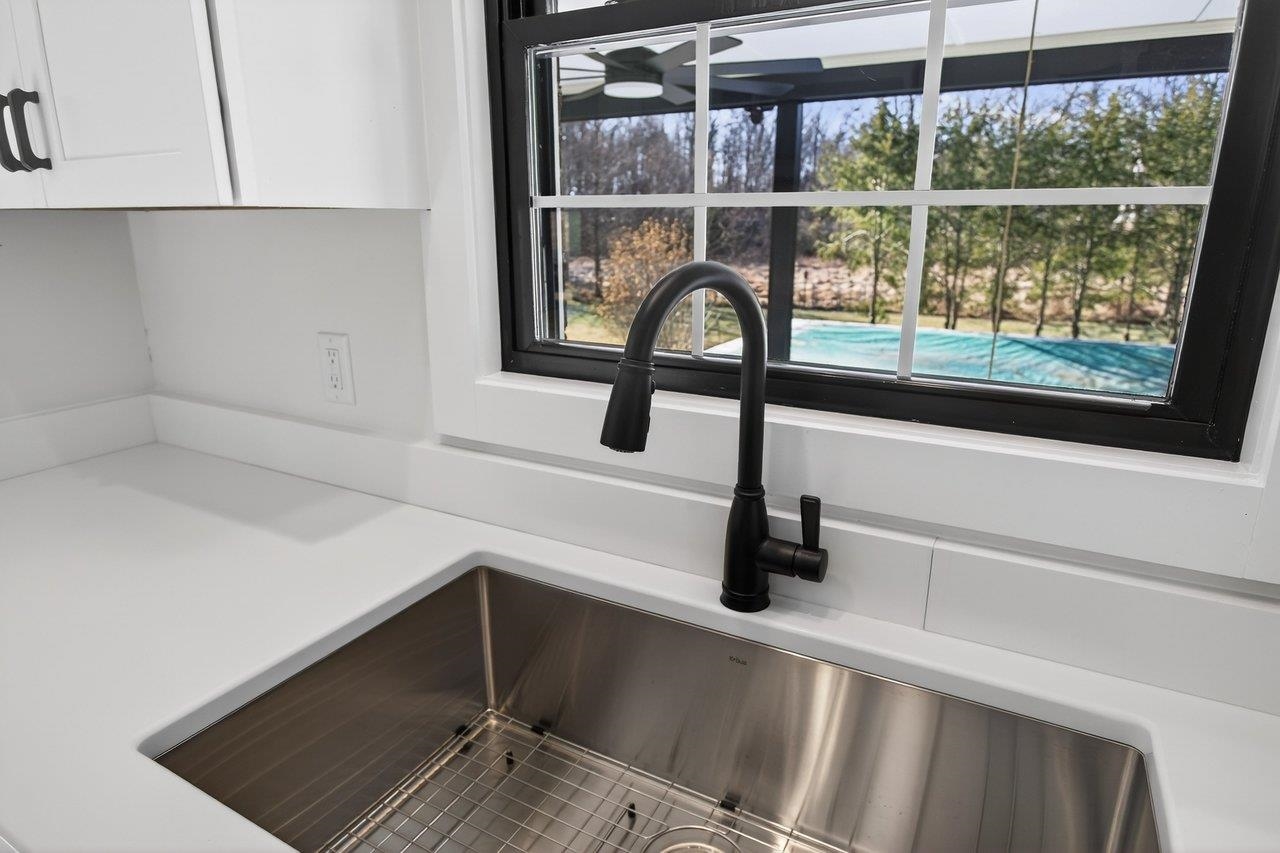 I'm not sure Chip and Joanna could have done it any better! The Sellers designed, and then hired Gary Crummett & Sons Construction, to gorgeously transform this home into a modern-day beauty. Looking through the trees of Shen Lake Dr, the freshly painted white brick and black trim provide instant curb appeal from the street. Once inside, you will be greeted with abundant natural light and the feel of a new home (because it practically is!). No corners were skipped with the renovation. Highlights include a new, stylish kitchen with granite counters, soft-close cabinetry, and tile floor. A primary suite that was expanded to include a private, full bathroom. A completely new finished basement with a large rec room, two spare bedrooms, a full bath, and an oversized laundry room. New/updated baths, hardware, fixtures, paint...the list goes on and on. Major component updates include a new HVAC system and a perimeter drainage system installed by Fortress Foundation Solutions with a lifetime warranty! A large rear patio leads the way to your private pool. And, there is still plenty of additional yard space for gardening and play. A single-car garage and carport area provide ample parking for visitors.