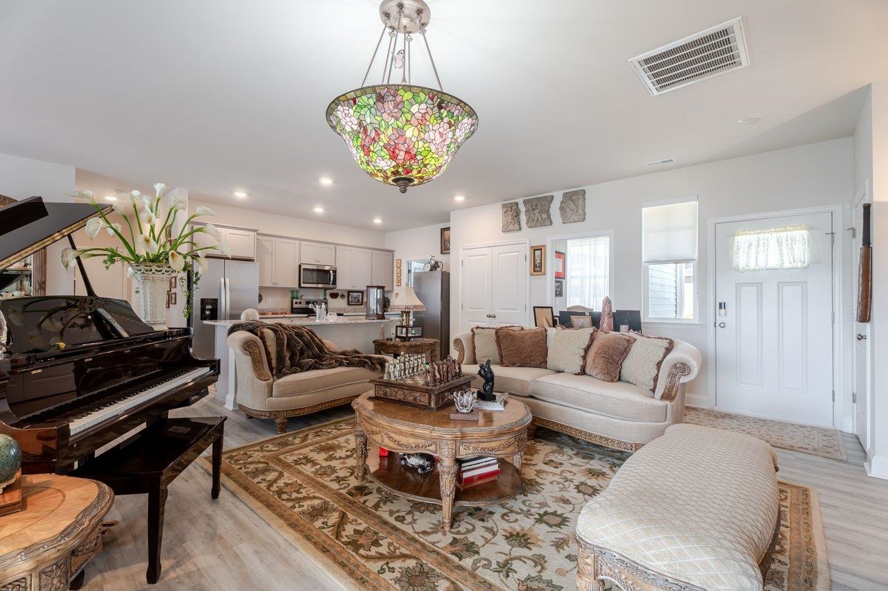 Featuring the popular Dylan floorplan, this practically new 3-bedroom, 2-bath single-story home with builder warranty offers a perfect blend of modern style and everyday comfort. Recent upgrades include an insulated garage door, storm door, added garage shelving, and blinds throughout the home. The open-concept SMARTHOUSE design creates a bright and spacious living area ideal for entertaining or unwinding with family and friends. Perfect for those seeking low-maintenance living, the private primary suite boasts an en-suite bathroom and a generous walk-in closet. Two additional bedrooms and a full bath provide flexible space for guests, and/or family. The kitchen flows effortlessly into the living area, enhancing both daily living and gatherings. This floorplan also features a dedicated office space just off the kitchen area. Energy-efficient features and an enclosed laundry room—washer and dryer included—add convenience and value. This thoughtfully designed single-story home delivers the ideal balance of style, comfort, and functionality with modern amenities throughout, including a sprinkler system for easier lawn maintenance.