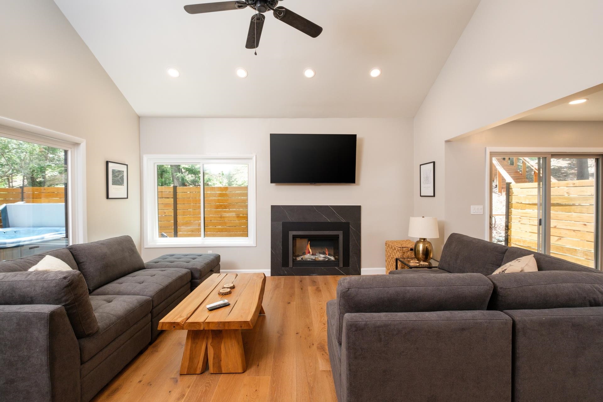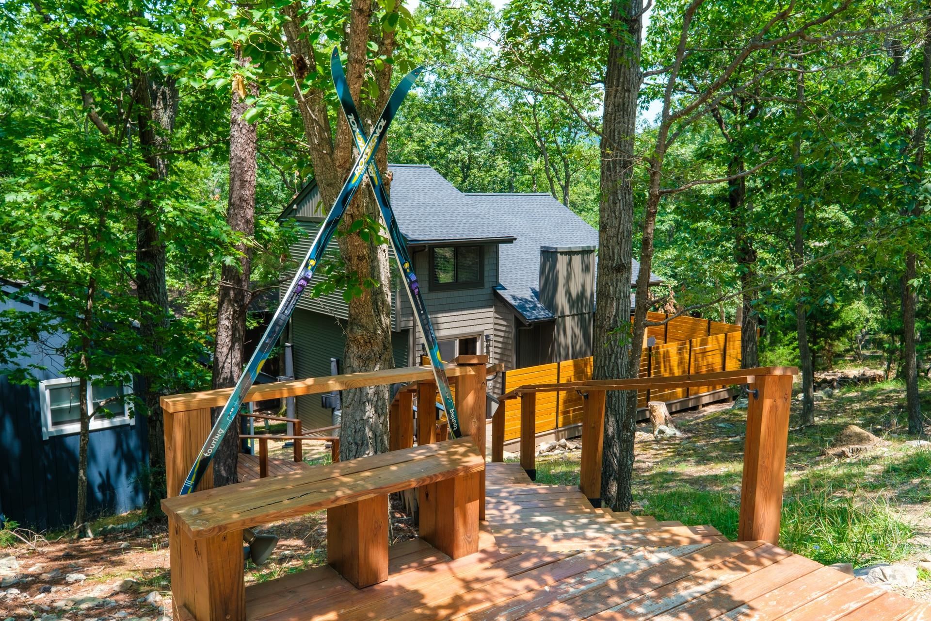 Located in Massanutten Resort (Skiing, Golfing, Waterpark) - just minutes from the Slopes---Fully Renovated Property with a 2 Story Living Room and Electric Valor Fireplace - New Kitchen features Stainless Appliances, Diamond Jamestown Colt wood cabinets, Leathered Black Pearl Granite Counters, and Kraus Stainless Steel Sink and Faucet - Brûlée White Oak Wire Brushed Engineered Hardwood on Main & Upper Levels - White Oak Solid Hardwood Stairs to Upper Level - Two New Bathrooms with Ceramic Tile to the Ceiling in the Shower with Seamless Glass - Three Bedrooms - New Trex Deck - New Hot Tub & Firepit - Bunk Beds included - New Roof, Vinyl Siding, Trim & Gutters - Windows Replaced in 2021 - Massanutten Owners enjoy use of the MPOA Pool from Memorial Day until Labor Day and Tennis Courts Year Round in addition to discounts on Mini Golf, Bumper Cars, and Go Karts at the Family Entertainment Center- Additional Features of the Massanutten Resort are Skiing, Golf Driving Range, Waterpark, Dining and Shopping(not included in the POA)--25 Minutes to Harrisonburg & JMU -- Surrounded by Hiking, Wineries, Dining and Scenic Drives -- 20 Minutes to Shenandoah National Park
