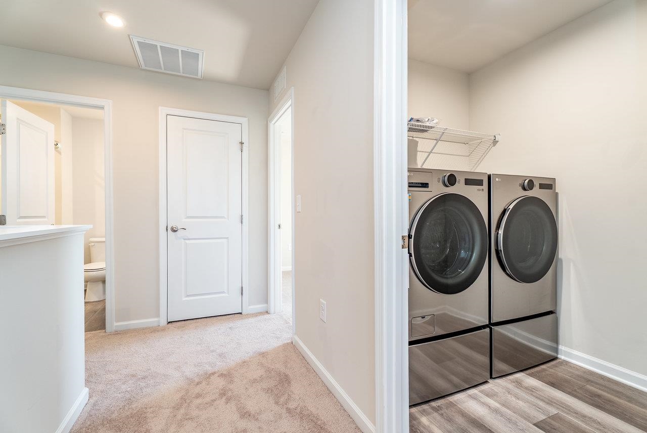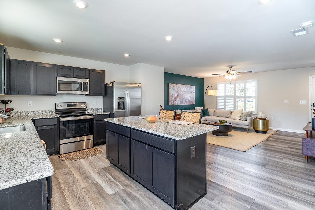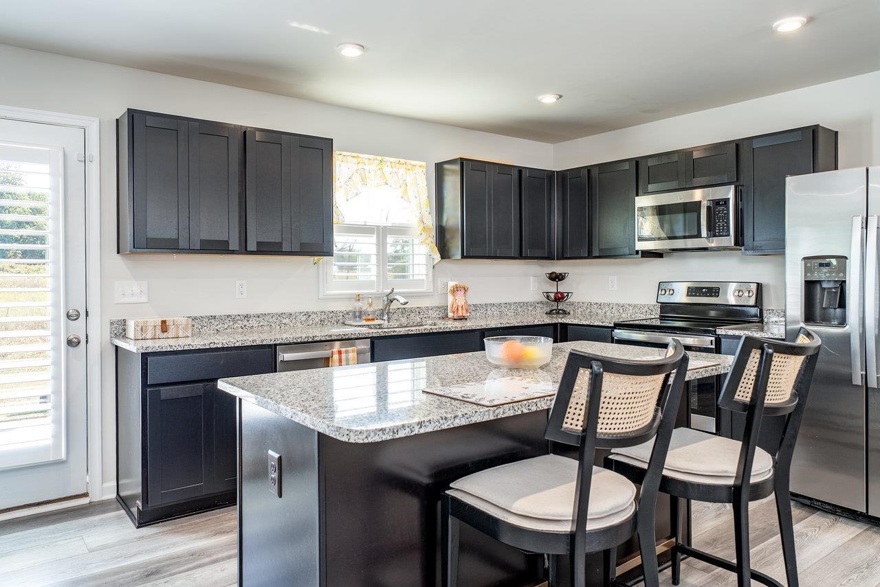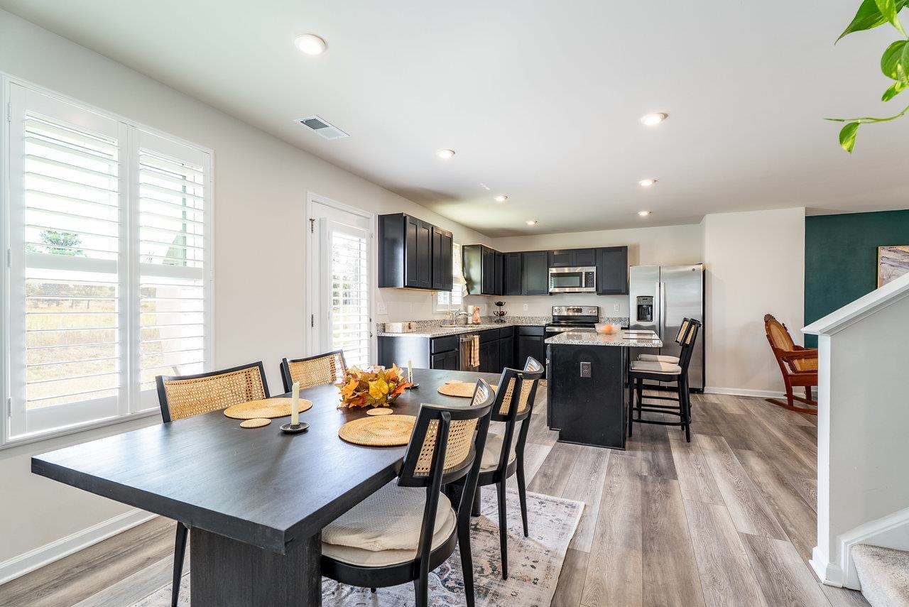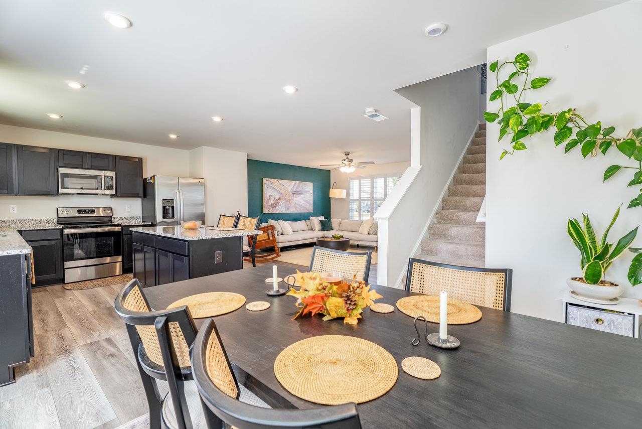 GORGEOUS & SPACIOUS HOME ready for your family in peaceful and quiet neighborhood. Back patio is perfect for watching local wildlife frolic in the green space behind the home as the sun goes down. The green space adds a little extra guaranteed privacy for your backyard enjoyment. Open the upstairs bedroom windows to create a comfy breezeway. Lots of kitchen counter space to make prepping meals seamless and pleasant. Attractive features include granite countertops, LVP on entire main level, large kitchen island, stainless steel appliances, plantation shutters, walk in closet in primary bedroom, brand new LG washer and dryer, some new carpeting, ceiling fans in each bedroom, main level flex room perfect for small non-conforming bedroom (no closet), home office, hobby room, etc.). Builder warranties on the home and warranties on the new LG washer and dryer for the new buyer's protection. Low maintenance, like new home is calling for you to CHECK IT OUT! You need to see it to truly appreciate all this floor plan has to offer. Make your appointment today!