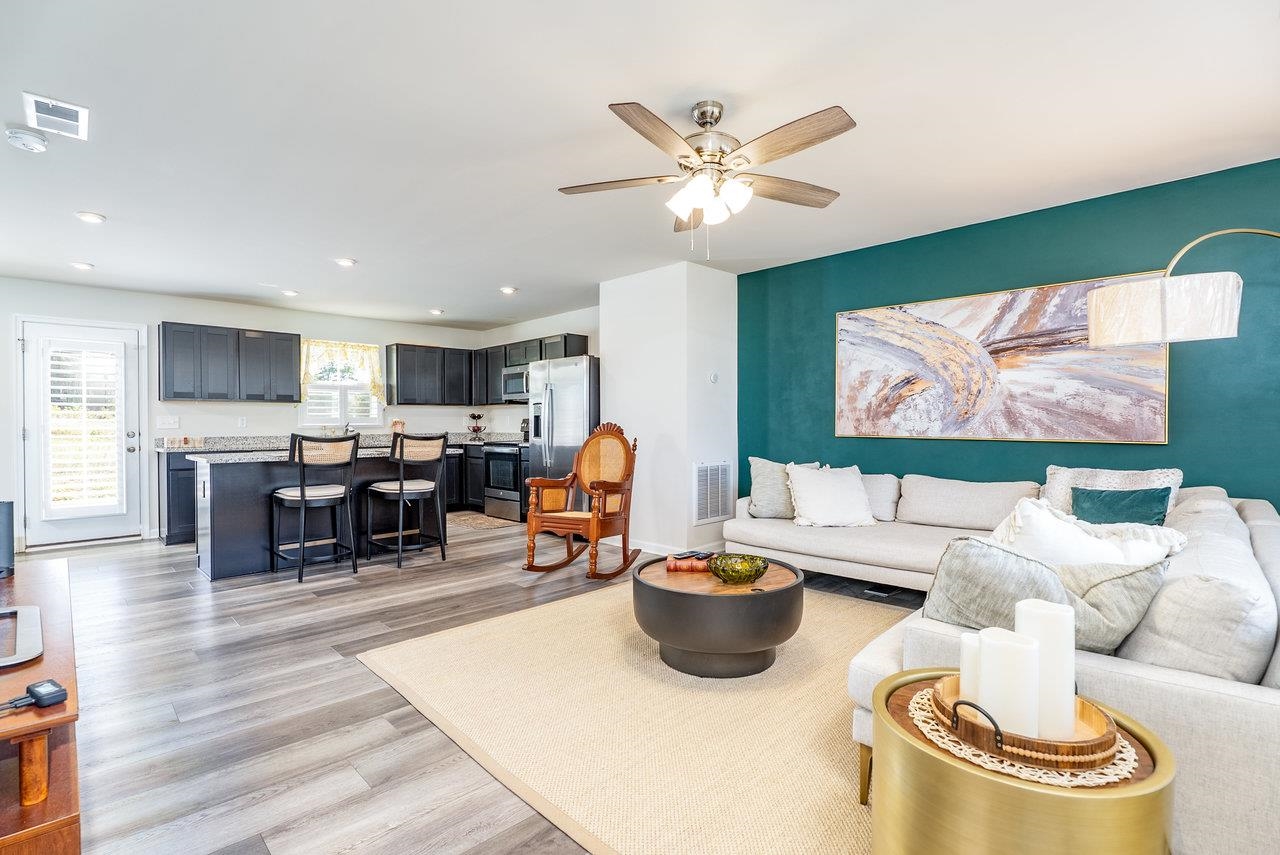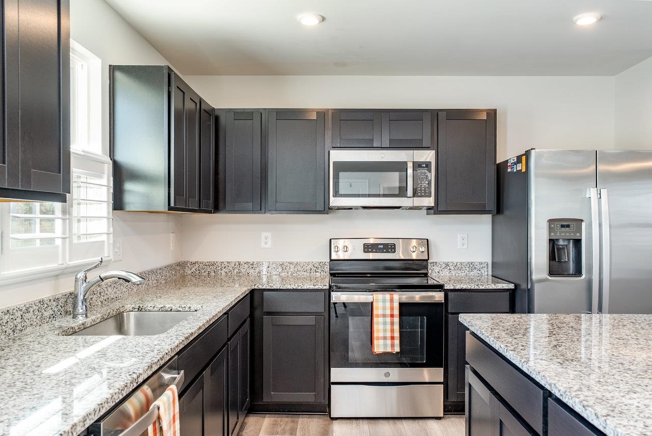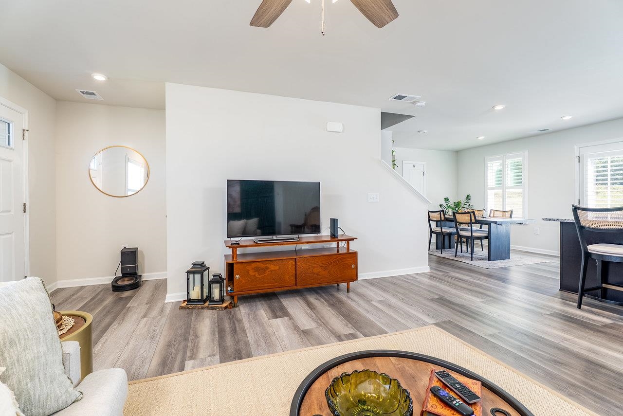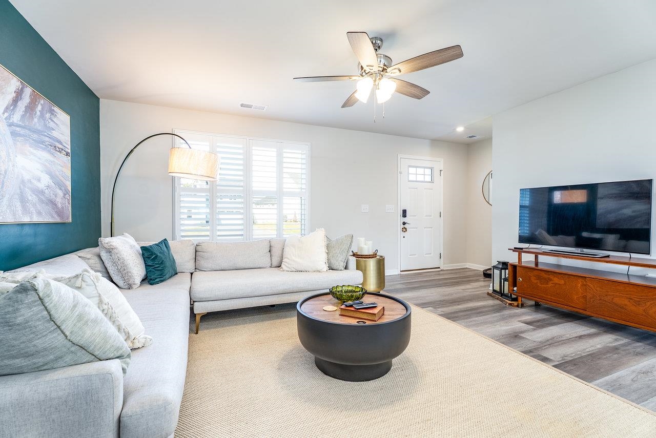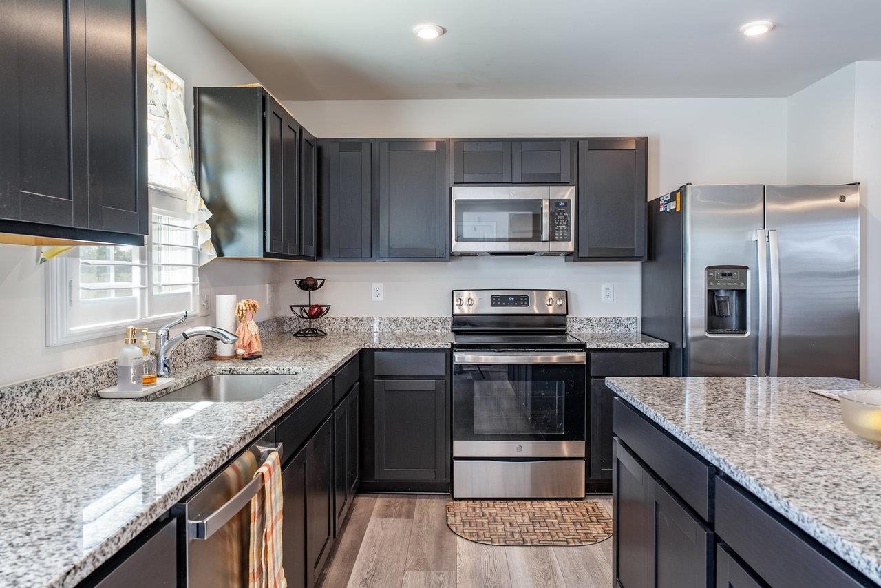 GORGEOUS & SPACIOUS HOME ready for your family in peaceful and quiet neighborhood. Back patio is perfect for watching local wildlife frolic in the green space behind the home as the sun goes down. The green space adds a little extra guaranteed privacy for your backyard enjoyment. Open the upstairs bedroom windows to create a comfy breezeway. Lots of kitchen counter space to make prepping meals seamless and pleasant. Attractive features include granite countertops, LVP on entire main level, large kitchen island, stainless steel appliances, plantation shutters, walk in closet in primary bedroom, brand new LG washer and dryer, some new carpeting, ceiling fans in each bedroom, main level flex room perfect for small non-conforming bedroom (no closet), home office, hobby room, etc.). Builder warranties on the home and warranties on the new LG washer and dryer for the new buyer's protection. Low maintenance, like new home is calling for you to CHECK IT OUT! You need to see it to truly appreciate all this floor plan has to offer. Make your appointment today!