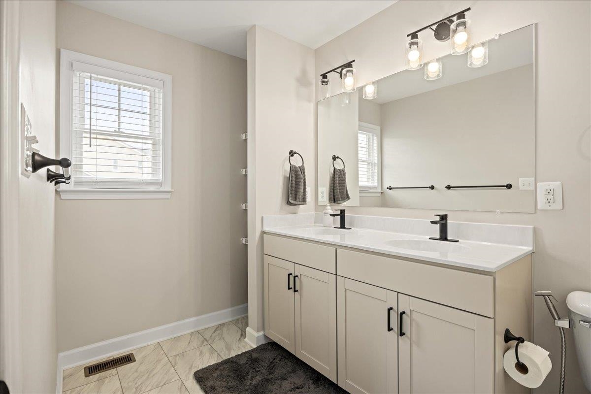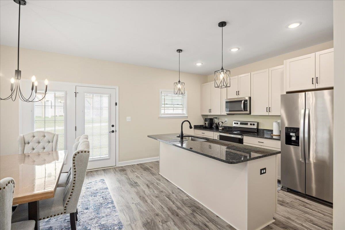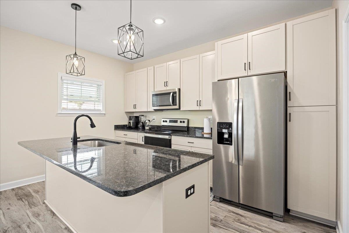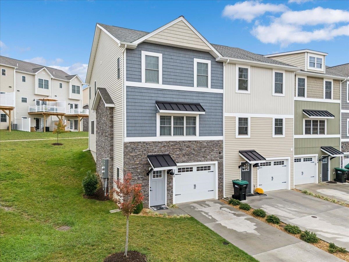 Modern end-unit townhome in Congers Creek, built in 2023 and move-in ready! This 3-bedroom, 2.5-bath home offers 1,736 finished square feet plus an unfinished basement with a framed-in full bath rough-in, giving you the flexibility to expand living space or create a guest suite, home gym, or media room. Enjoy 9-foot ceilings, luxury vinyl plank flooring, and an open-concept layout designed for modern living. The kitchen features granite countertops, stainless steel appliances, wood cabinetry, and a spacious eat-in dining area perfect for entertaining. Upstairs, the primary suite includes a tray ceiling, walk-in closet, and dual vanities, while two additional bedrooms offer versatility for family, office, or hobby use. Additional highlights include an attached one-car garage, private patio, and low-maintenance yard. HOA covers area maintenance, road upkeep, and community play spaces. Located minutes from James Madison University, Sentara RMH Medical Center, and downtown Harrisonburg, this home offers comfort, convenience, and room to grow in one of the area’s most desirable communities.