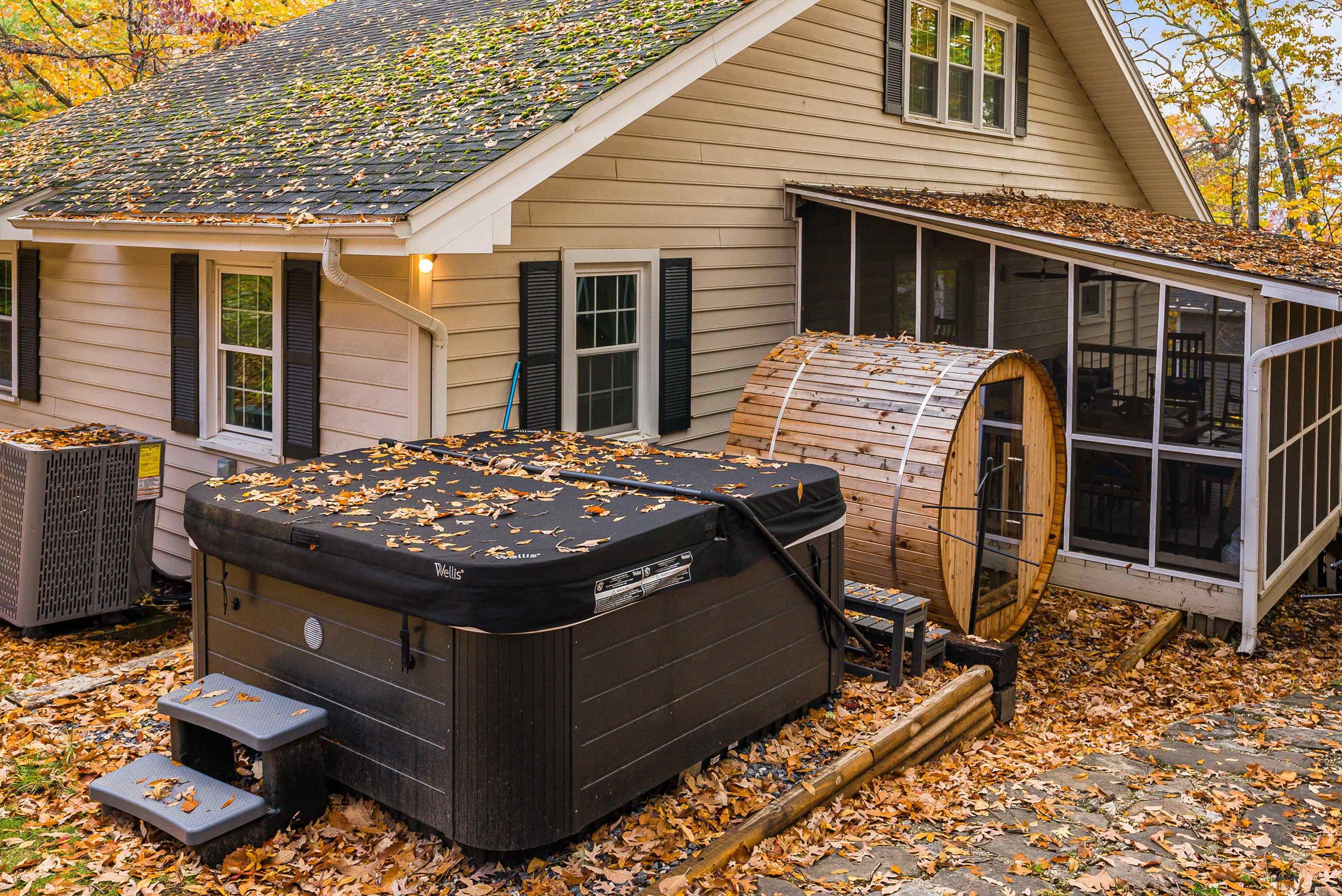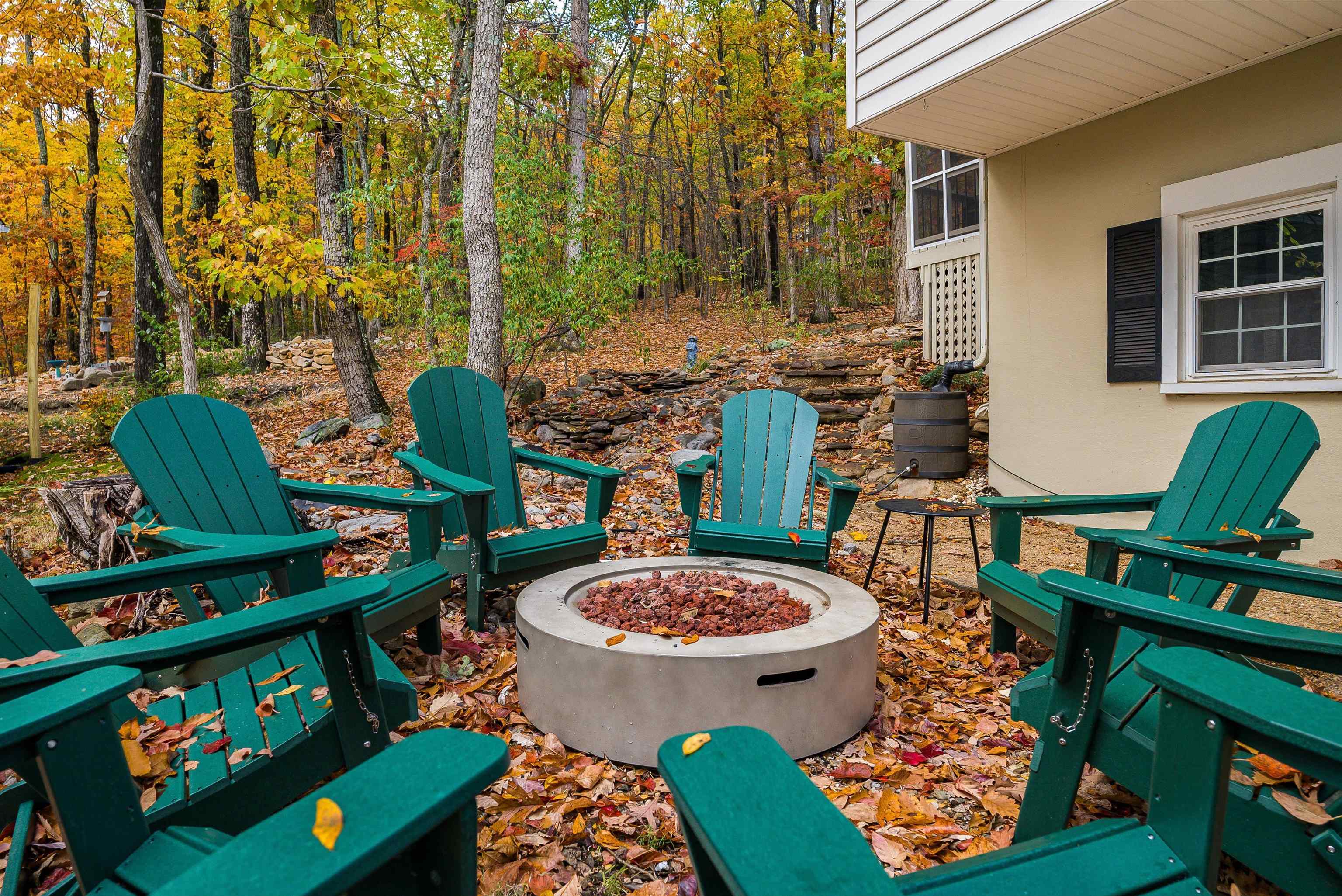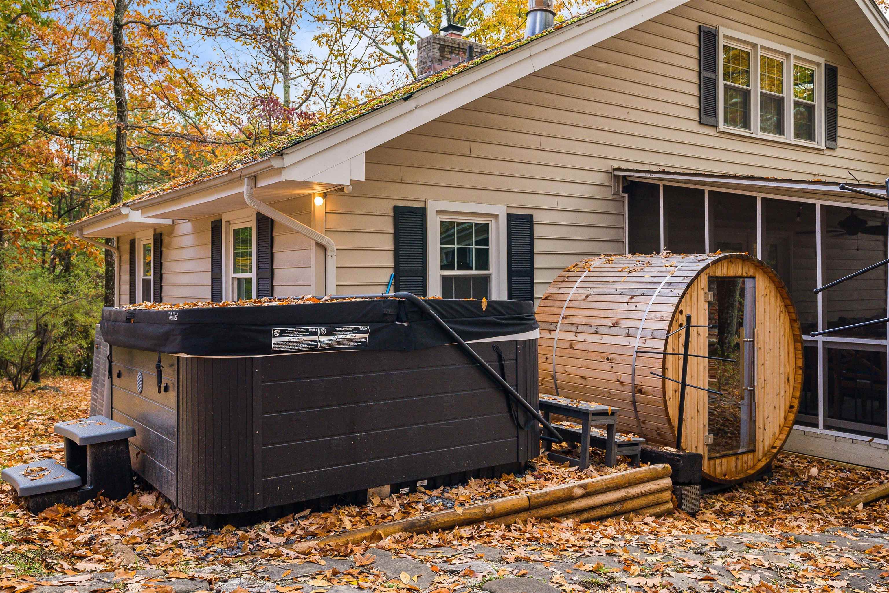 The Professionally designed Stunning Mountain Chalet that you have dreamed of! This renovated 4 bedroom 2 full 2 half bath is jam packed with all the amenities and features all owners and guests dream of! The backyard is a private oasis complete with 12x22 large screened porch, Sauna and Hot Tub! Unwind in Style and relax around the propane fire pit with tasty Smores! The masterful landscaping and curb appeal further enhance the charm of this 4 Season resort home. Inside, the chalet boasts three private bedrooms on the main floor, each with large vaulted wood ceilings and professional design, providing a cozy and inviting atmosphere. Additionally, there is a fourth bedroom area in the loft, complete with its own bathroom. The presence of a woodstove and fireplace adds warmth and ambiance to the living space. The house features two full bathrooms and two half bathrooms, ensuring convenience for guests/owners. A delightful wooded flat rear yard allows you to enjoy the surrounding nature and take advantage of the private elevated lot. Plenty of parking in the Flat driveway! Sold Fully furnished and loaded with throughout amenities for a true TURN KEY vacation residence at one of the East Coasts premiere vacation destinations!