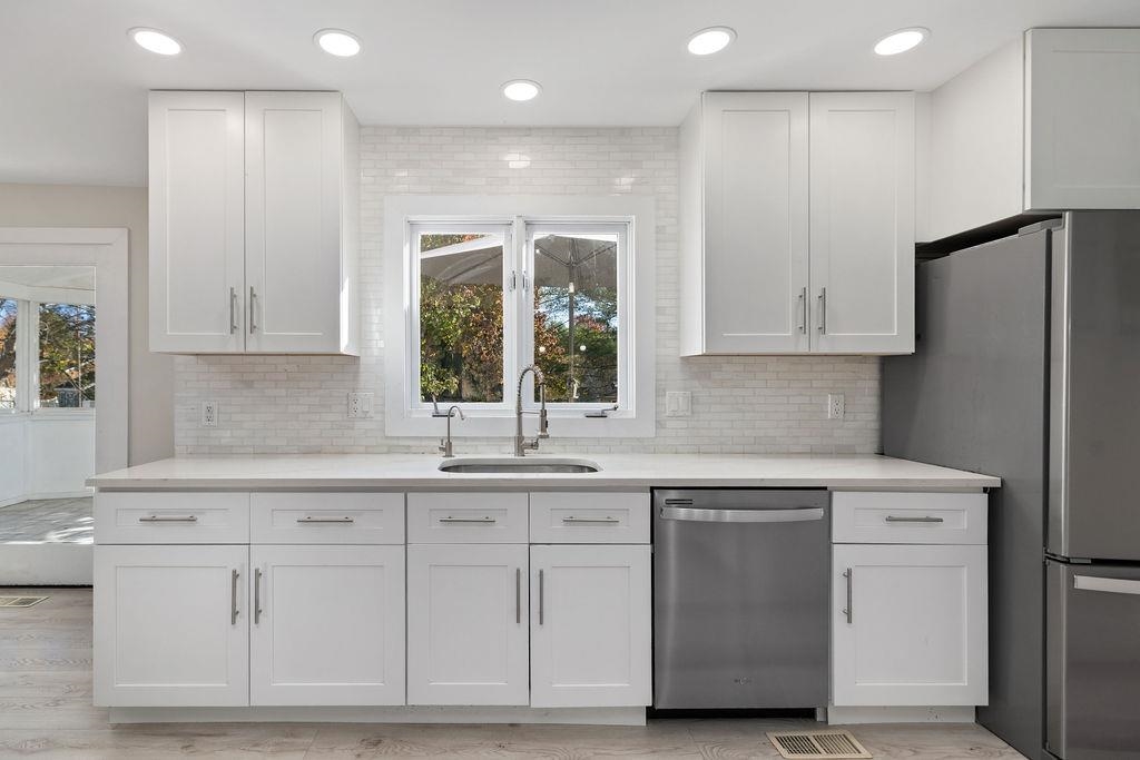 Beautifully updated 4-bedroom, 3.5-bath Colonial in the highly sought-after Lakewood Estates! This spacious home offers hardwood and ceramic tile floors, a large eat-in kitchen with quartz countertops, and a cozy family room with a wood-burning fireplace and built-in bookcases all on the 1st floor. Step outside to enjoy multiple outdoor living spaces, including 2 open decks and a covered deck/solarium, all overlooking the level, Newly fenced(2025) backyard, with mature trees, garden space, a rainwater collection system, and a custom play rig. Upstairs boasts a spacious primary suite featuring a luxurious attached bath with a giant spa tub, a separate standing shower and heated tile floors for comfort. 2 additional bedrooms and a full hallway bath round out the 2nd floor. The finished walkout basement includes a rec room with bar area and fireplace, fourth bedroom, full bath, and office area with easy outdoor access. Enjoy a two-car main-level garage plus an additional lower-level garage/workshop. Recent upgrades include:new HVAC system, A full security system w/ touchless lock entry, & all new toilets(2025). This move-in-ready home combines comfort, functionality, and modern updates in a peaceful neighborhood setting.
