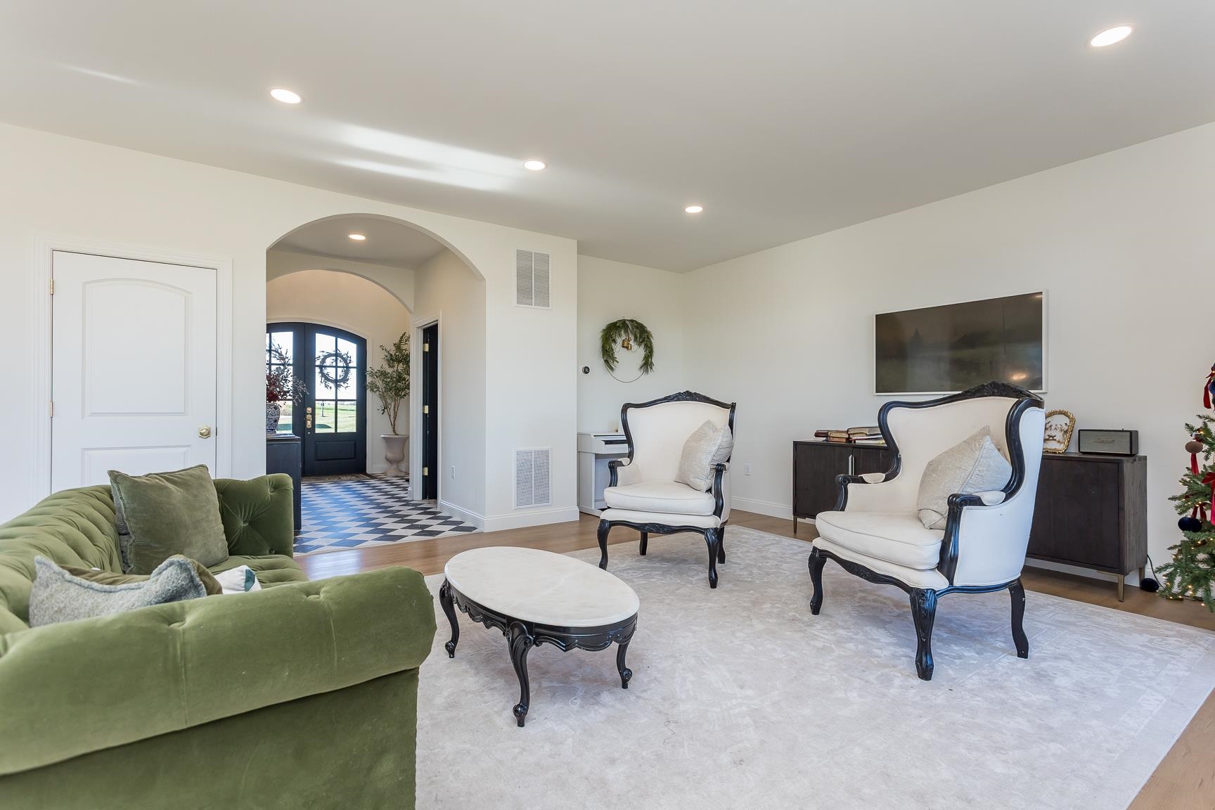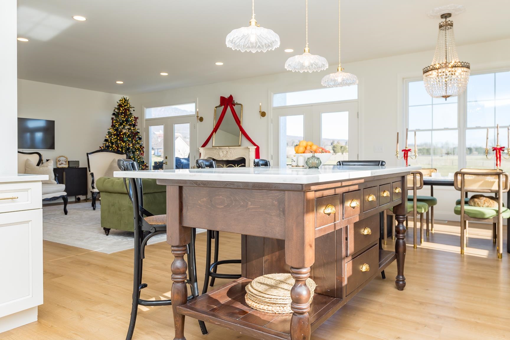 Experience modern elegance in this stunning 5BR/3.5BA brick home, built in 2023 and set on a picturesque 1.49-acre lot with breathtaking Massanutten views. High ceilings, refined details, and abundant natural light define the interior, highlighted by a beautiful fireplace and a seamless flow between living spaces. The stunning foyer welcomes guests with sophistication, warmth and style! The gourmet kitchen opens to a spacious deck—perfect for relaxing or entertaining against the mountain backdrop. The home features a 4-car garage with display-room doors, hard-wired landscape lighting, and exceptional craftsmanship throughout. Five generous bedrooms, including a serene primary suite on the main level, offer comfort and style, while the walk-out lower-level provides flexible space for recreation or additional living needs. A rare blend of luxury, quality, and views—this property truly has it all.