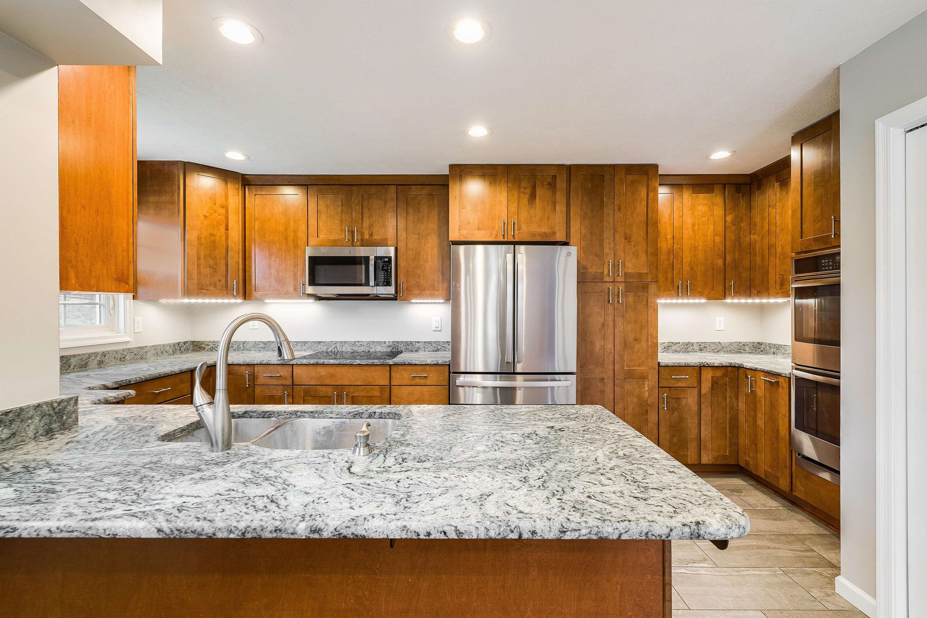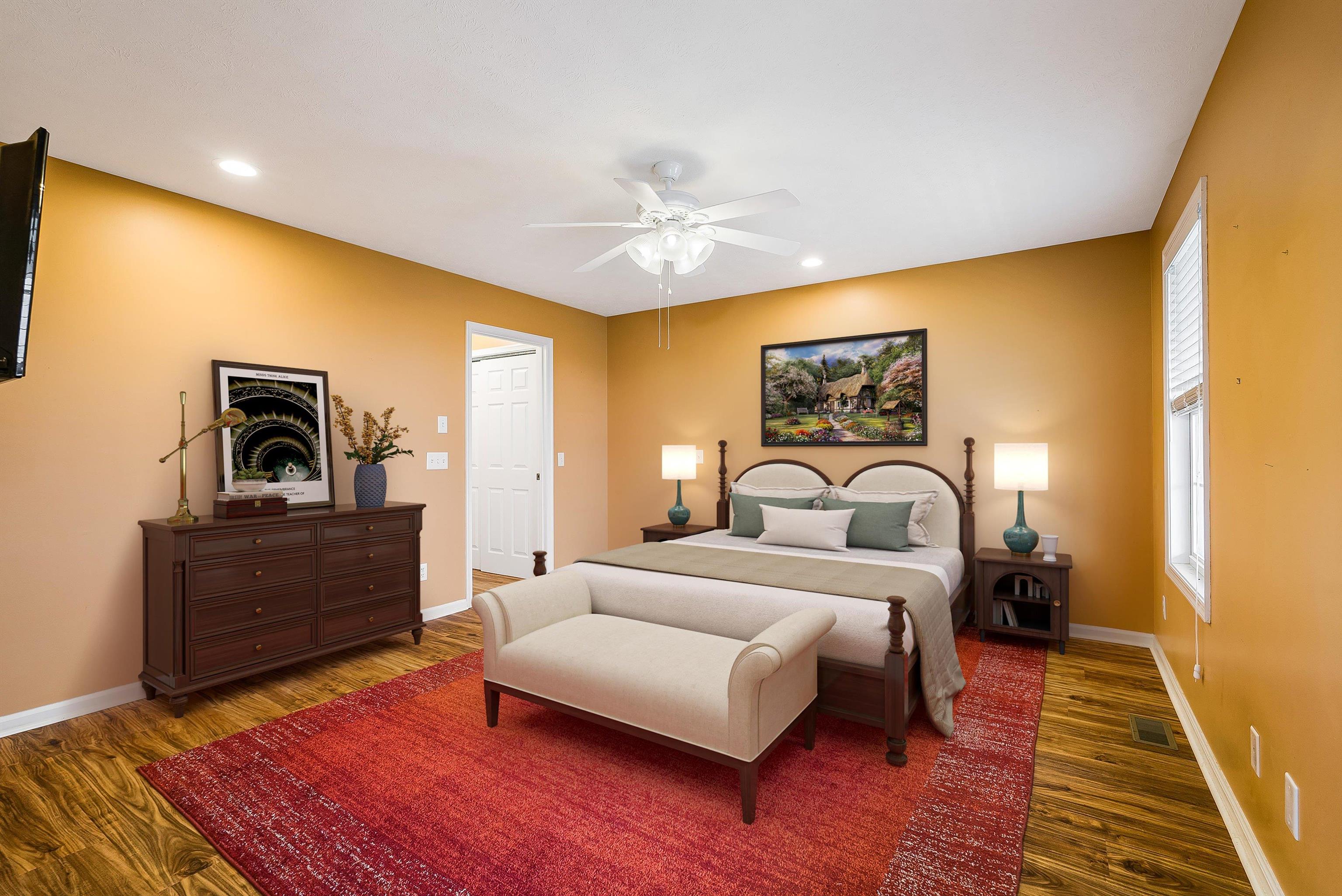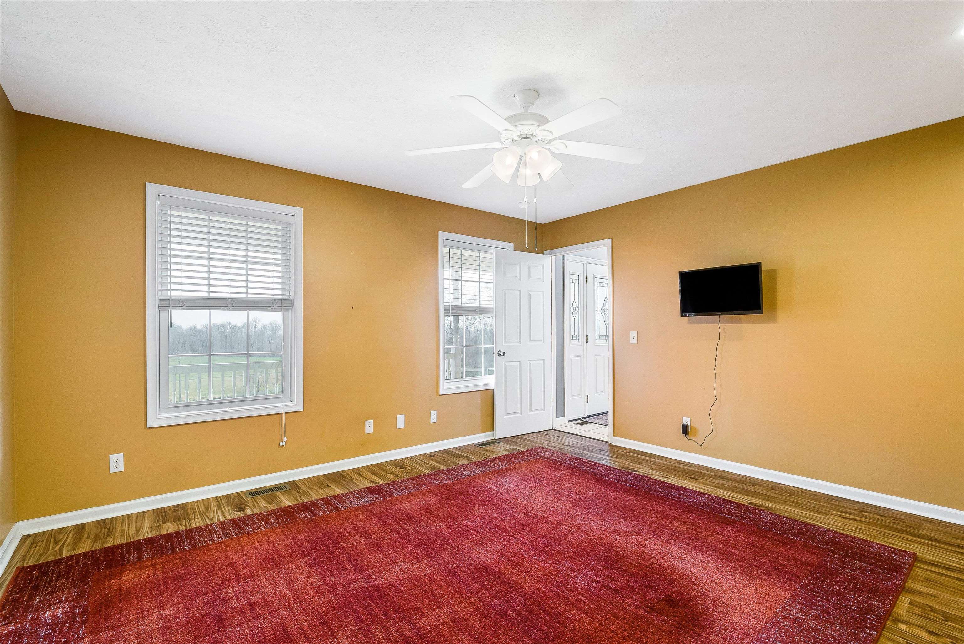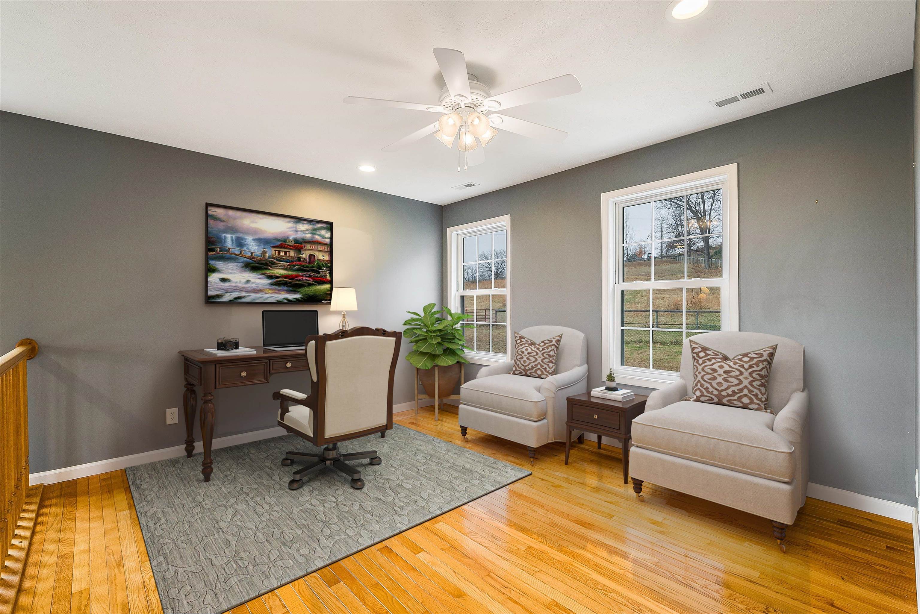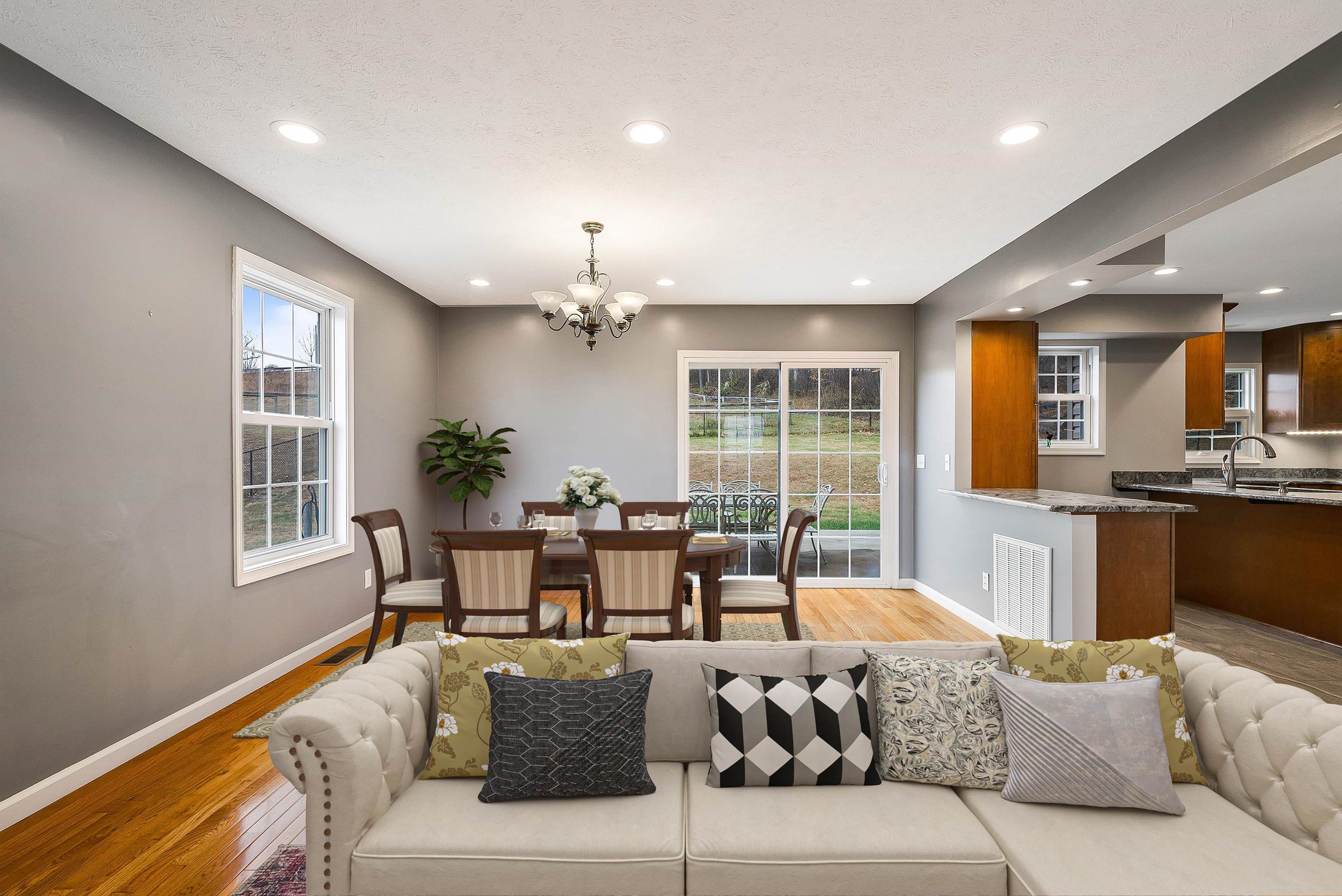 Welcome to this beautifully improved farmette offering comfort, charm, and functionality. This Cape Cod 3-bed, 3.5-bath home features a covered front porch with mountain views, a living room with hardwood floors, gas fireplace, and vaulted ceilings, plus a dining area that opens to the back patio. The kitchen, renovated in 2019, includes stainless steel appliances, double wall oven, induction cooktop, soft-close cabinetry, and leathered granite countertops, with a laundry closet and half bath nearby. The main-level suite adds a double vanity, jetted tub, and shower/tub combo. Upstairs offers an open loft with hardwood floors, two bedrooms, and a full bath. The lower level provides a spacious rec room and full bath. A two-car garage adds convenience. Equestrian features include a large 2015 barn with 4 stalls, wash stall, tack room with electric baseboard heat, and hay loft; 4 fenced paddocks (2015), 2 run-ins, a garden shed, and extra outbuilding. New porch decking completed 2025. A turnkey farmette, equestrian setup, or serene country retreat.