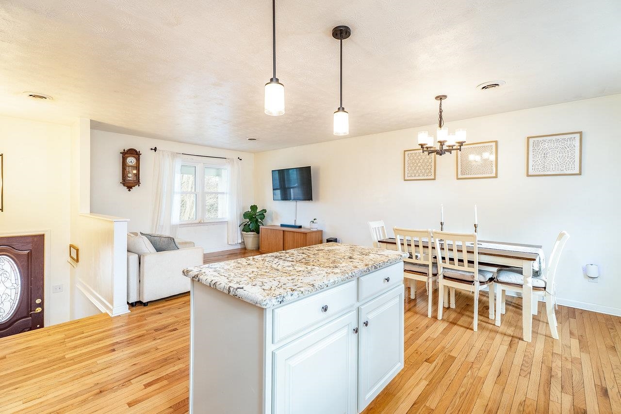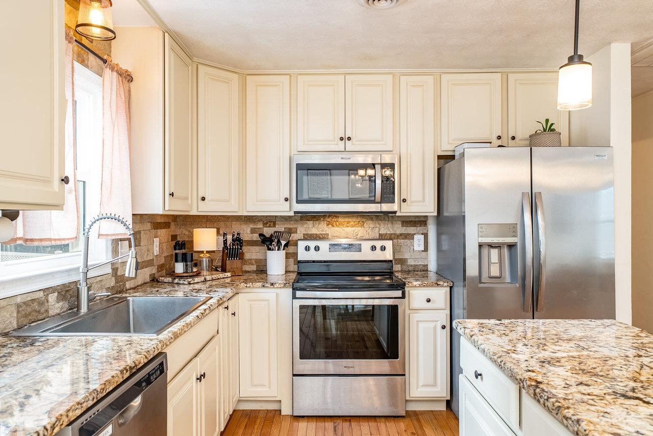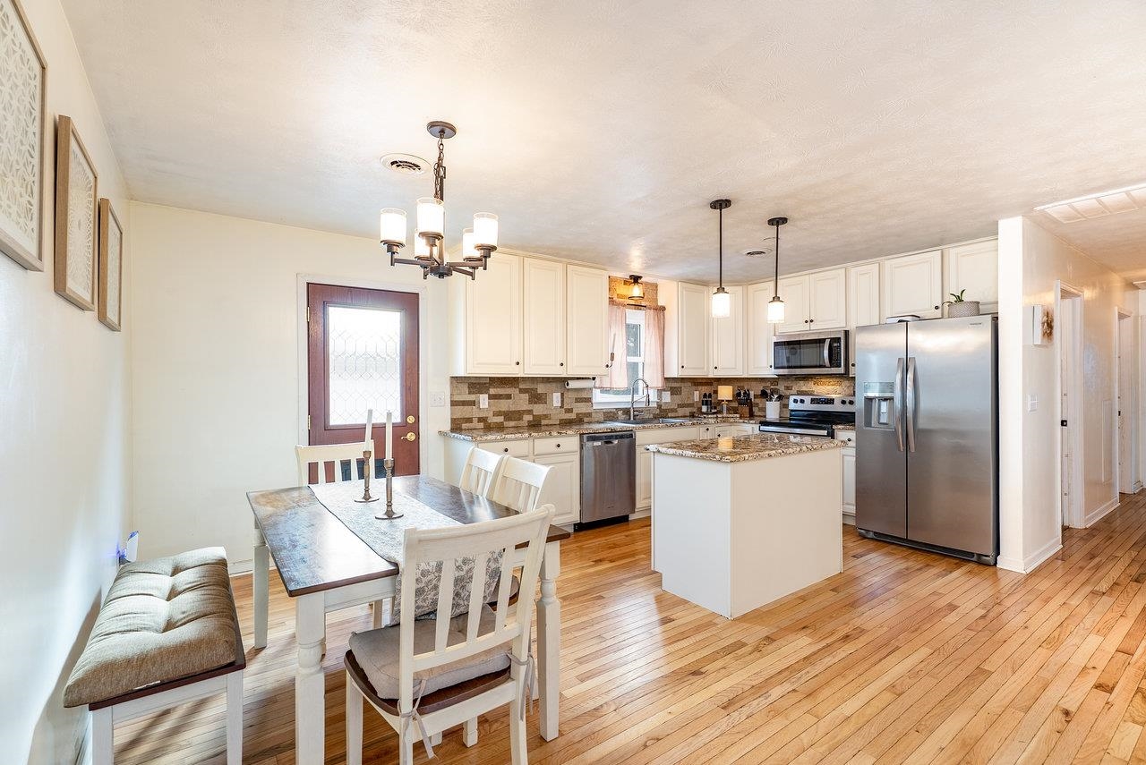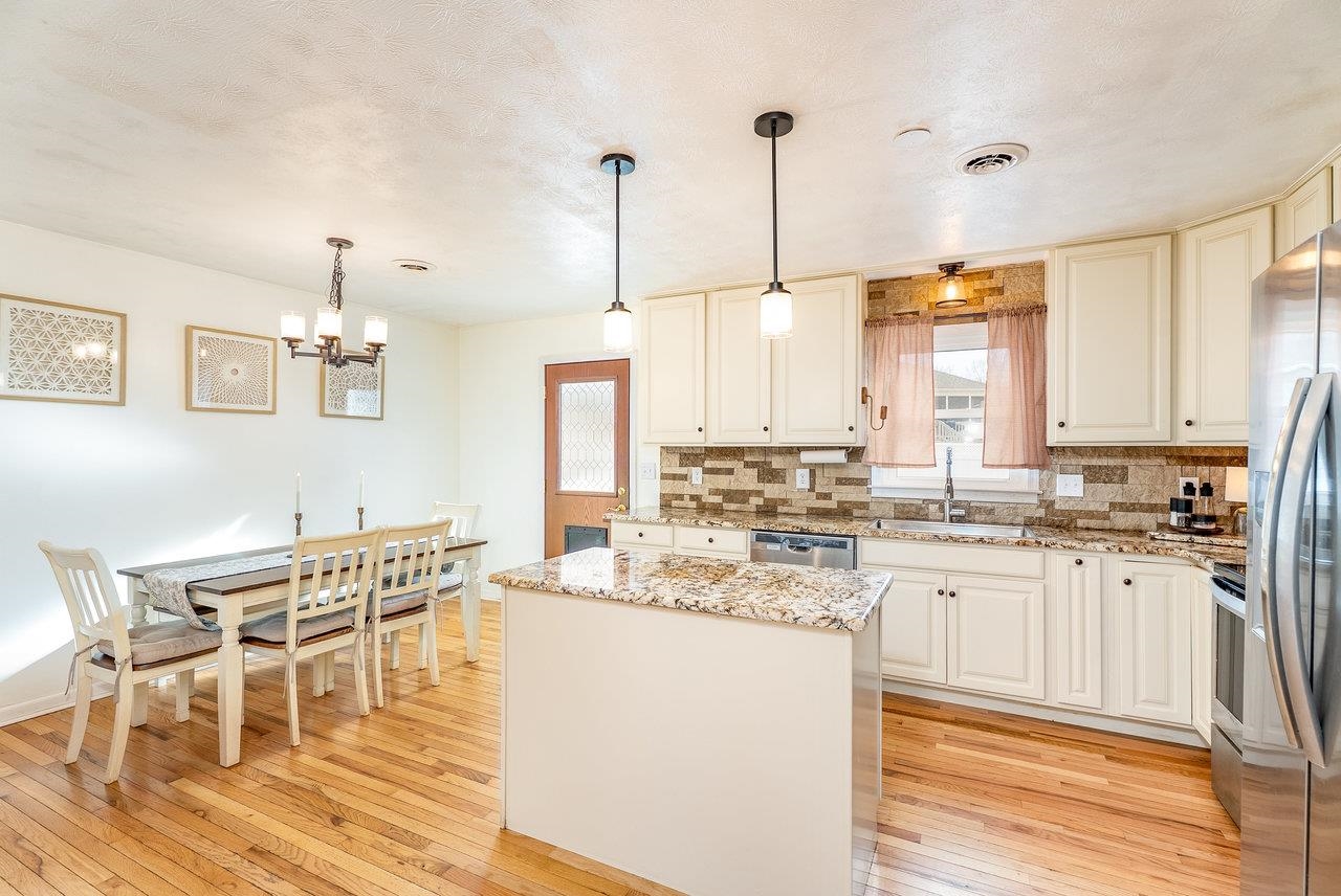 Beautifully renovated circa-1983 home in Elkwood Subdivision on a corner lot of 0.30 acres offering 4 bedrooms and 3 full baths, thoughtfully updated throughout for modern comfort and style. This move-in-ready property features updated kitchen cabinetry with granite countertops, a new HVAC system, new light fixtures and hardwood flooring on the main level. All bathrooms have been fully refreshed with new toilets, new vanities, and porcelain tile showers, creating a clean, contemporary feel. The basement includes a wood burning stove offering supplemental heating and enhances the homes efficiency. Additional upgrades include new interior doors, new double pane windows, new exterior doors, and a durable, long lasting standing seam metal roof with snow guards, and new gutters with gutter guards. New composite decking and storage shed and backyard is fully fenced with vinyl fencing. Please see full list of updates in the documents tab. With extensive renovations already completed, this home combines classic construction with today’s desirable finishes perfect for buyers seeking quality, comfort, and peace of mind.