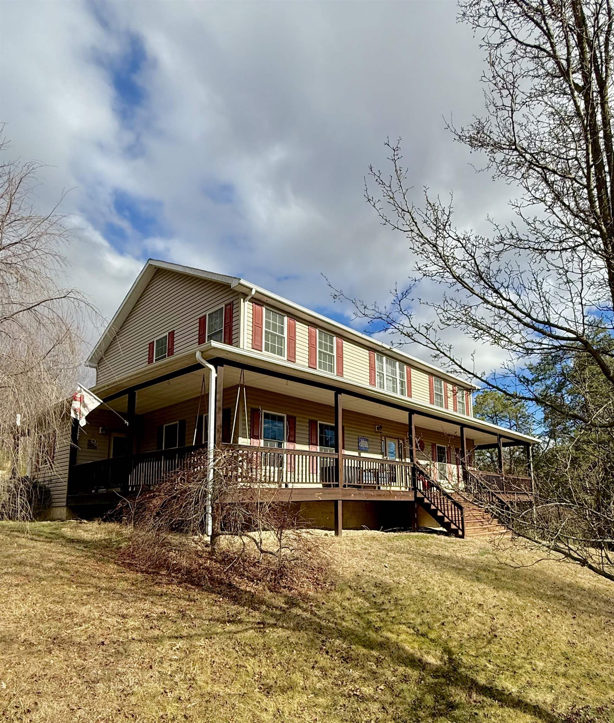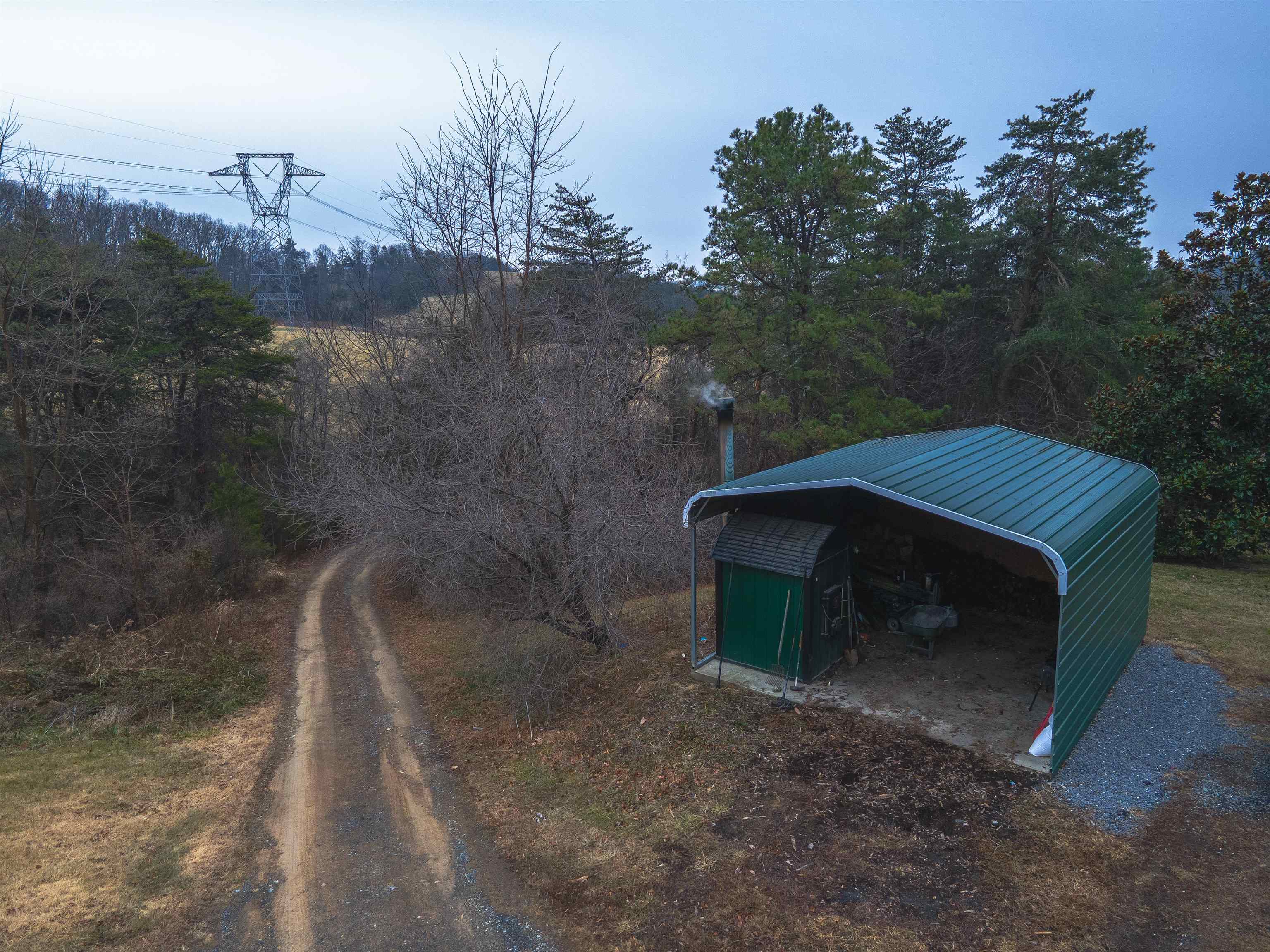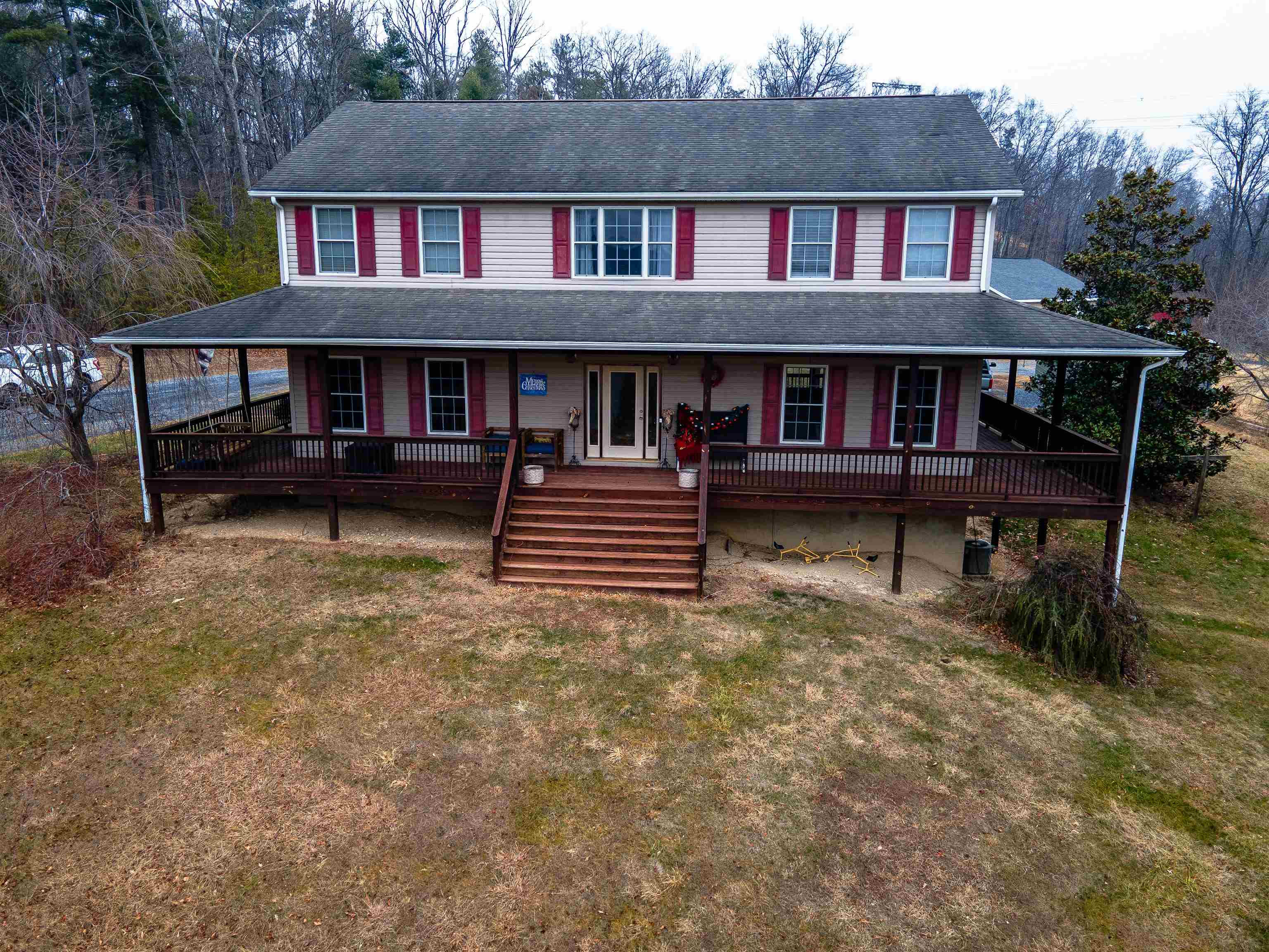 Come home to this picturesque farmhouse style retreat conveniently located on 11 acres. The home is elevated to take advantage of the views of the Blue Ridge that overlooks the acreage and stocked pond. This property is conveniently located, and offers a peaceful country setting with open areas, some woods, & garden space. As you arrive at the property, you notice the welcoming wrap around porch and just want to sit and stay a while taking in the views. Inside, the home, you walk into generously sized rooms filled with natural light, original wood floors, and a warm and inviting floor plan. The detached two to four car garage/workshop offers flexibility for your personal hobbies. The workshop has roughed in plumbing for a full bathroom and a walk up floored attic. This property is special and offers flexible opportunities to finish the basement, hobby farm, garden, fish, star gaze or simply just relax. Back building is being used as chicken coop.