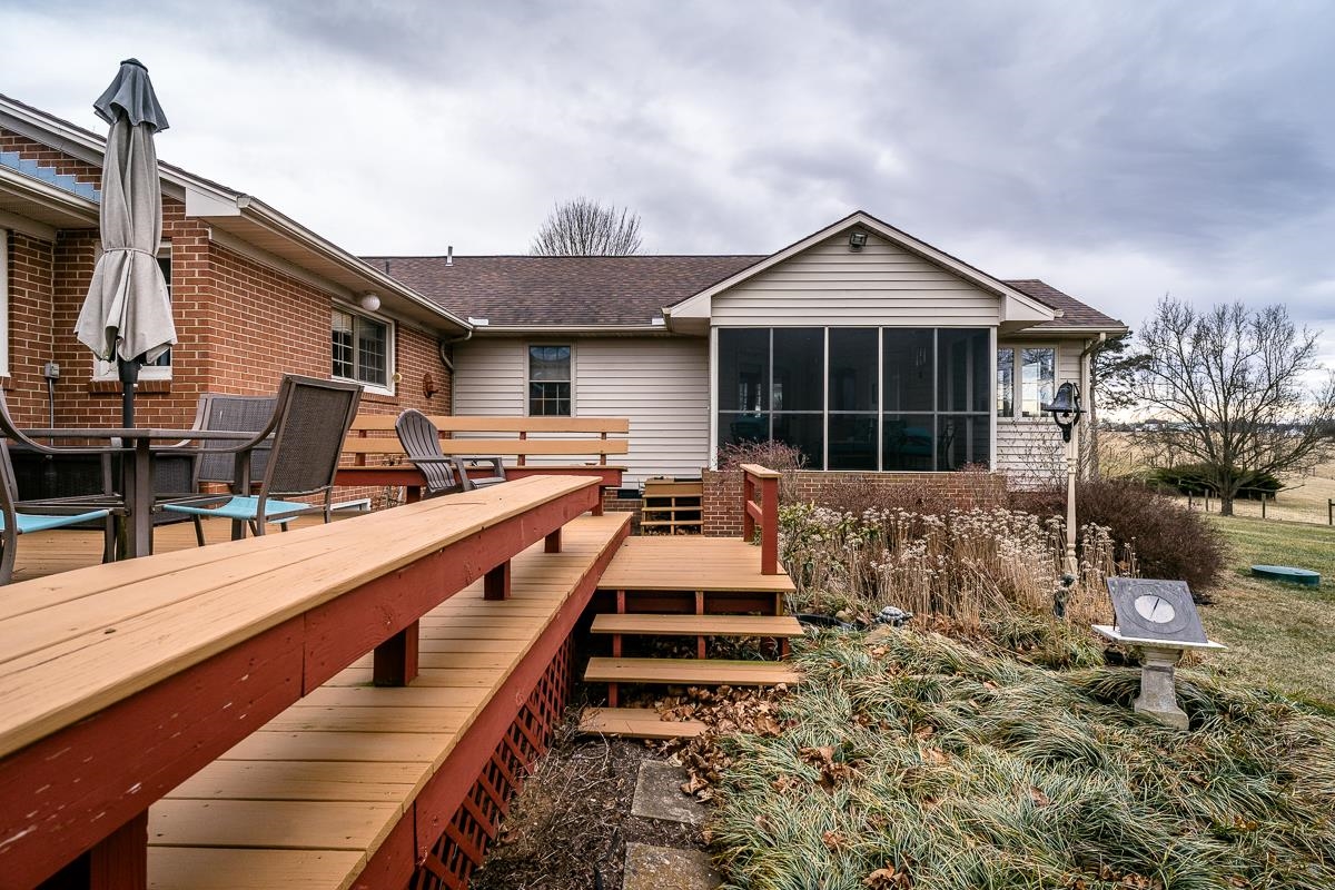 Sunrise, sunset! Wake each day to beautiful valley views including seasonal view of Massanutten peak afforded by this well maintained move in ready spacious home situated on 1+ acre lot on the outer edge of Bridgewater. This home features a recently updated, eat-in kitchen which boasts several new appliances including stove with additional convection, air fry and blue tooth control options. Outstanding features of this home also include an expansive master bedroom with adjoining modern bath, walk in closet, walk out screen porch and sunroom with full size picture window affording a beautiful pastoral view each day. Sunguard, roller shades are mounted on each window in this lovely living space. Original hardwood floors exist throughout upper level including dining room, living room, and underlie hallway carpeting leading to two additional carpeted upper level bedrooms and full bath. This house continues to surprise with a large lower level including a kitchenette, non-conforming bedroom or office, large rec/tv room, game room, full bath and shop with outdoor access. *Comments continued in agent remarks.