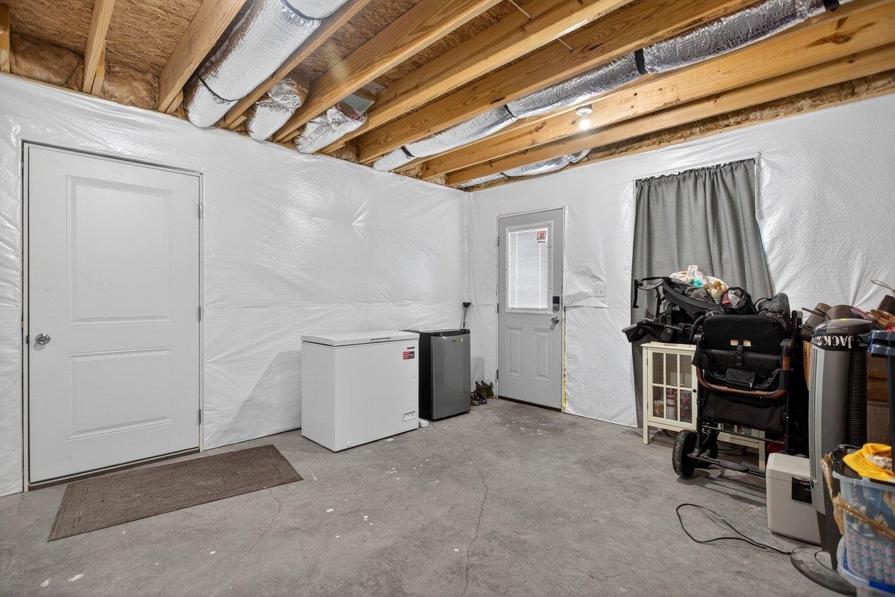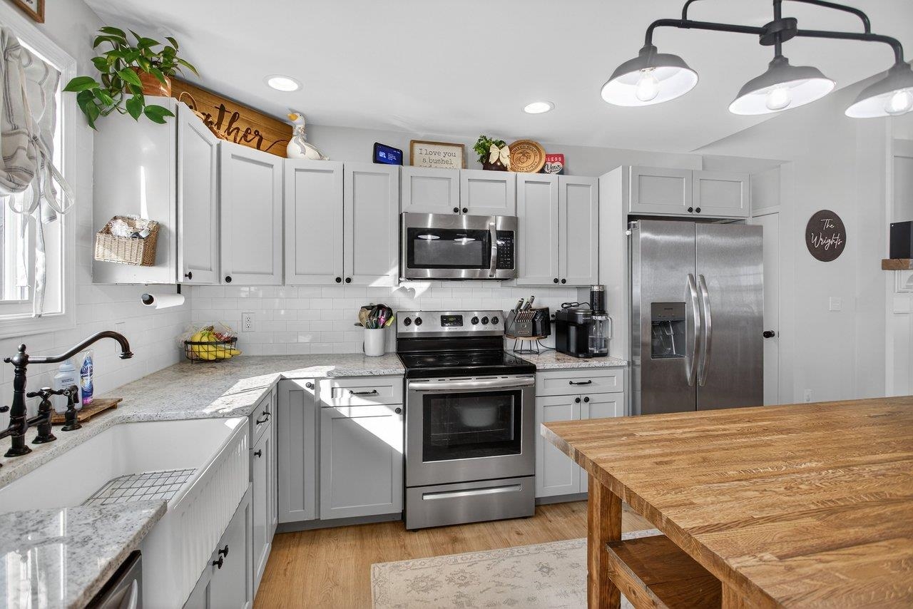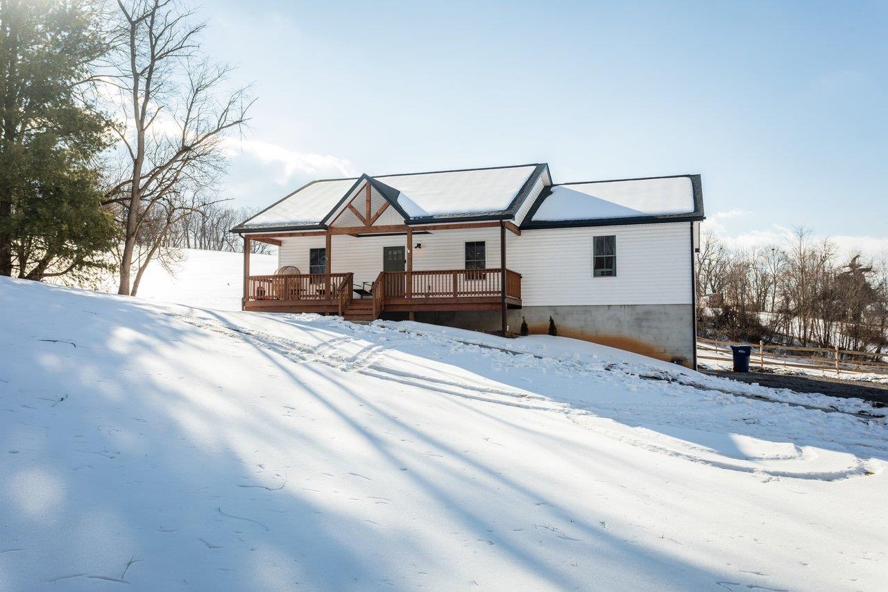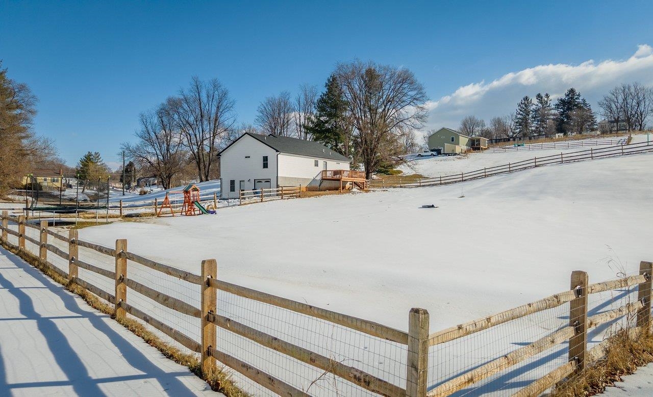 WELCOME HOME! This beautifully maintained home offers desirable one-level living with a one-car garage and a partially finished basement, all set on 1.68 acres with plenty of room to play, relax, or entertain. The fenced backyard is a standout bonus, perfect for pets, gatherings, or outdoor enjoyment. Inside, you’ll find a spacious great room with a vaulted ceiling and a stunning electric fireplace insert, creating a cozy yet open atmosphere. LVP flooring throughout and stainless-steel appliances add modern style and durability. The large primary suite features a walk-in closet, dual vanity, and step-in shower for everyday comfort. Enjoy outdoor living from the inviting front porch or the back deck, ideal for grilling, entertaining, or simply unwinding. The partially finished basement expands your living space with a bathroom, two flex rooms with closets, and an additional sitting or game room. An unfinished area at the basement entrance offers excellent potential for a future mudroom. This home blends comfort, space, and flexibility inside and out.