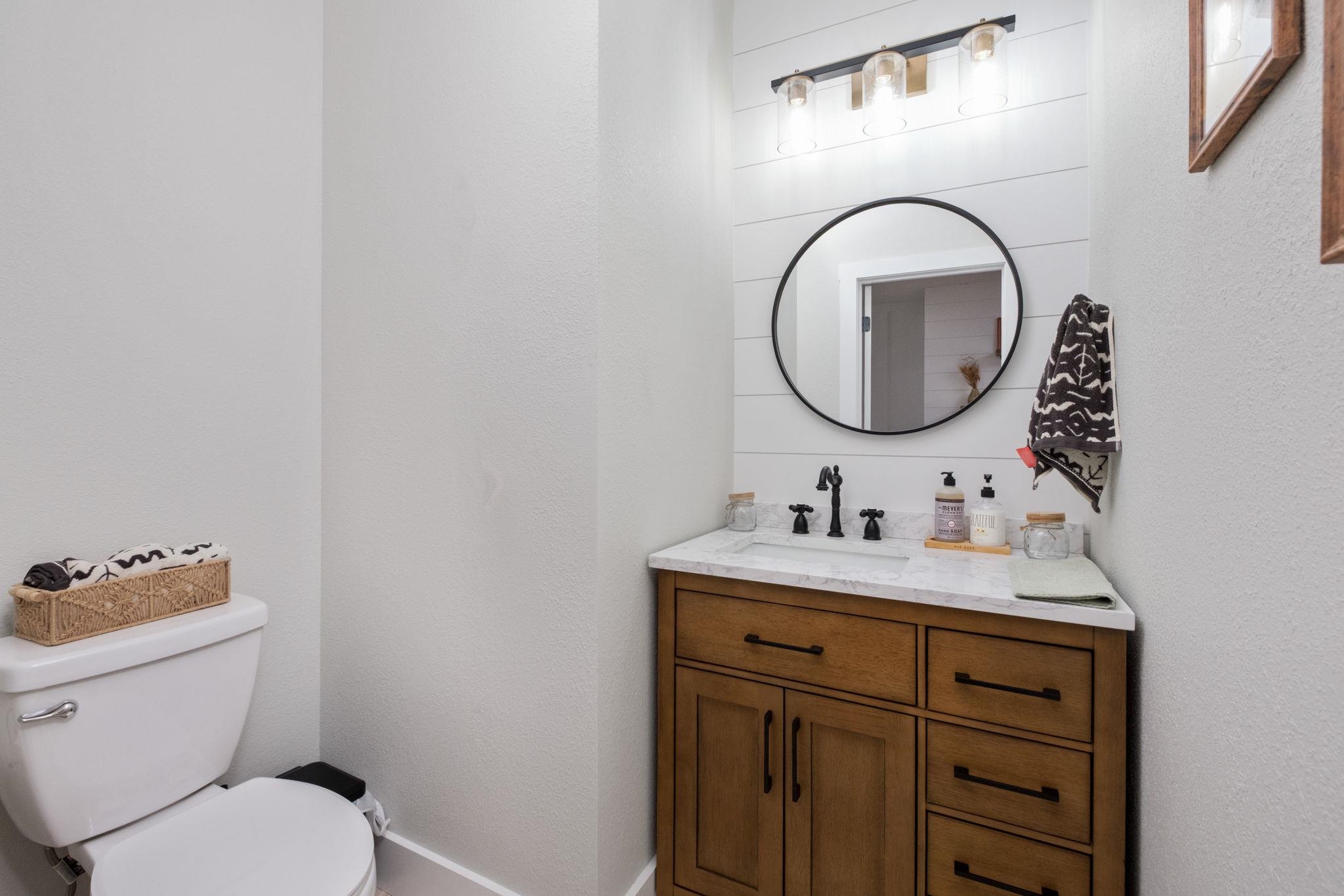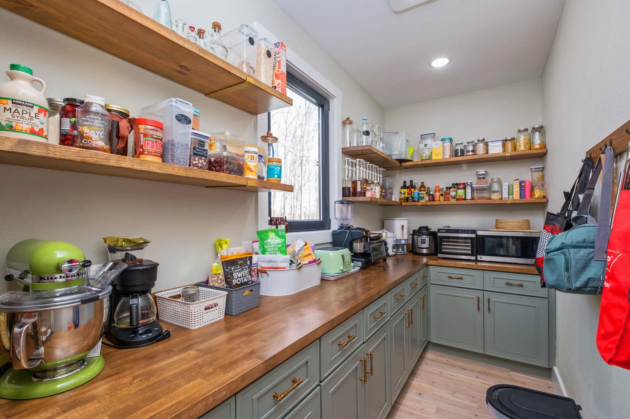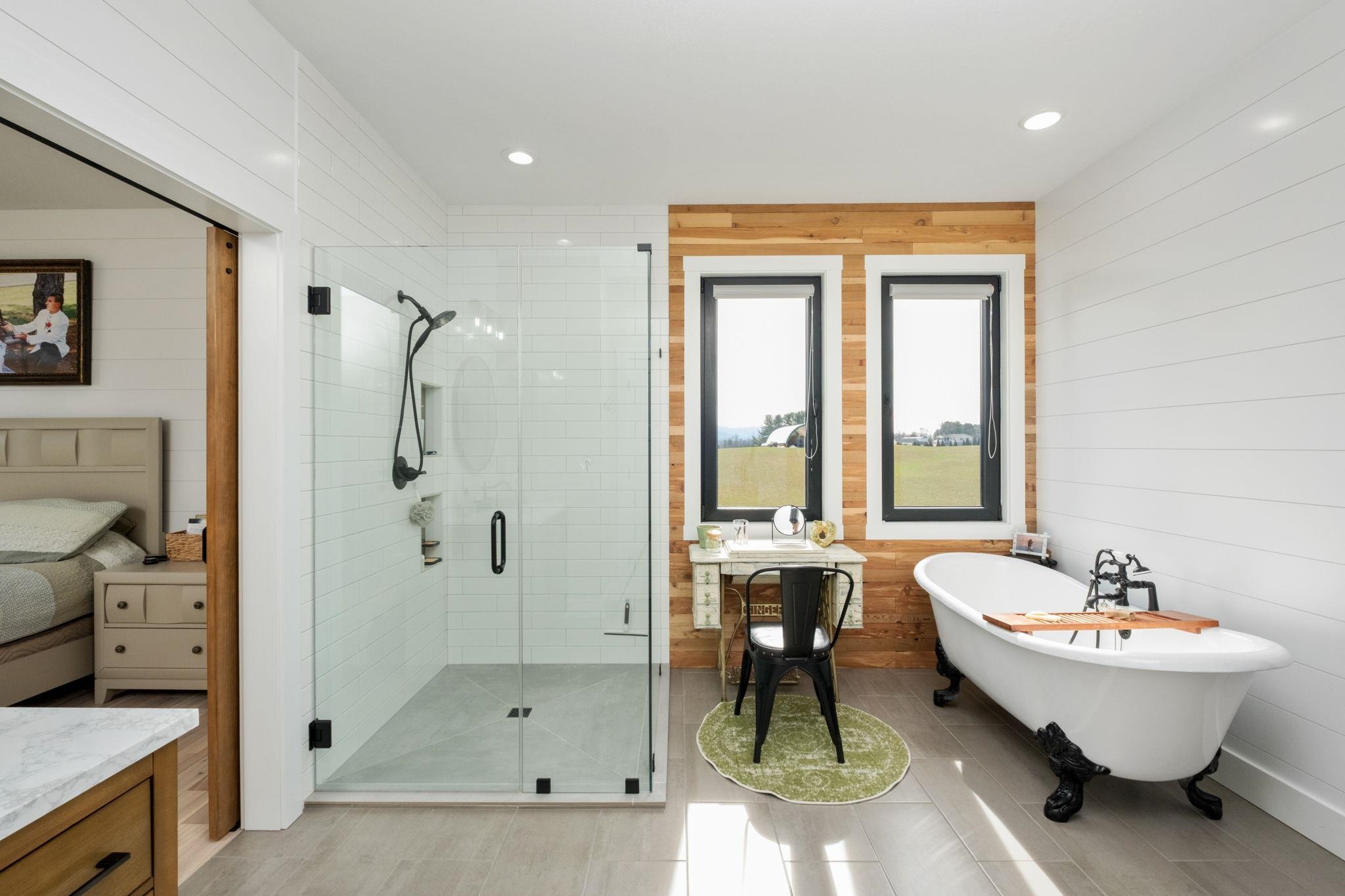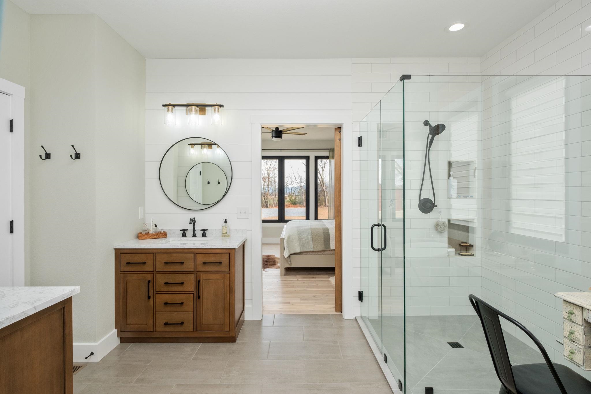 Exceptional craftsmanship and intentional design define this stunning one-level residence set on 5 private acres framed by sweeping mountain views. Offering 3 bedrooms, 2.5 baths, and a dedicated office, this thoughtfully curated home blends elegance, comfort, and functionality in a peaceful country setting just minutes from amenities. The light-filled open floor plan features hardwood floors, designer tile, and custom built-ins. A brick electric fireplace anchors the living room with warmth and character, complemented by shiplap accents. The kitchen showcases leather-finish granite countertops and a spacious walk-in pantry with shelving, countertop workspace, and cabinet-style hidden doors. Barn doors add charm to the laundry area and primary bathroom. Enjoy welcoming covered front porch overlooking the yard and paved driveway, or relax on the screened rear porch with mountain views and patio access. The 740 sq. ft. plumbed unfinished basement with exterior entry offers flexibility for storage, workshop, or future expansion. A rare opportunity to own refined, peaceful living with custom detail throughout.