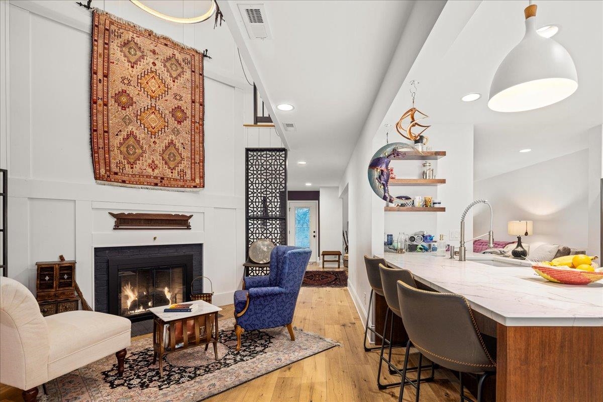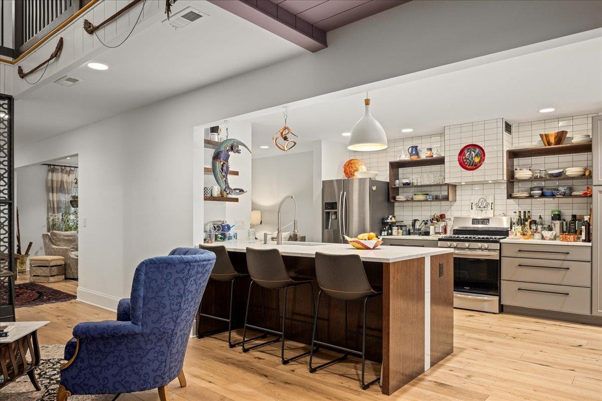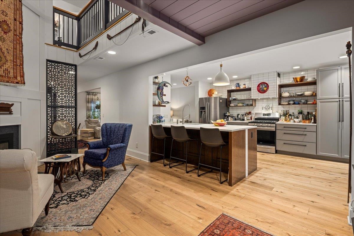 Private End Unit Townhome is an Emerald City Treasure in that it was fully updated in 2018 by Lineate Interiors, a design of Heather Overby. Many unique features in the remodel, such as skylights, barn doors, non-skid floors in the bathroom, the high-end open kitchen concept is surrounded by 3 other open living spaces, making the main floor a real entertainer. Upstairs has the balcony as another space for a private office or den, the 2-bedrooms, and a masterful bathroom with a walk-in shower, and the laundry utility as well. Did I mention the upgrade in appliances and utilities, the on-demand water-heater...and outside decking, unbelievable privacy where you can still walk to shopping, eateries, doctors, hair, nails, on & on? Waste no time, move-in ready, can make a deal with furnishings if you like. Call for an appointment. $375,000.