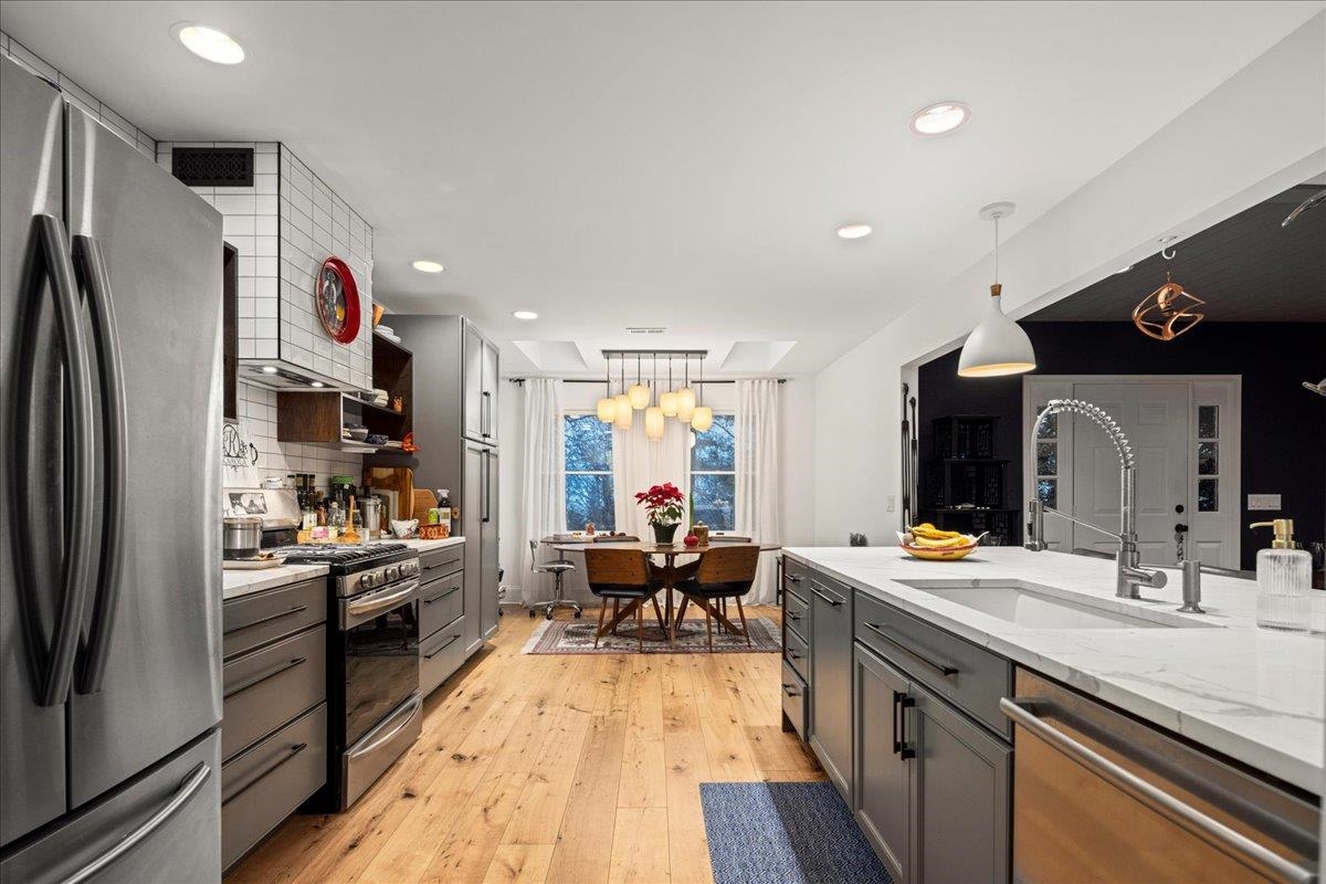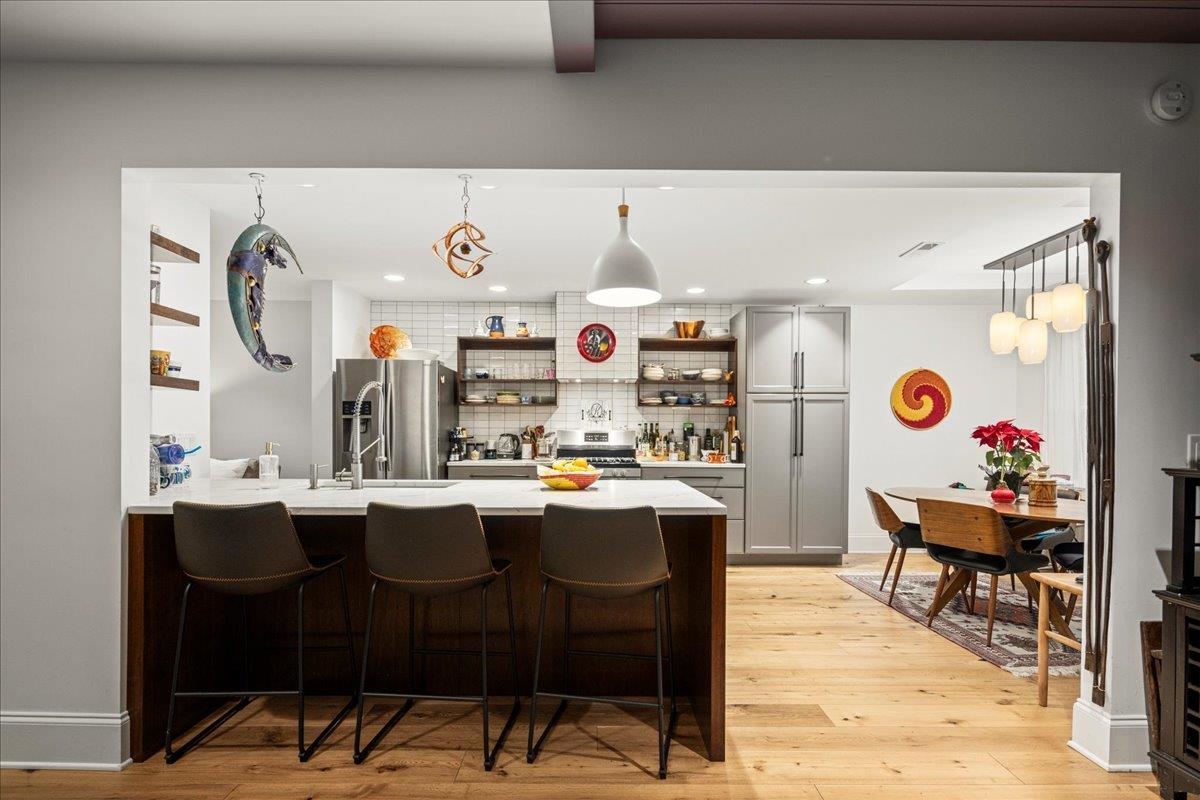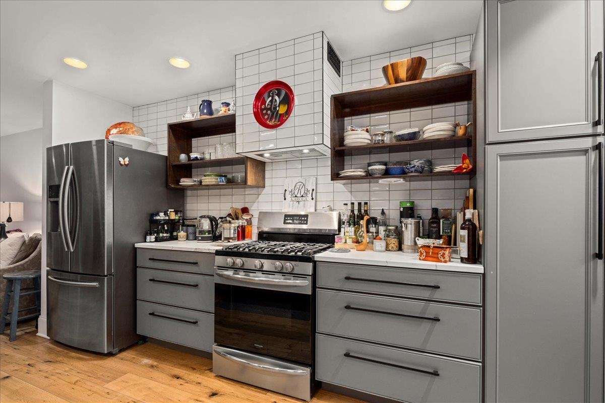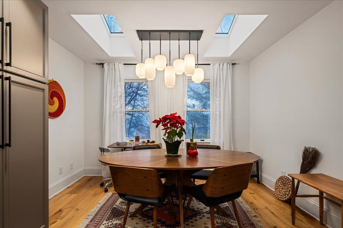 Private End Unit Townhome is an Emerald City Treasure in that it was fully updated in 2018 by Lineate Interiors, a design of Heather Overby. Many unique features in the remodel, such as skylights, barn doors, non-skid floors in the bathroom, the high-end open kitchen concept is surrounded by 3 other open living spaces, making the main floor a real entertainer. Upstairs has the balcony as another space for a private office or den, the 2-bedrooms, and a masterful bathroom with a walk-in shower, and the laundry utility as well. Did I mention the upgrade in appliances and utilities, the on-demand water-heater...and outside decking, unbelievable privacy where you can still walk to shopping, eateries, doctors, hair, nails, on & on? Waste no time, move-in ready, can make a deal with furnishings if you like. Call for an appointment. $375,000.