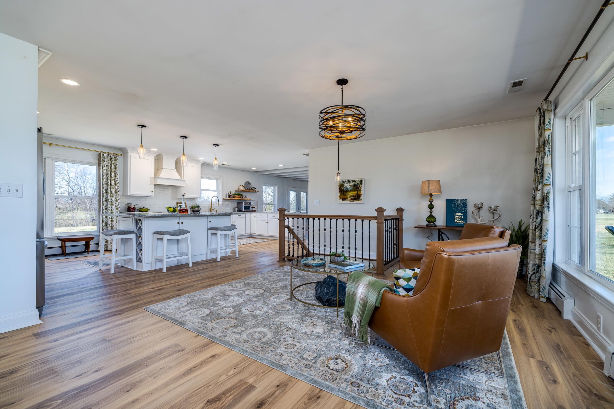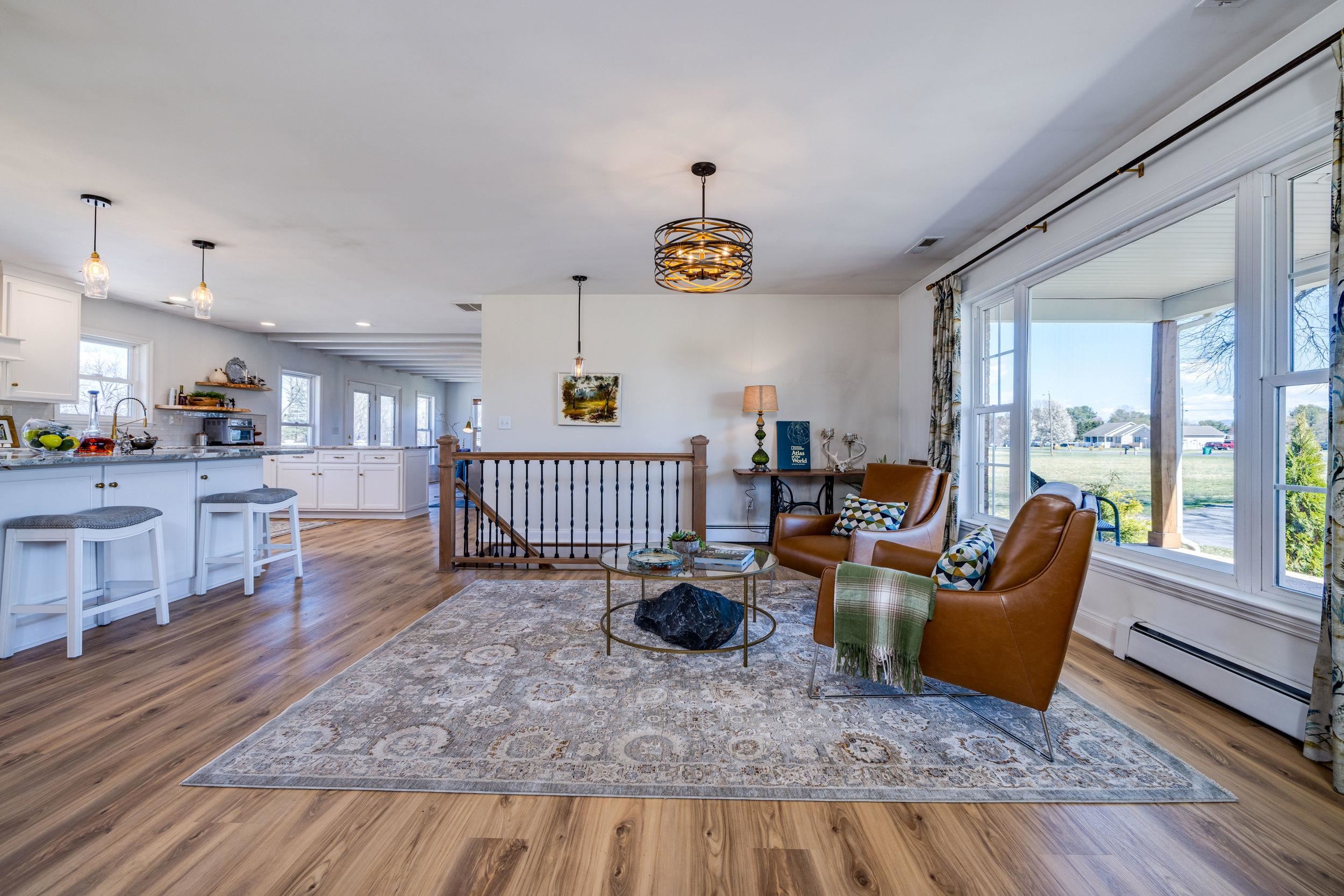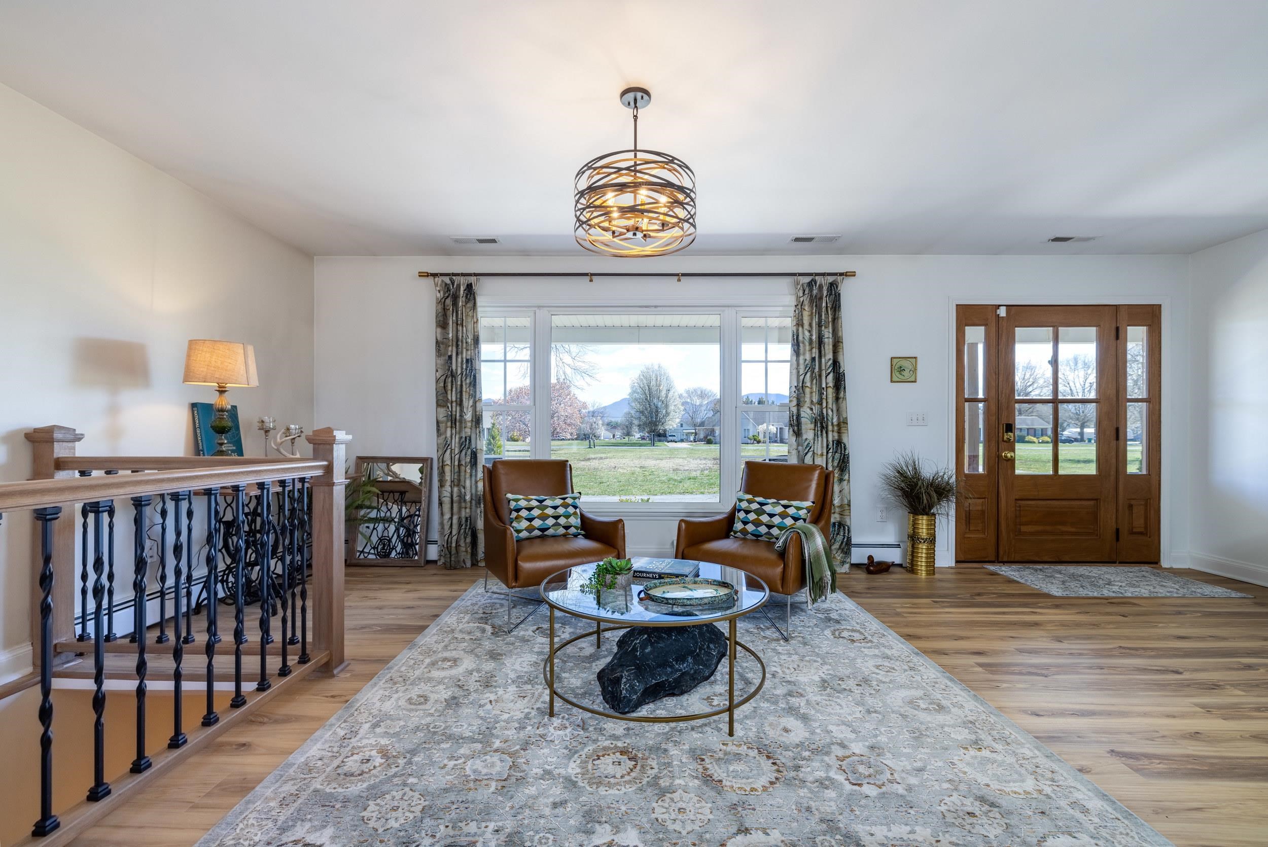 Active Airbnb - Riverfront living with mountain views—impeccably designed and decorated! This Grottoes retreat features gently sloped South River frontage and reflects the surrounding natural beauty. Fully renovated in 2024, you’ll find thoughtful touches like river rock tile, custom window treatments, stone fireplace, beamed ceilings, and a basalt boulder centerpiece excavated from the land. The open kitchen includes granite countertops, one large island and oversized bar, stainless appliances, built-in wine racks, and a cozy beverage bar. Upstairs offers two bedrooms (one with en-suite), an office, and spa-like bathrooms. The walk-out basement includes more sleeping quarters, another en-suite with full bath, and large flexible living spaces. Outdoors, explore your 1.5-acre lot! Enjoy Class A trout fishing steps from your door—stocked 8 times a year. Kayak from your backyard to John Painter Park or Port Republic. See Blue Ridge Mountain sunrises from the front, river and farmland sunsets from the back patio. No HOA. Not in floodplain. A rare fully approved turn key short term rental in the town of grottoes. Ideal for high-income buyers seeking a peaceful riverside retreat with potential bonus depreciation benefits (consult CPA)