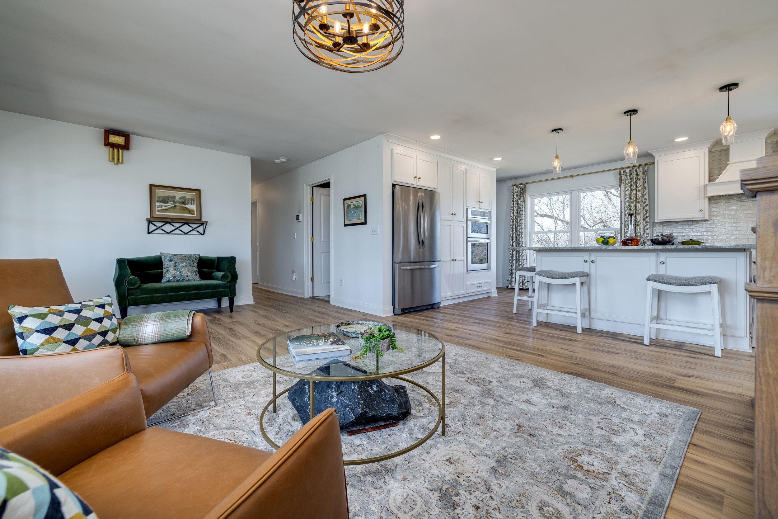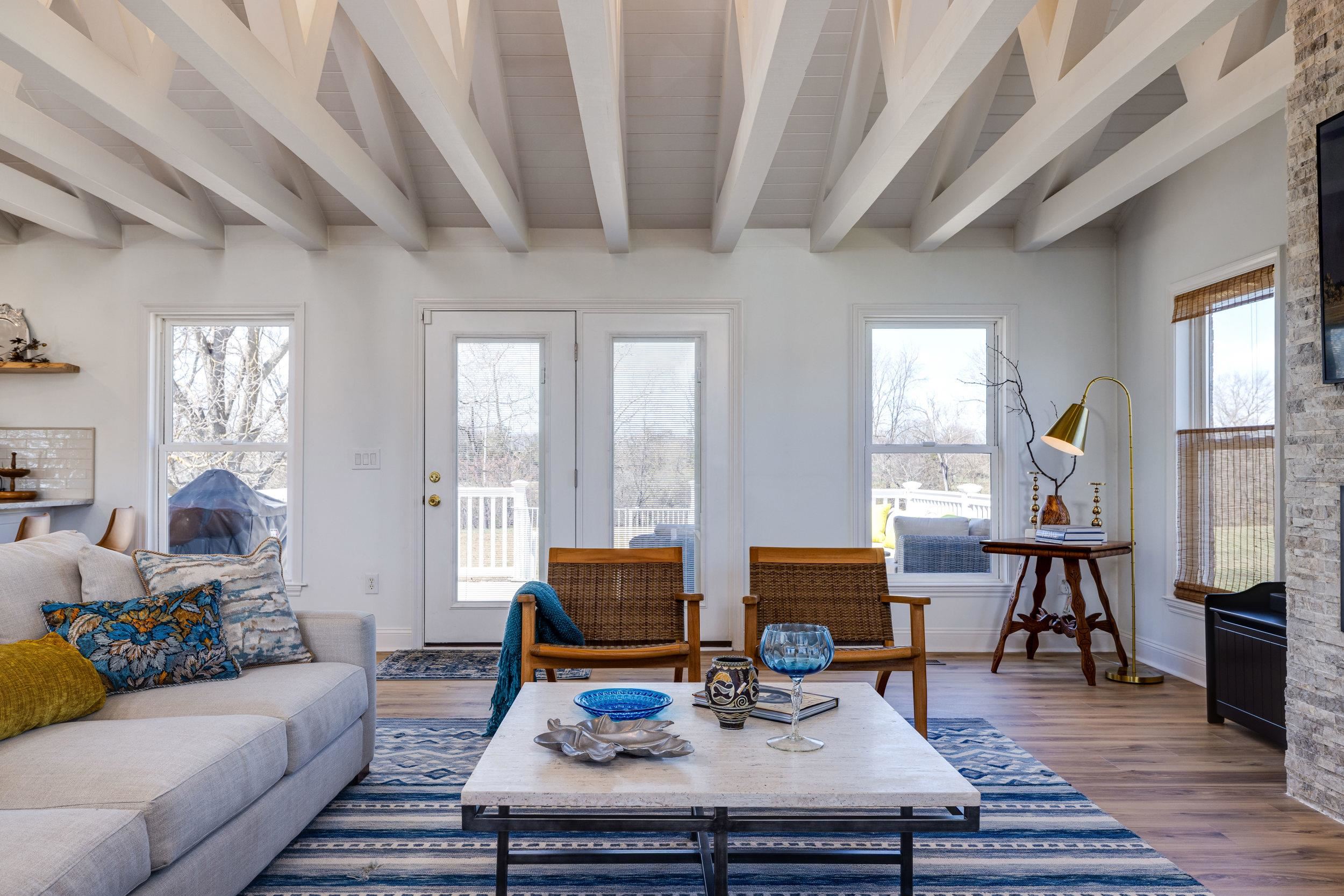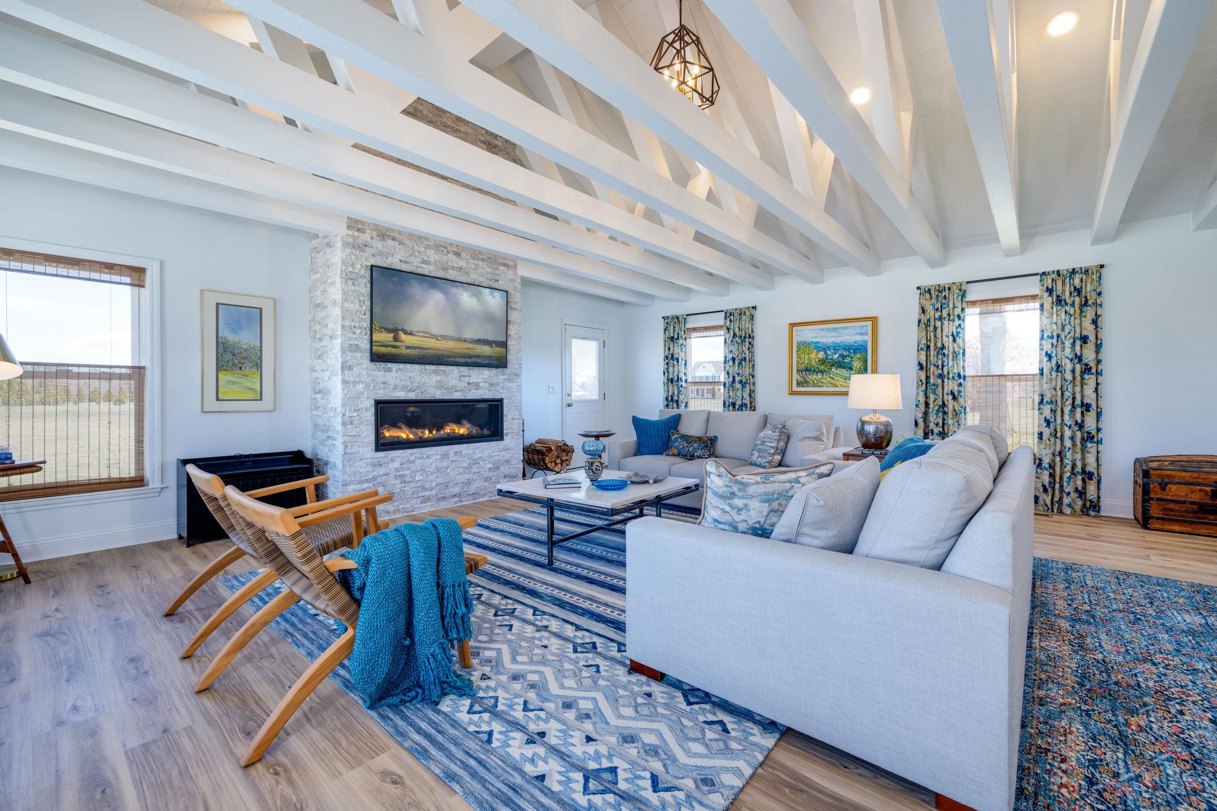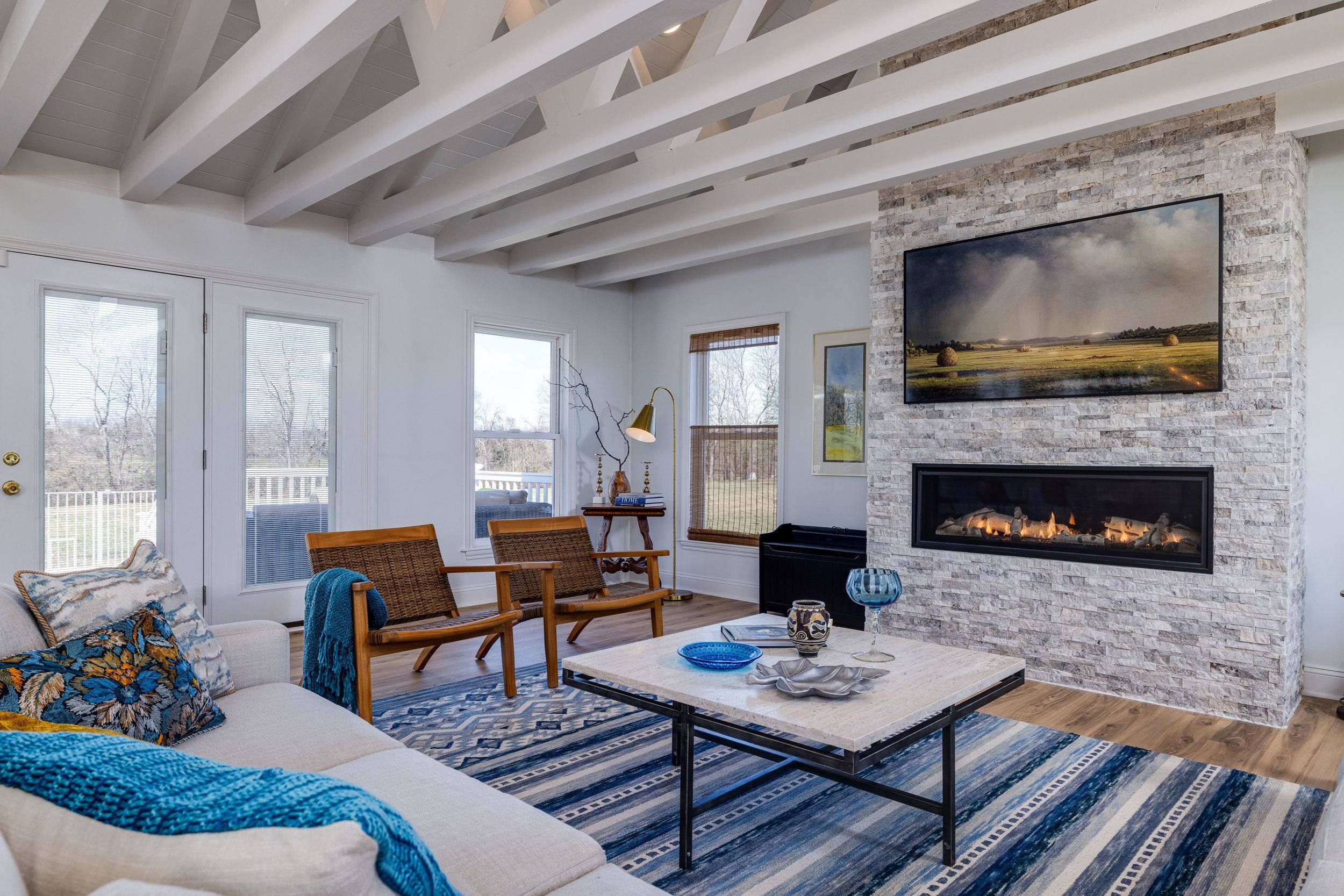 Active Airbnb - Riverfront living with mountain views—impeccably designed and decorated! This Grottoes retreat features gently sloped South River frontage and reflects the surrounding natural beauty. Fully renovated in 2024, you’ll find thoughtful touches like river rock tile, custom window treatments, stone fireplace, beamed ceilings, and a basalt boulder centerpiece excavated from the land. The open kitchen includes granite countertops, one large island and oversized bar, stainless appliances, built-in wine racks, and a cozy beverage bar. Upstairs offers two bedrooms (one with en-suite), an office, and spa-like bathrooms. The walk-out basement includes more sleeping quarters, another en-suite with full bath, and large flexible living spaces. Outdoors, explore your 1.5-acre lot! Enjoy Class A trout fishing steps from your door—stocked 8 times a year. Kayak from your backyard to John Painter Park or Port Republic. See Blue Ridge Mountain sunrises from the front, river and farmland sunsets from the back patio. No HOA. Not in floodplain. A rare fully approved turn key short term rental in the town of grottoes. Ideal for high-income buyers seeking a peaceful riverside retreat with potential bonus depreciation benefits (consult CPA)