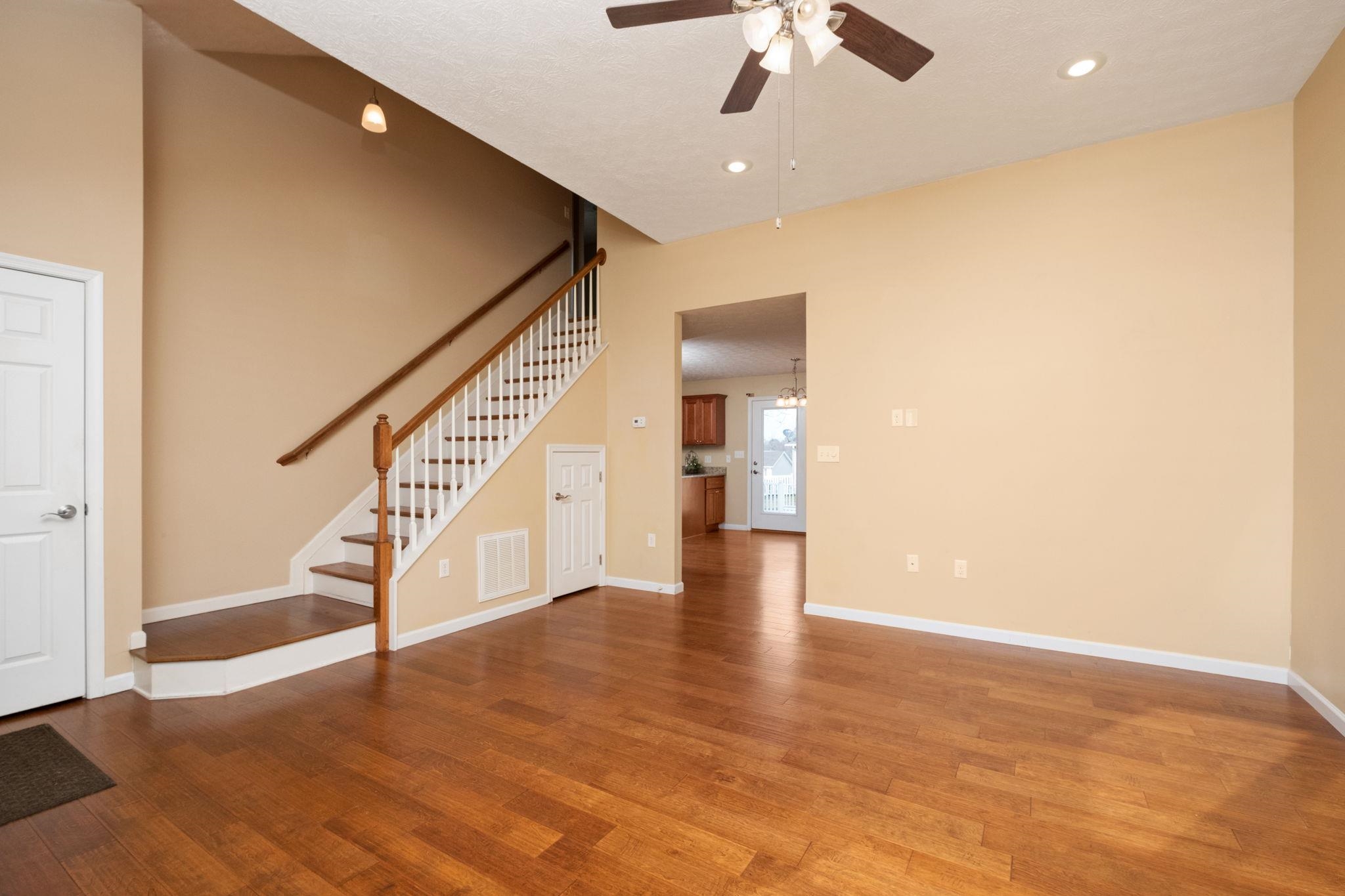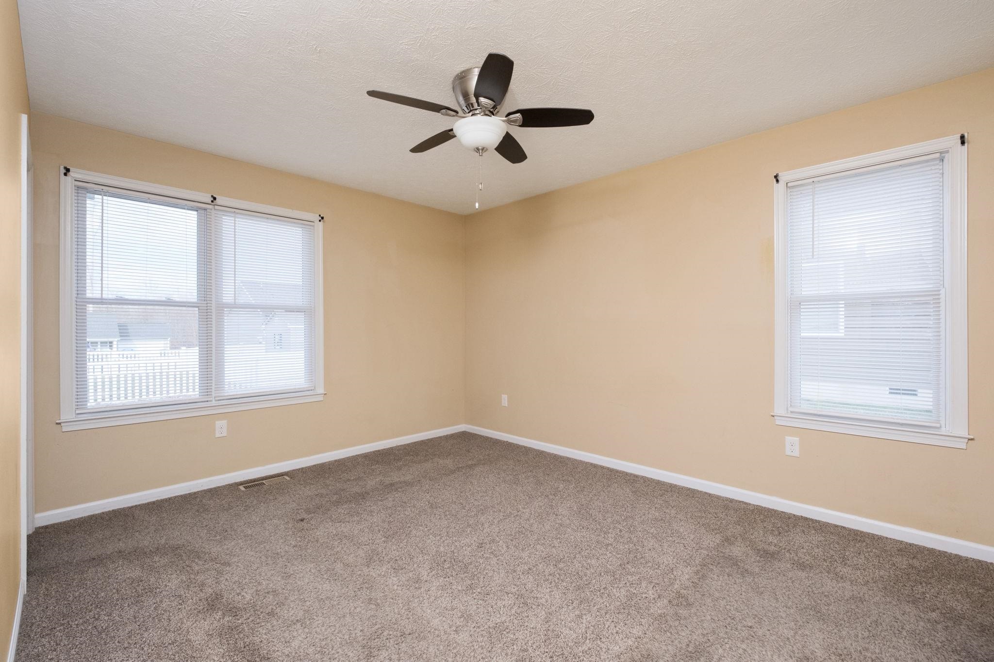 JUST WHAT WAS ASKED FOR! A 3-bedroom, 2.5 bath, well-cared-for home, with a bedroom on the main level, a great kitchen, and attractive wood floors. There is carpet in each bedroom, high ceilings on the main level, a window in the kitchen to the backyard, granite counters, handsome cabinets, double kitchen closets for pantry use, and the stacked washer and dryer stay. Add to all of this a DOUBLE CAR GARAGE, patio, level lot, and yes, a storage building. Range, refrigerator, dishwasher, and microwave stay. The garage door has an automatic opener. The small quarterly HOA fee covers maintenance of the subdivision entrance monument and the common area. Not far from Shenandoah Valley airport, schools, etc. Great location. Easy to show. Call your agent today!