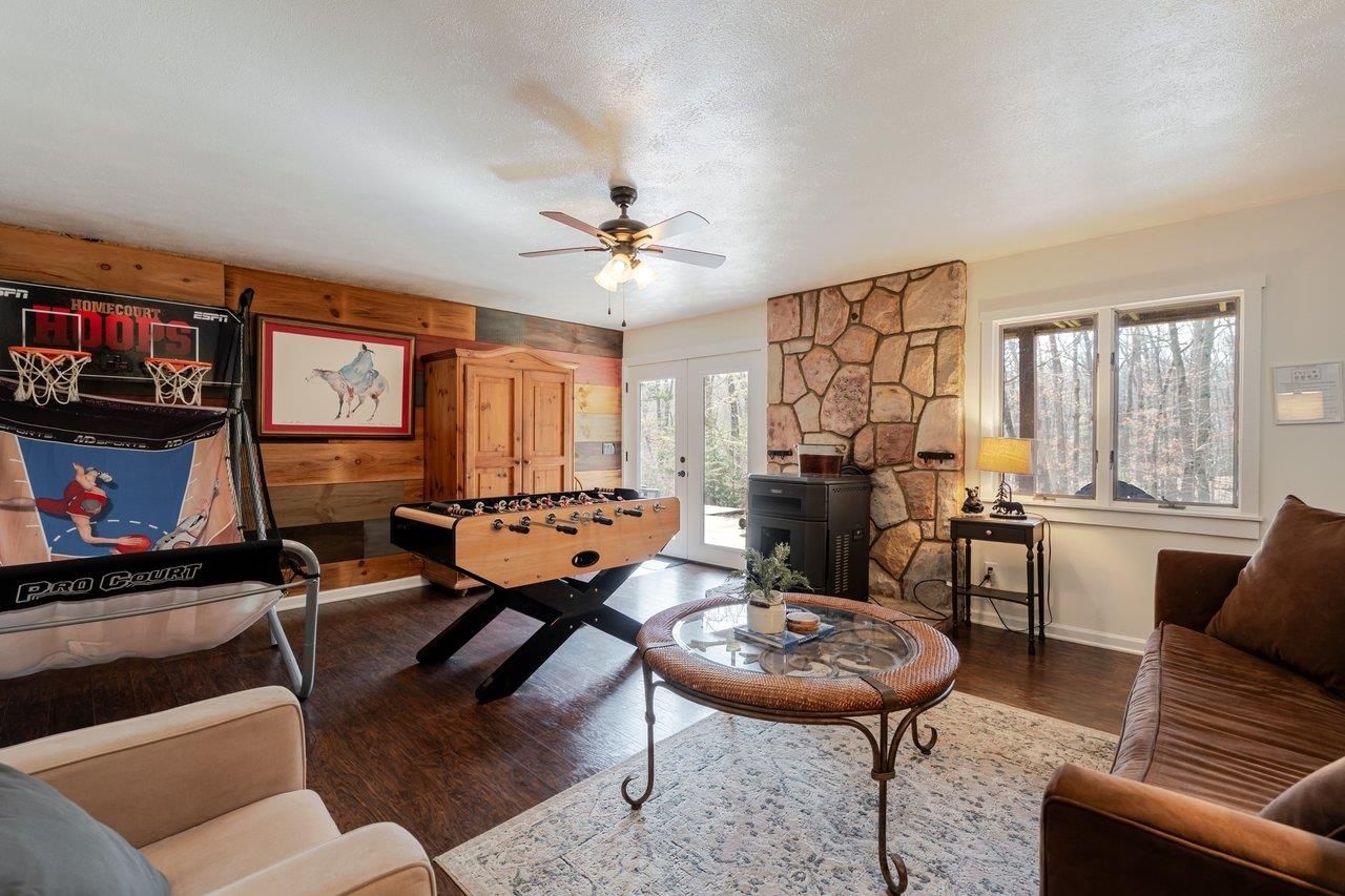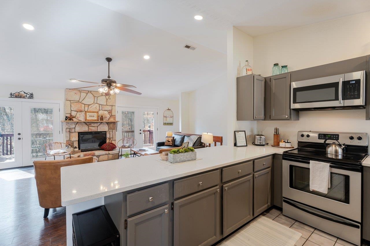 Tucked into a quiet cul-de-sac of Massanutten Resort, this spacious 3-bedroom mountain retreat in the Shenandoah Valley is being sold fully furnished, making it a turn key STR! Surrounded by peaceful woods, the home offers a comfortable, updated space ideal for families, couples, or small groups. Inside, you’ll find an open living area with a cozy fireplace and plenty of natural light—perfect for unwinding after a day of hiking or skiing. The fully equipped kitchen makes it easy to prepare meals, & the dining area provides plenty of space to gather together. You will find 2 bedrooms on the first floor with 1 full bathroom, plus an additional bedroom & attached on-suite in the lower level. There's ample outdoor living space to enjoy: the covered front porch, expansive deck & the patio below. Located within Massanutten Resort, guests have easy access to skiing and snowboarding in winter, as well as hiking, mountain biking, golf, and the popular indoor/outdoor water park during warmer months. Nearby Shenandoah National Park, local wineries, and charming valley towns make great day trips. Whether you're planning a ski weekend, summer getaway, or peaceful mountain retreat, this furnished home fits the bill!