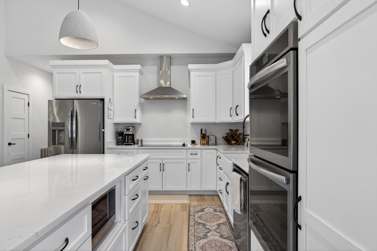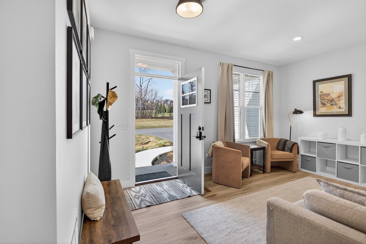 This beautiful home in the Crossroads Farm Cottage community is ideally situated on a desirable corner lot just down the street from Peale’s Park. Offering true one-level living, the home features 3 bedrooms, 2 full baths, and a spacious 2-car garage with pull-down attic storage. The thoughtfully designed split-bedroom layout provides added privacy, with the primary suite located on one side of the home and the additional bedrooms on the other. High ceilings and an open layout fill the home with natural light, while LVP flooring runs throughout the main living areas. The custom kitchen is equipped with stainless appliances and a large island featuring cabinetry on both sides for additional storage and functionality. The spacious primary suite includes a pocket door leading to the walk-in closet and a stunning walk-in tile shower with a rain showerhead, along with a double vanity. Exterior highlights include low-maintenance cement board siding and Trex decking for easy outdoor living. Conveniently located in Rockingham County just minutes from Harrisonburg, Sentara RMH, Lakeview Golf Course, and James Madison University. Don’t miss this opportunity.