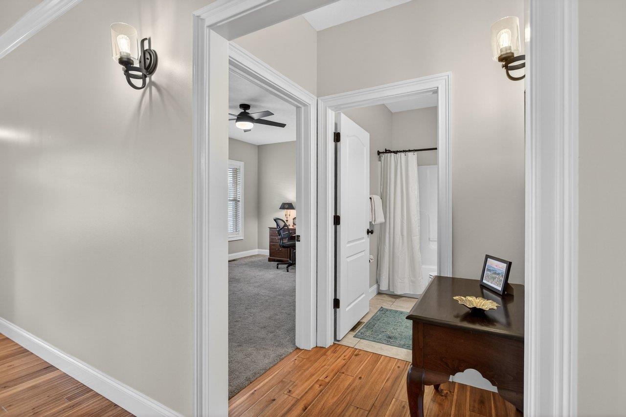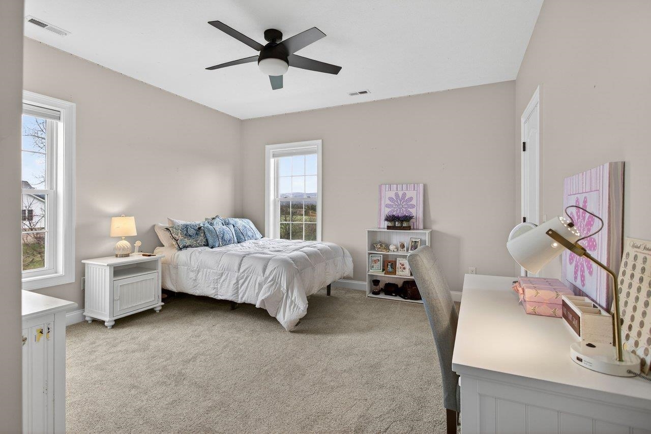 Space, style, and mountain views come together beautifully in this gorgeous home in Overbrook. This 5-bedroom, 4-bathroom home offers 3,800 finished square feet of thoughtfully designed living space, perfect for those ready to spread out and settle in. From the moment you step inside, you'll notice the details: 9-foot ceilings, hardwood floors, crown molding, and shiplap accents throughout. The open-concept main level features a cozy gas fireplace and a kitchen built for gathering, granite counters, gas range, walk-in pantry, and soft-close cabinetry. A main-level bedroom with full bath nearby adds flexibility. Upstairs, the owner's suite is your private retreat with two walk-in closets, jetted tub, double vanity, and mountain views. The finished basement adds a large rec room, full bath, bedroom, and generous storage. Outdoor living on two levels includes a composite deck and covered patio below. Located just 15 minutes from Harrisonburg and minutes from Massanutten and Shenandoah National Park, you'll enjoy the best of valley living with convenience close by.