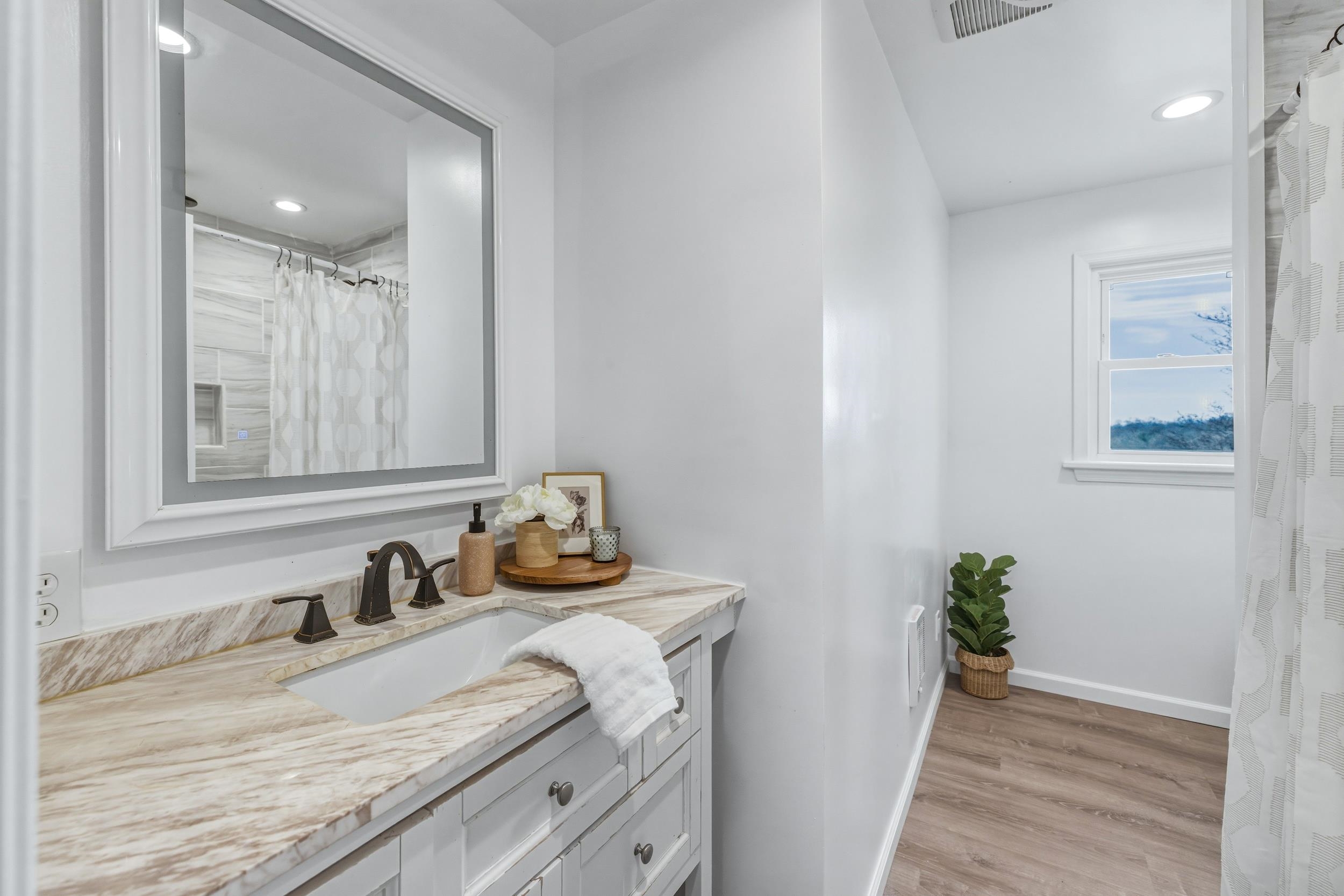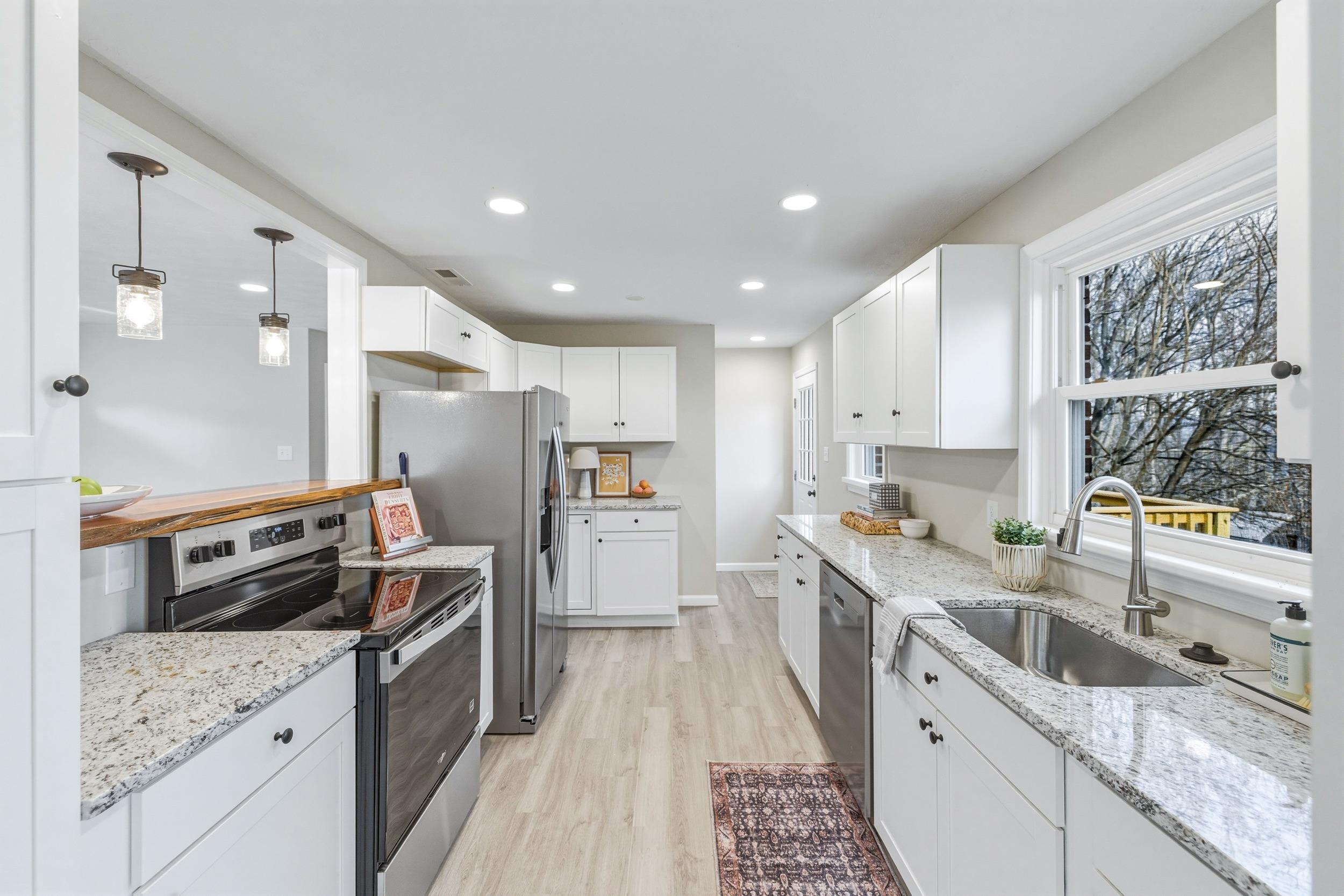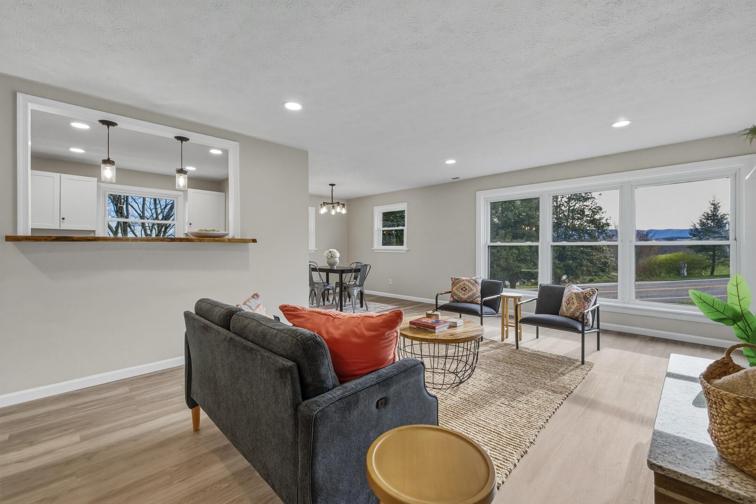 Welcome to 1045 Smithland Road, where timeless character meets modern comfort. This fully renovated brick home blends the charm of its original 1950s design with thoughtful updates throughout. Expanded to offer over 2,500 square feet of living space, this one-level home features 4 bedrooms, 3 full bathrooms, and a fully finished basement—providing flexibility for everyday living, entertaining, or guests. Recent improvements include a new roof, freshly paved driveway, luxury vinyl plank flooring throughout, stainless steel kitchen appliances, and granite countertops in both the kitchen and bathrooms. Comfort is enhanced year-round with a new heat pump and additional mini-split system Step outside to enjoy mountain and pastoral views from the newly constructed deck, or unwind in the privacy of a backyard bordered by mature woods. Offering the convenience of being located within Harrisonburg’s city limits, this home is ideally located near shopping, dining, schools, Sentara RMH, and provides easy access to Interstate 81. Downtown Harrisonburg and James Madison University are both just a short 10-minute drive away. Don’t miss this rare opportunity, schedule your showing today!
