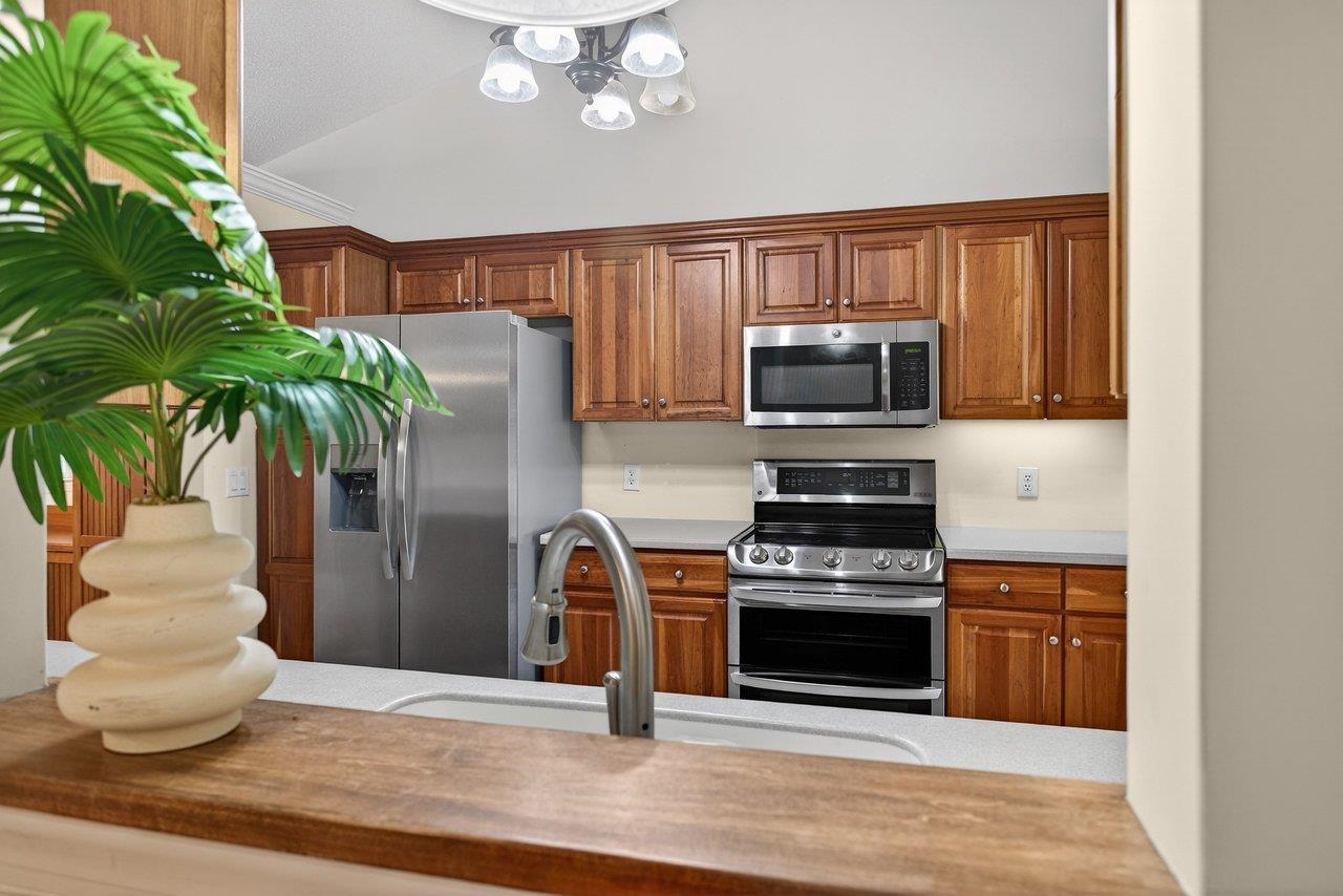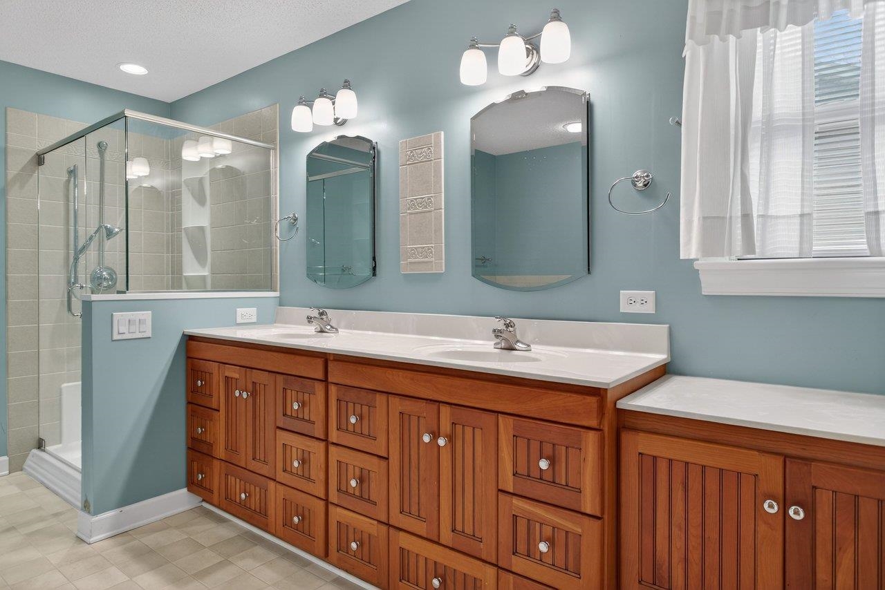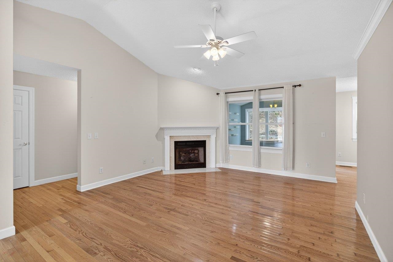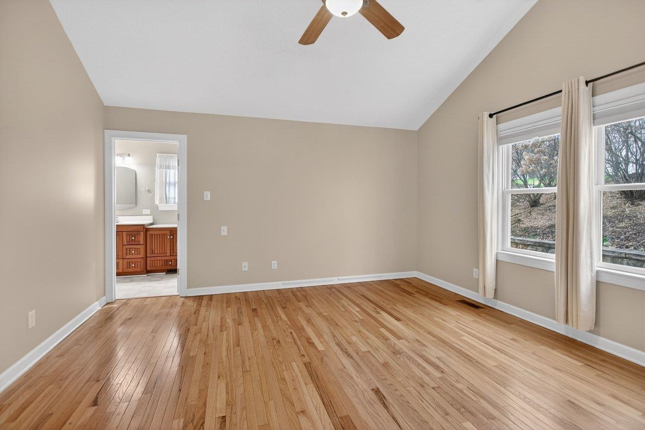 Well-maintained one-level home in a desireable city location, convenient to Sentara RMH and just minutes from JMU, shopping. The layout flows well: a proper foyer with two closets leads into a generous living room anchored by a gas fireplace and an 11-foot vaulted ceiling that carries into the kitchen. Don’t miss the dining room loaded with built-ins. The kitchen is outfitted with cherry cabinets, Corian counters, stainless appliances, and under-cabinet lighting. Hardwood floors run through all the bedrooms and living areas, with tile in the wet and transition spaces. The owner's suite is a standout: large bedroom with vaulted ceiling, dual comfort-height vanity, jetted tub with tile surround, tiled shower with glass enclosure, and a 6x10 walk-in closet. Two additional bedrooms share a full bath. Other practical highlights include a 6x9 laundry room with a large sink, an 11x11 sunroom with its own vaulted ceiling, a double garage, and a 5x13 storage shed. Outside, both the front and back feature pavered patios — the back patio is bordered by a stone retaining wall and has a retractable awning, making it a genuinely usable outdoor space. HVAC was replaced in 2021, and the crawl space is conditioned.