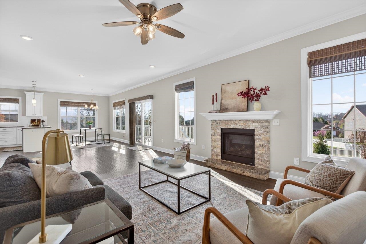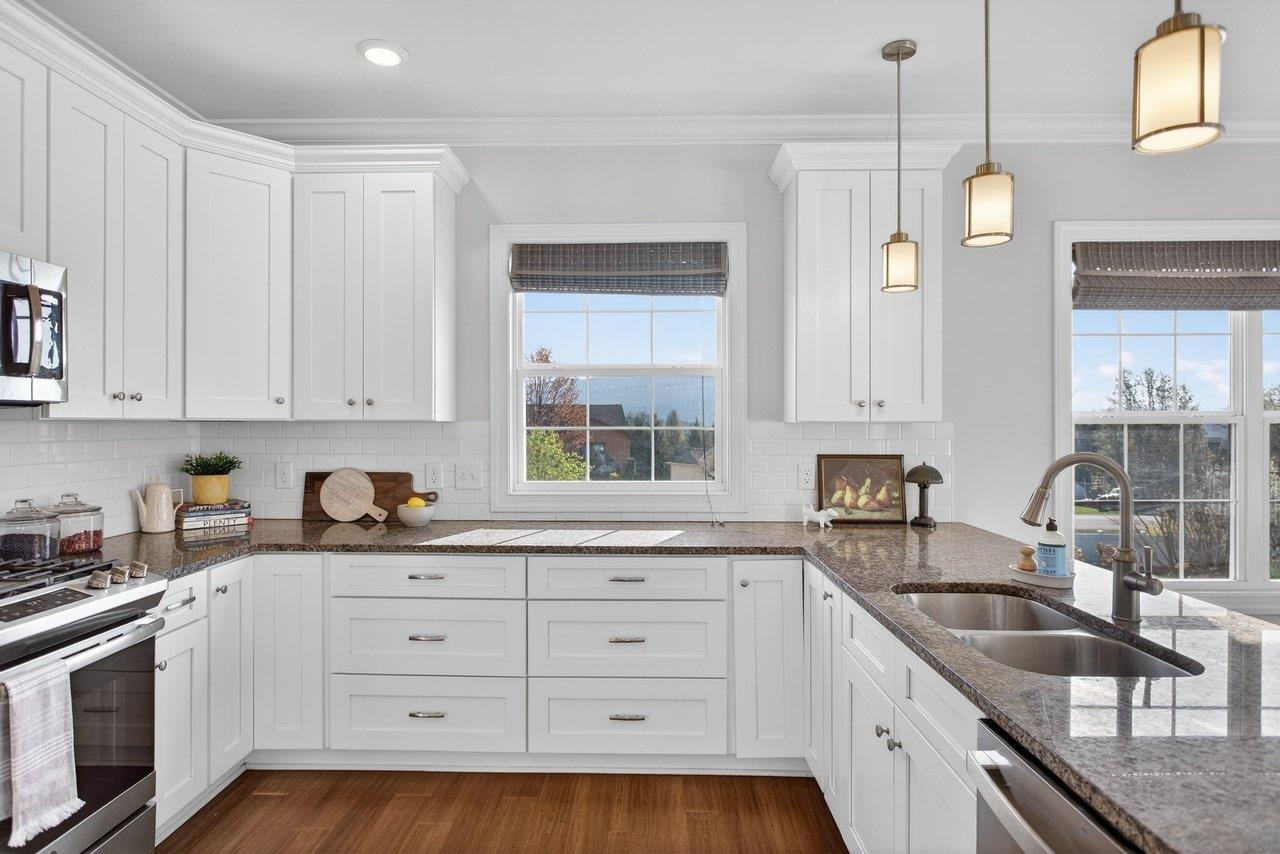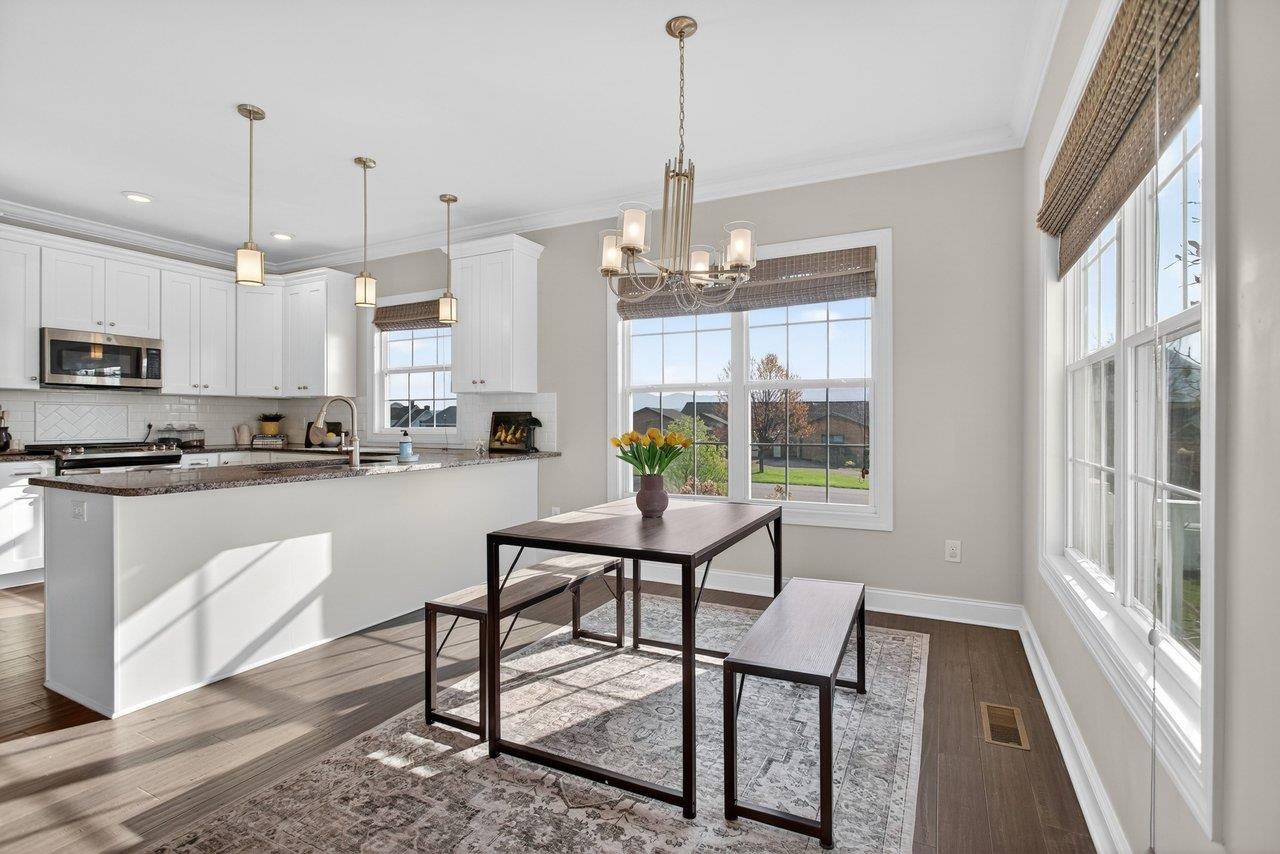 Welcome home to 3885 Cadet Court! Located just 5 miles from Harrisonburg and 1 mile from Rockingham Park, this property offers the perfect blend of peaceful living with quick access to shopping and recreation! This welcoming home offers modern finishes that include engineered hardwood floors, granite countertops, and white cabinets. The kitchen seamlessly opens up to the dining room and oversized living space, that includes an abundance of natural light and gas fireplace. The french doors off the dining room lead to the outdoor space with a composite deck and fully fenced backyard! Don't miss the lovely mountain views out the large kitchen window! The front of the home has a bonus living room or the perfect home office. The upstairs includes a primary bedroom retreat with two walk-in closets, double vanity, tiled shower, and soaker bathtub. In addition, the upstairs includes three more bedrooms (all with brand-new carpet), full bathroom, and laundry space. Don't miss your chance to own this lovely home!