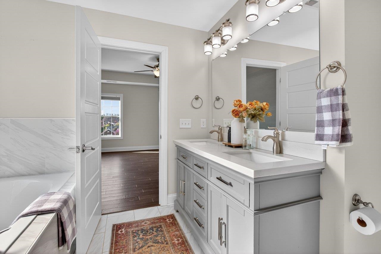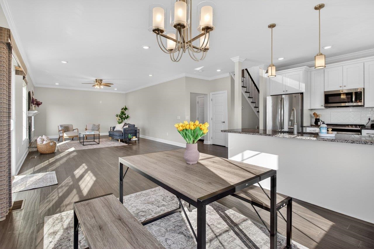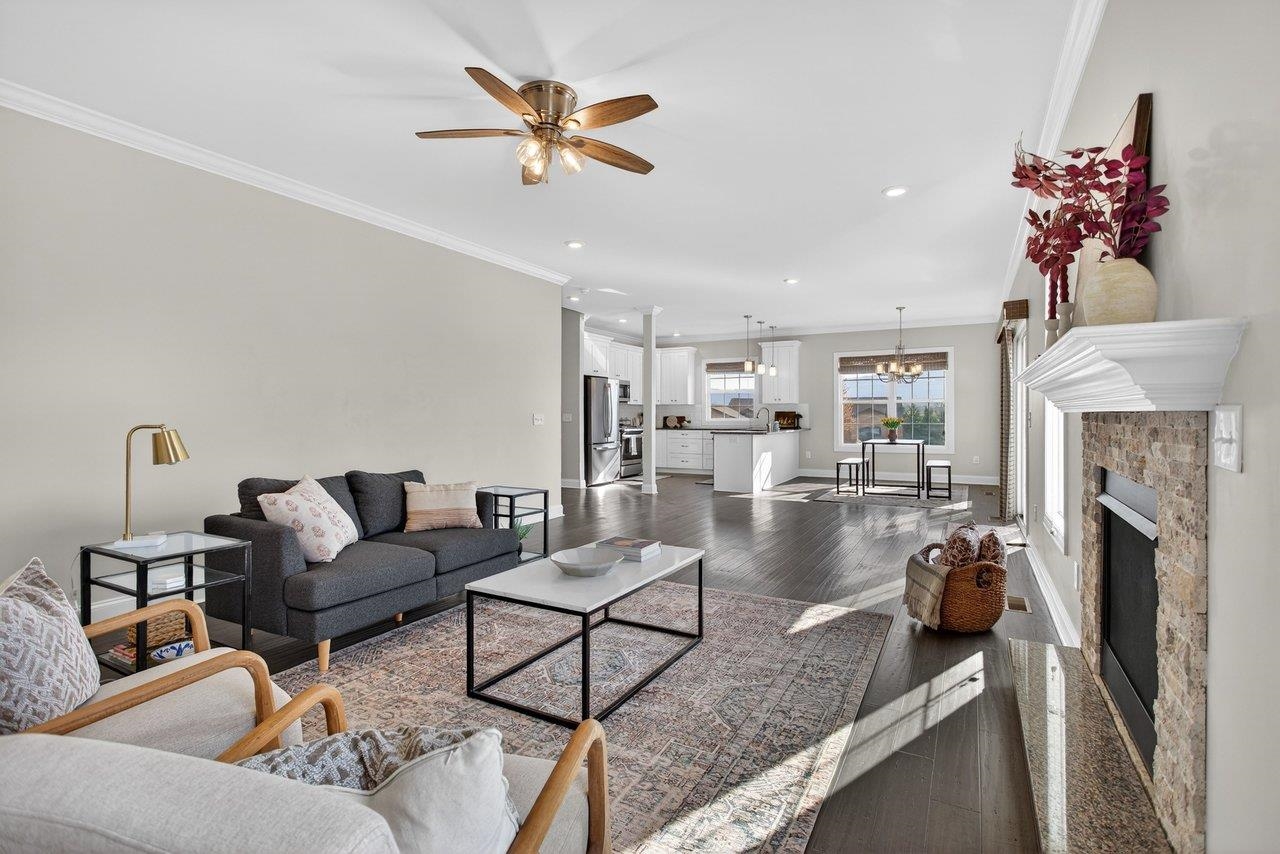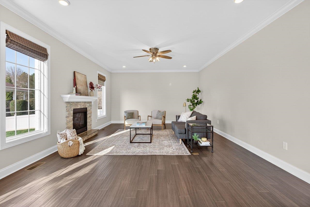 Welcome home to 3885 Cadet Court! Located just 5 miles from Harrisonburg and 1 mile from Rockingham Park, this property offers the perfect blend of peaceful living with quick access to shopping and recreation! This welcoming home offers modern finishes that include engineered hardwood floors, granite countertops, and white cabinets. The kitchen seamlessly opens up to the dining room and oversized living space, that includes an abundance of natural light and gas fireplace. The french doors off the dining room lead to the outdoor space with a composite deck and fully fenced backyard! Don't miss the lovely mountain views out the large kitchen window! The front of the home has a bonus living room or the perfect home office. The upstairs includes a primary bedroom retreat with two walk-in closets, double vanity, tiled shower, and soaker bathtub. In addition, the upstairs includes three more bedrooms (all with brand-new carpet), full bathroom, and laundry space. Don't miss your chance to own this lovely home!