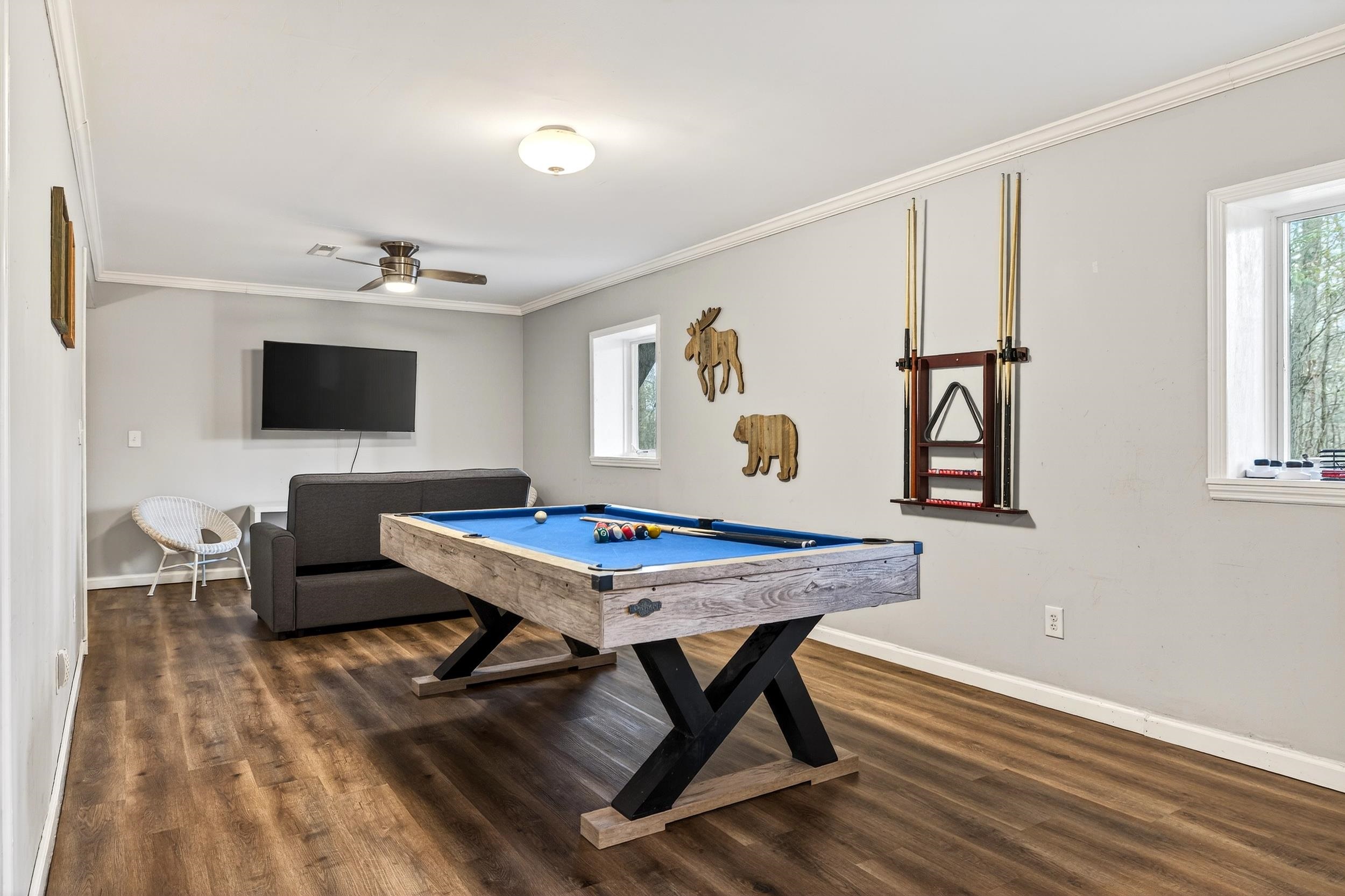 Tucked away at the end of a quiet cul-de-sac, this beautiful 4-bedroom, 3.5-bath home offers winter views of the Blue Ridge Mountains along with generous entertaining space on the back deck and balconies, creating a peaceful and private setting. Currently a popular vacation rental and being sold fully furnished, this well-maintained property presents an excellent opportunity as a primary residence, second home, or continued successful Airbnb investment! Ideally located near the midpoint of the resort for convenient access to amenities and activities, the home has seen numerous upgrades and updates within the past month, including a new HVAC system, built-in microwave, subway tile backsplash in the kitchen, new LVP flooring upstairs, and fresh paint throughout. The spacious living room is perfect for relaxing after a day of activities, featuring a cozy fireplace, ample seating, and large windows that fill the space with natural light. The large, mostly finished basement offers additional options for entertaining or gathering and includes a utility room with washer and dryer. Located within Massanutten Resort, owners and guests enjoy easy access to year-round recreation including skiing, hiking, mountain biking, golf, and more!