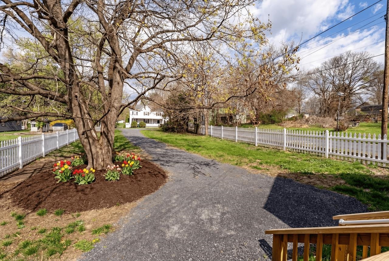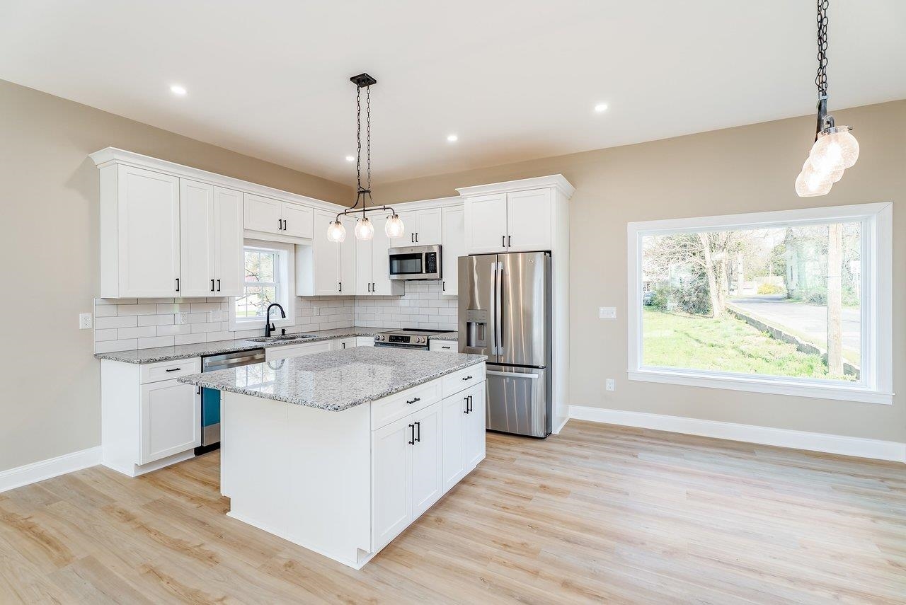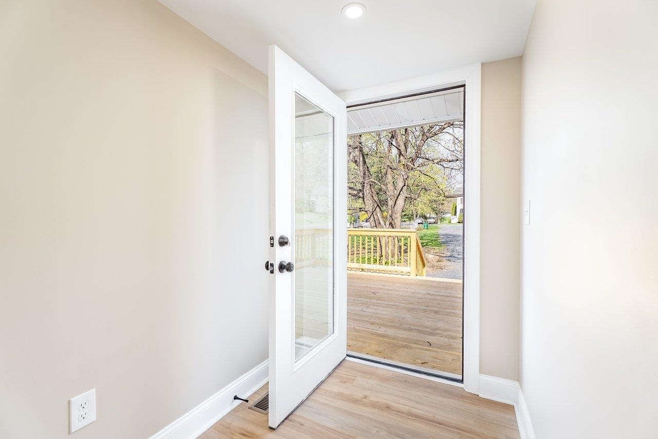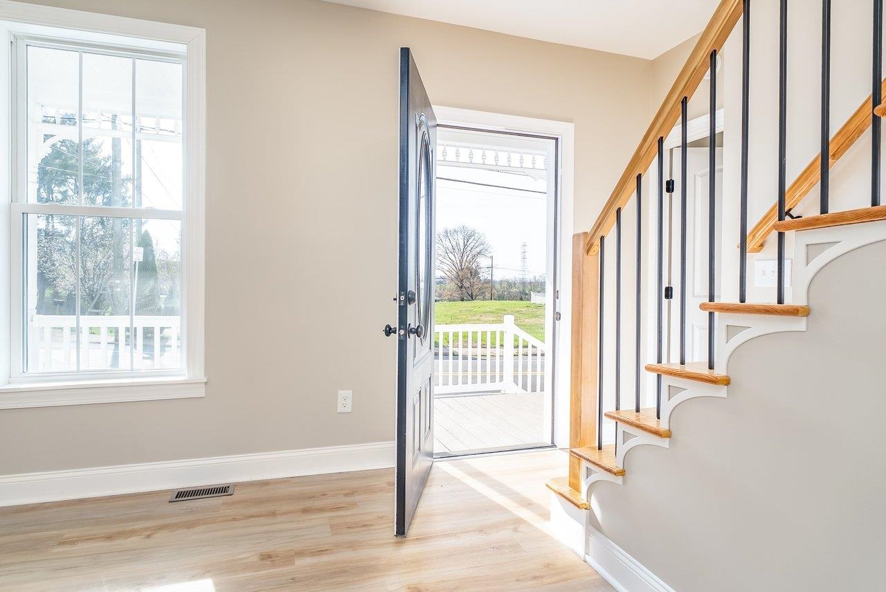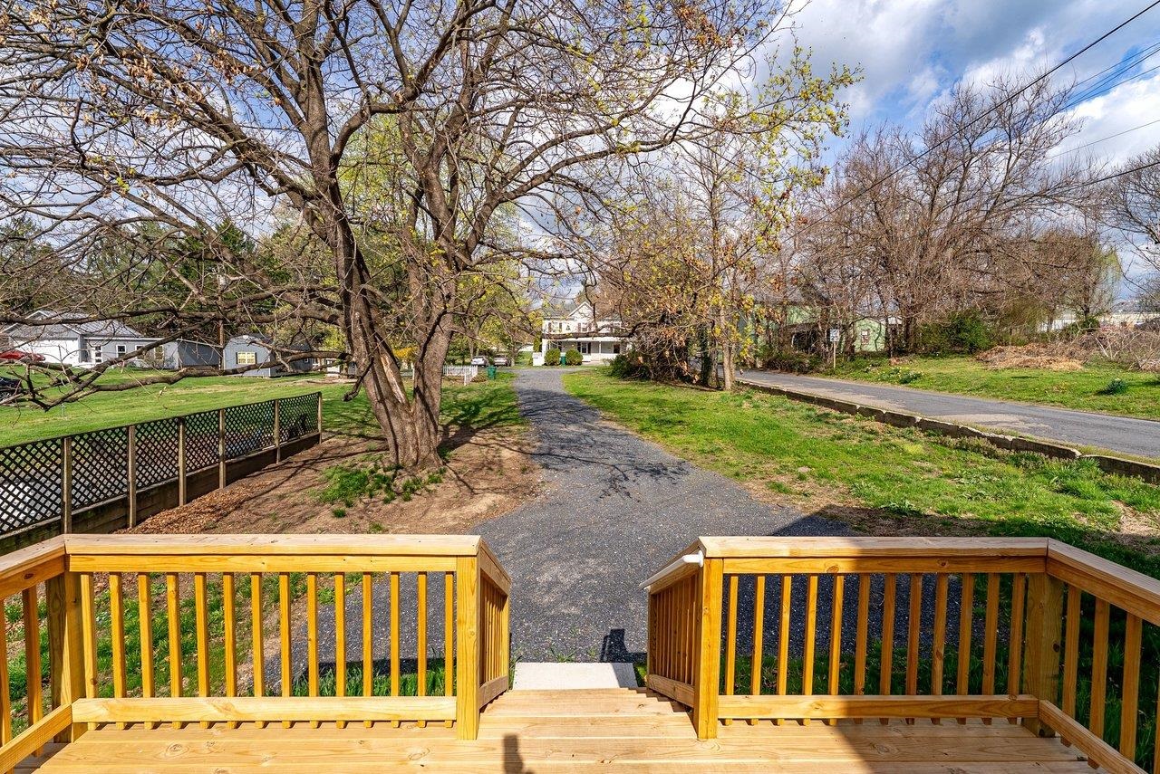 A complete renovation that honors the character of a classic 1893 home while delivering every modern finish today's buyers are looking for. The open-concept main floor impresses immediately, with tall ceilings, recessed lighting, and a showstopper kitchen featuring white cabinets, black hardware, granite countertops, stainless steel appliances, and a large island. LVP flooring runs throughout the main level, and a wrought iron stair railing with wooden stairs sets the tone from the moment you walk in. The main level also offers a bedroom, a dedicated laundry room, and a full bath with black fixtures. Upstairs, original hardwood floors bring warmth and authenticity to the owner's suite and second bedroom, each with their own private bath finished with tile, white cabinets, and black fixtures. Out back, a wooden deck overlooks a generous yard. A partially covered front porch with a white fence welcomes you home. Located just 7 minutes from Bridgewater and 15–20 minutes to Harrisonburg with easy I-81 access, this one truly has it all!