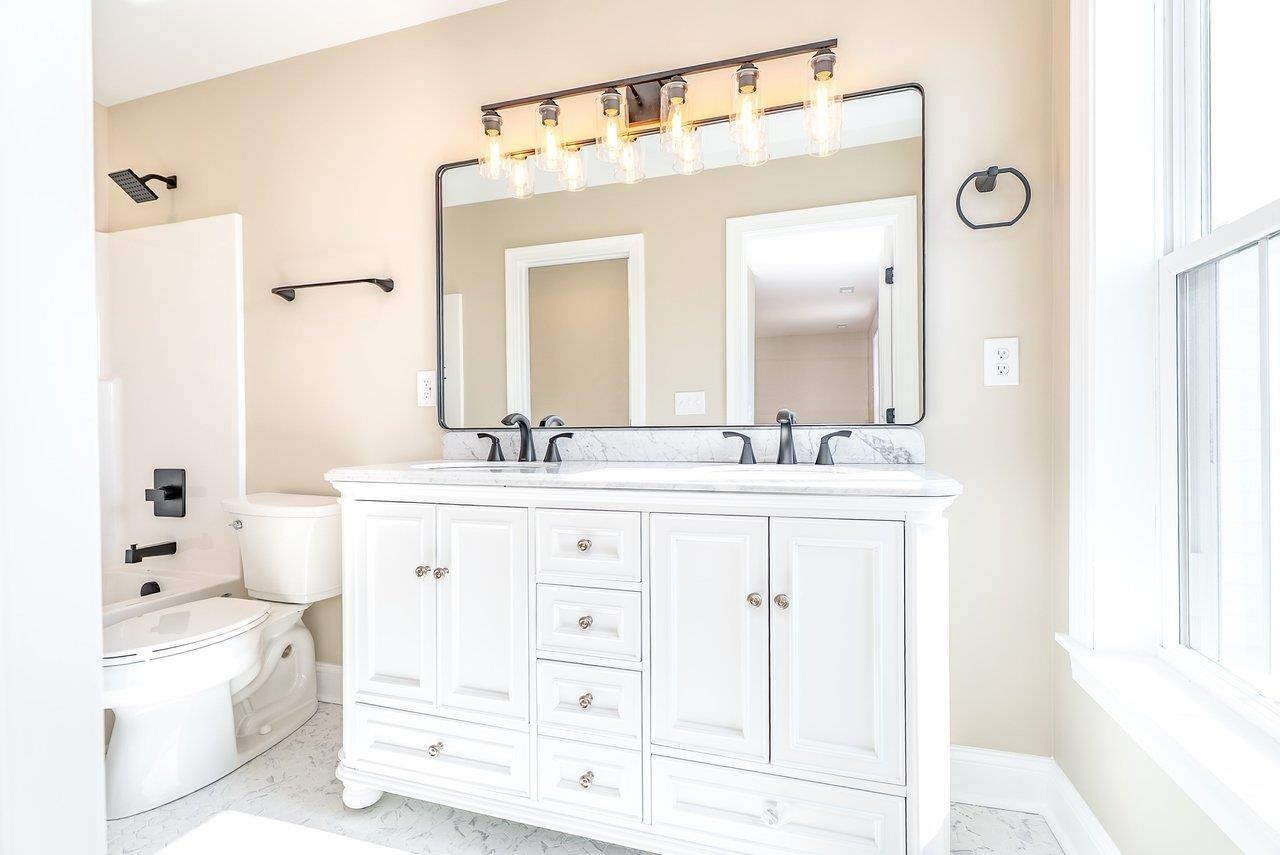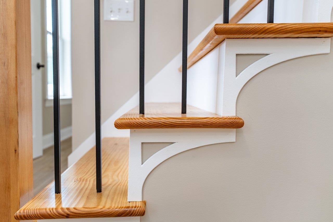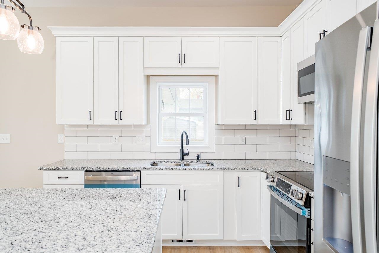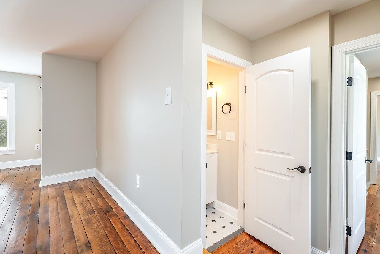 A complete renovation that honors the character of a classic 1893 home while delivering every modern finish today's buyers are looking for. The open-concept main floor impresses immediately, with tall ceilings, recessed lighting, and a showstopper kitchen featuring white cabinets, black hardware, granite countertops, stainless steel appliances, and a large island. LVP flooring runs throughout the main level, and a wrought iron stair railing with wooden stairs sets the tone from the moment you walk in. The main level also offers a bedroom, a dedicated laundry room, and a full bath with black fixtures. Upstairs, original hardwood floors bring warmth and authenticity to the owner's suite and second bedroom, each with their own private bath finished with tile, white cabinets, and black fixtures. Out back, a wooden deck overlooks a generous yard. A partially covered front porch with a white fence welcomes you home. Located just 7 minutes from Bridgewater and 15–20 minutes to Harrisonburg with easy I-81 access, this one truly has it all!