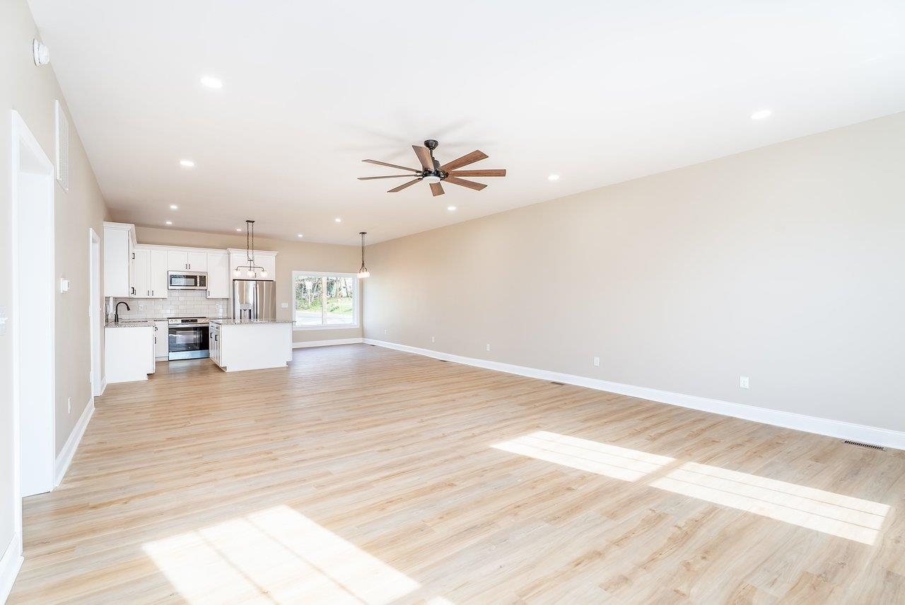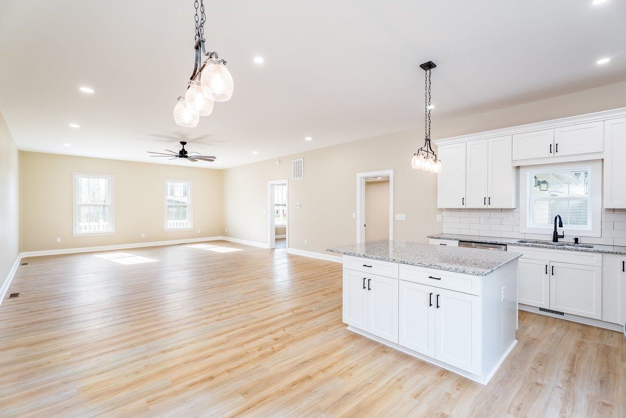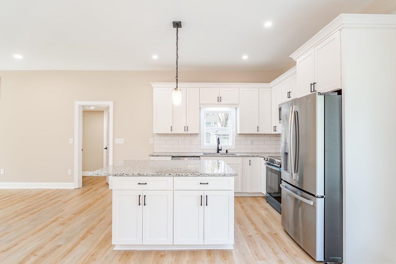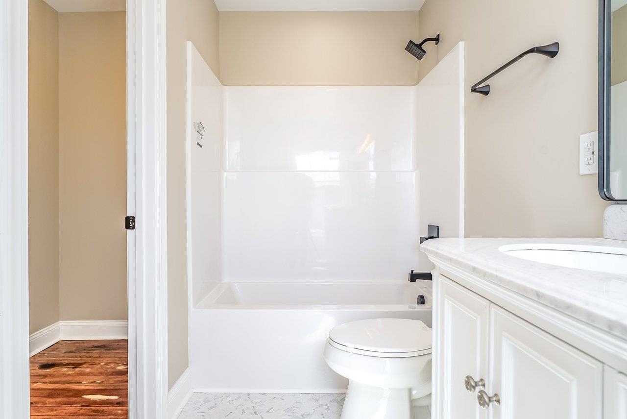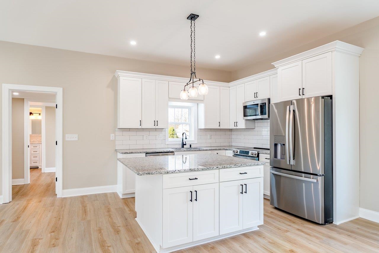 A complete renovation that honors the character of a classic 1893 home while delivering every modern finish today's buyers are looking for. The open-concept main floor impresses immediately, with tall ceilings, recessed lighting, and a showstopper kitchen featuring white cabinets, black hardware, granite countertops, stainless steel appliances, and a large island. LVP flooring runs throughout the main level, and a wrought iron stair railing with wooden stairs sets the tone from the moment you walk in. The main level also offers a bedroom, a dedicated laundry room, and a full bath with black fixtures. Upstairs, original hardwood floors bring warmth and authenticity to the owner's suite and second bedroom, each with their own private bath finished with tile, white cabinets, and black fixtures. Out back, a wooden deck overlooks a generous yard. A partially covered front porch with a white fence welcomes you home. Located just 7 minutes from Bridgewater and 15–20 minutes to Harrisonburg with easy I-81 access, this one truly has it all!
