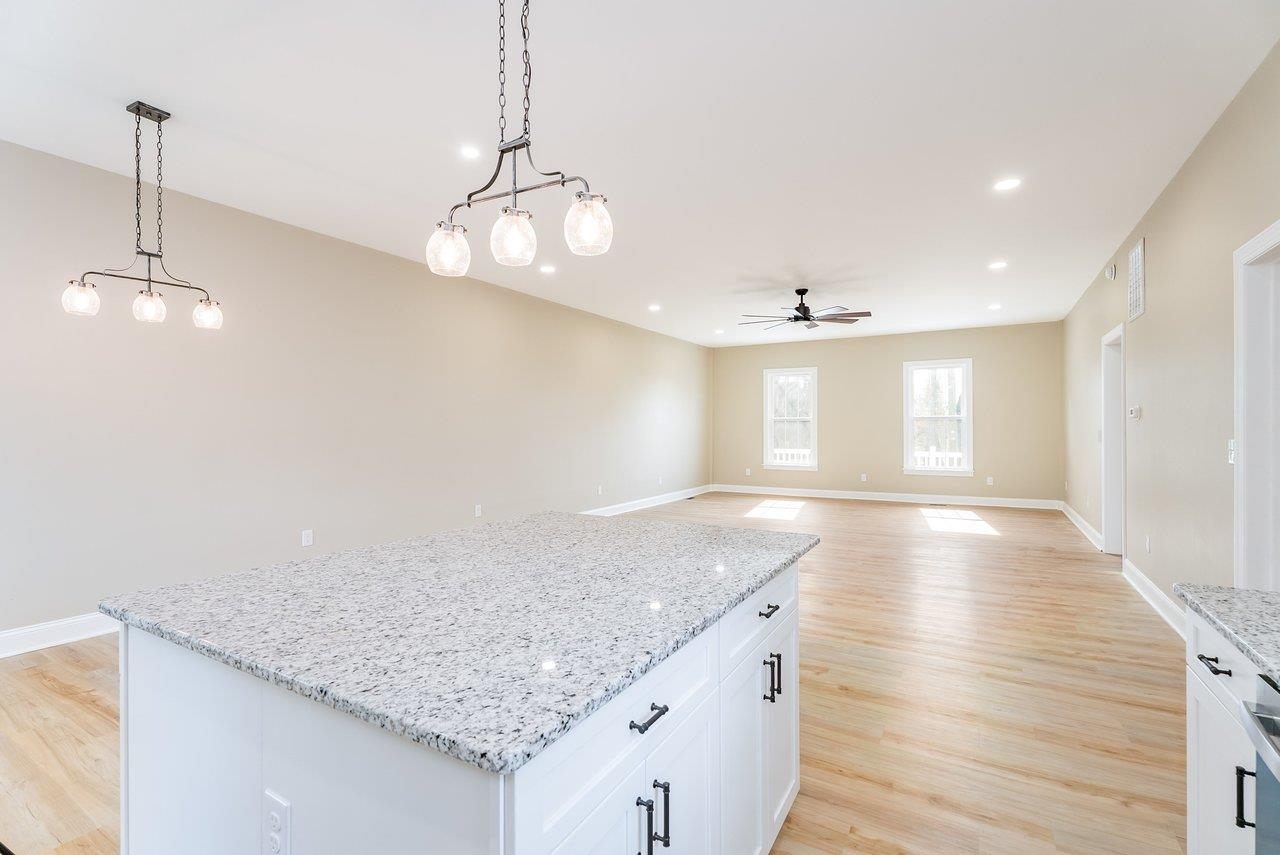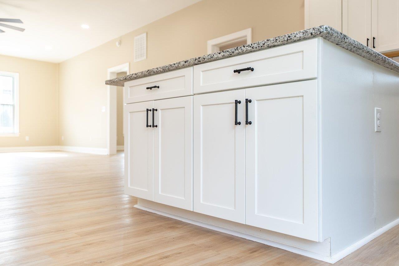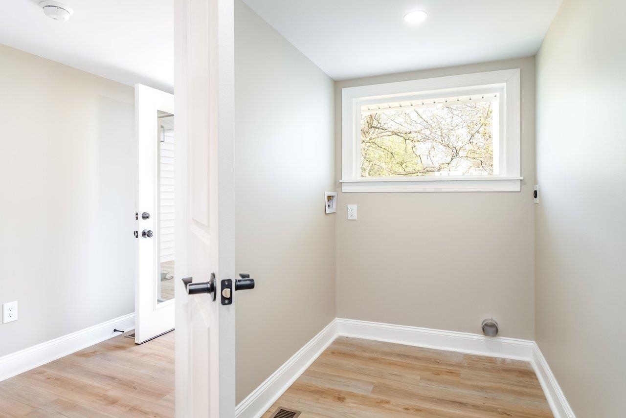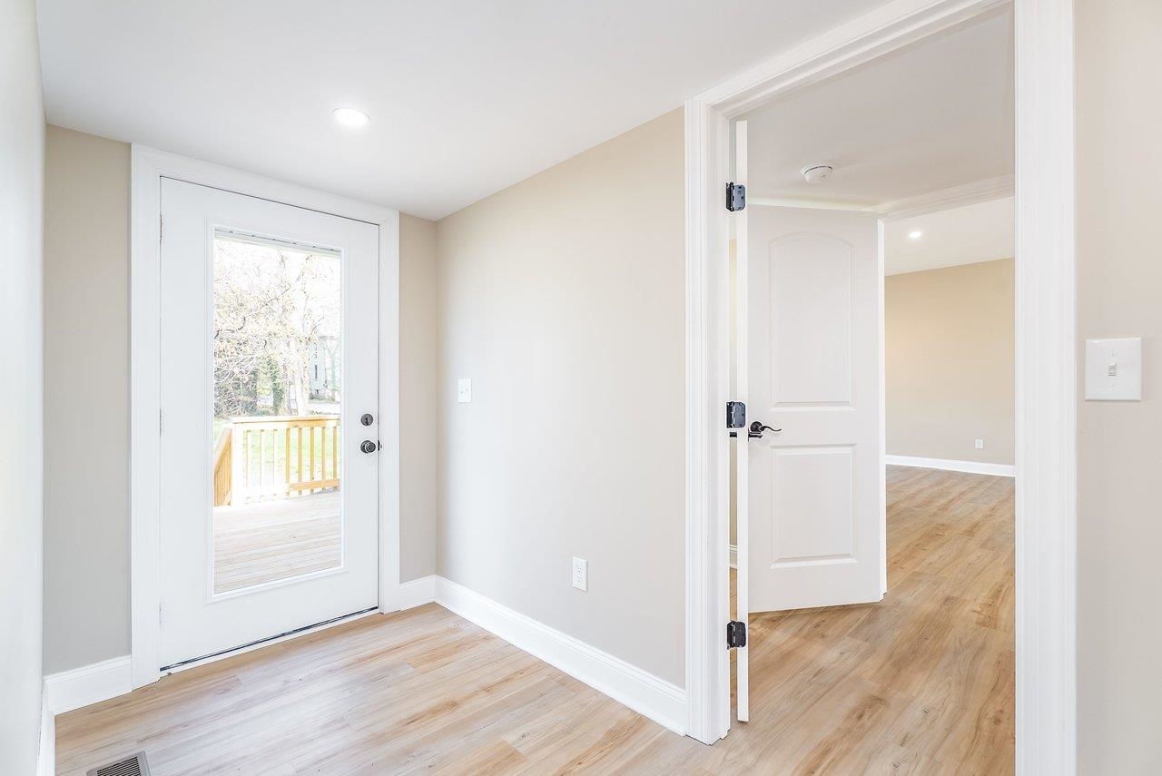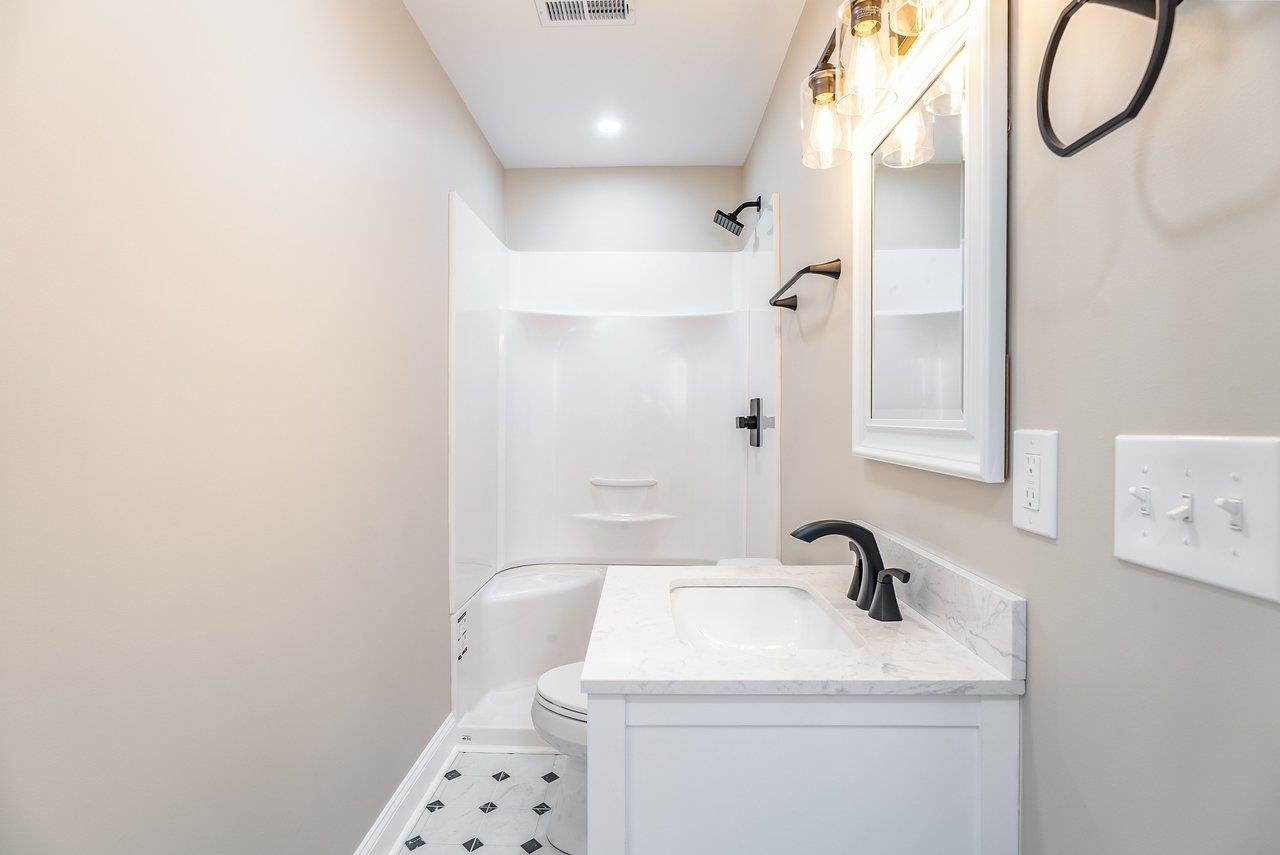A complete renovation that honors the character of a classic 1893 home while delivering every modern finish today's buyers are looking for. The open-concept main floor impresses immediately, with tall ceilings, recessed lighting, and a showstopper kitchen featuring white cabinets, black hardware, granite countertops, stainless steel appliances, and a large island. LVP flooring runs throughout the main level, and a wrought iron stair railing with wooden stairs sets the tone from the moment you walk in. The main level also offers a bedroom, a dedicated laundry room, and a full bath with black fixtures. Upstairs, original hardwood floors bring warmth and authenticity to the owner's suite and second bedroom, each with their own private bath finished with tile, white cabinets, and black fixtures. Out back, a wooden deck overlooks a generous yard. A partially covered front porch with a white fence welcomes you home. Located just 7 minutes from Bridgewater and 15–20 minutes to Harrisonburg with easy I-81 access, this one truly has it all!