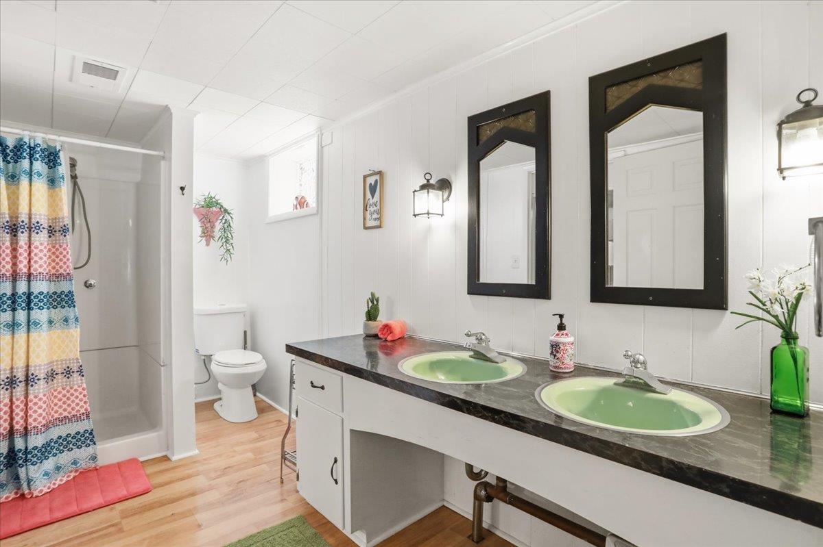 Welcome Home to a slice of paradise in the heart of H'burg, this impressive home offers a unique charm, privacy, and convenience to all the amenities of the city – minutes away from universities, sports complexes, playgrounds, grocery stores, shopping, historical sites, and Sentara RMH Medical Center. The main level opens to a spacious living room and dining room area with large windows that not only let in the beautiful natural light, but also share breathtaking views. The hallway blends smoothly into three bedrooms and two bathrooms, one of which is the primary suite with an attached bath. This level includes a gorgeously remodeled, spacious kitchen, with room for a breakfast table, and then leads into a den or an office space. Doors off of the living room and kitchen lead to a breathtaking veranda that has incredible access to a pool, along with a slide and diving board – perfect for relaxation or parties with friends and loved ones. Through the kitchen, stairs lead down to a large laundry room, storage room, and access to the convenient, cozy walkout basement apartment, complete with: bedroom, bathroom, full kitchen, small dining area, and living room – with clear access to the parking pad with room for four vehicles.