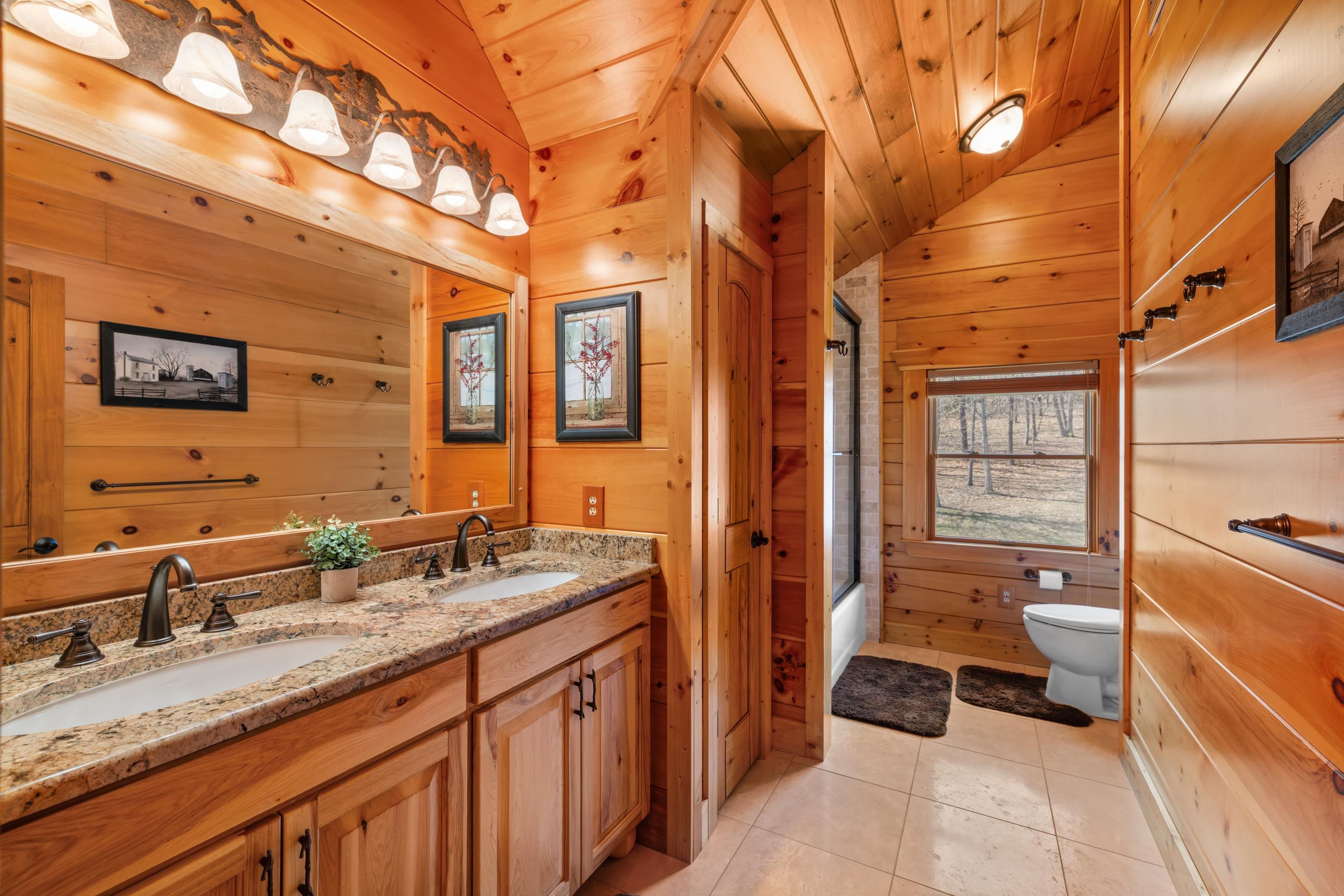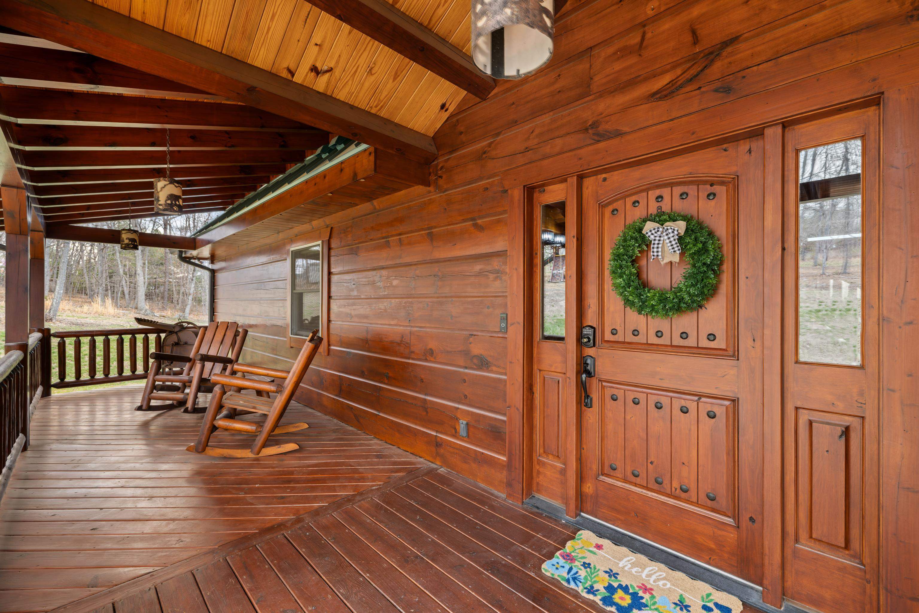 Tucked away on 18.6 private wooded acres, this immaculate log home offers the perfect balance of peaceful mountain living & refined comfort. With over 4,300 finished sq ft, this 5-bedroom, 3.5-bath home is thoughtfully designed with high-end finishes throughout. The main-level primary suite is a true retreat, featuring its own fireplace, private deck access, & a spacious bath with jetted tub & tiled walk-in shower. The kitchen is both warm & impressive, showcasing hickory cabinetry, Sub-Zero paneled refrigerator, & a Wolf commercial gas range. A newer metal roof, radiant heat on the main level, & a new back deck & railing reflect the care & quality poured into this home. Enjoy abundant wildlife, total privacy, & over $100,000 in custom furnishings conveying for a truly turn-key experience. Three separate parcels offer flexibility for expansion or additional building, current owners added two detached garages (30x40 and 40x60) providing exceptional space for storage or hobbies. Ideal as a private retreat or Airbnb income-producing property, all conveniently located near Massanutten Resort, Merck & Miller Coors. Call today and take a look at this truly special home that could be yours! Better hurry!
