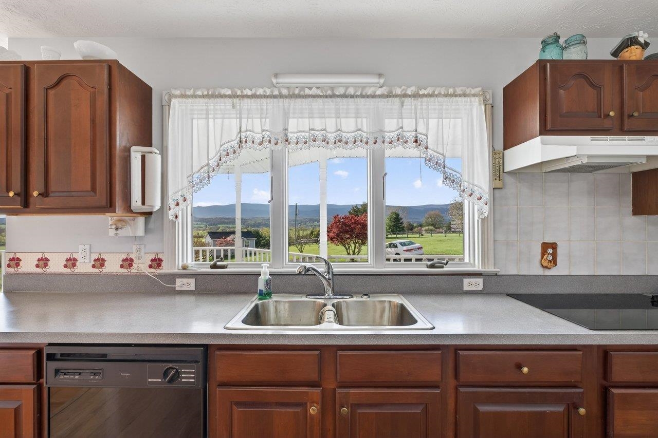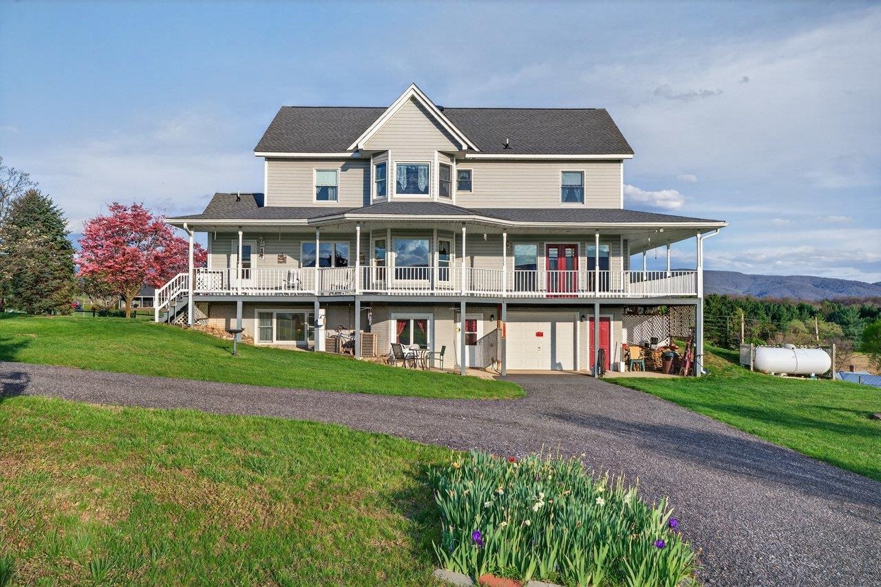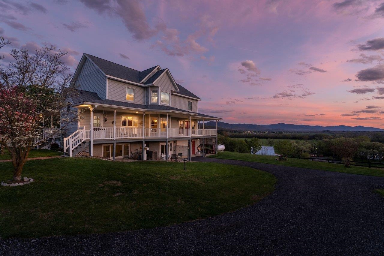 Custom-built, one-owner home in Elkton showcasing breathtaking panoramic views of the Blue Ridge and Massanutten Mountains, with the ski slopes at Massanutten visible in the distance. Built in 1997 with evident pride of ownership throughout. New roof installed in 2025. Versatile floor plan includes a fully equipped basement apartment with kitchen, ideal for multi-generational living, guest space, or rental income potential, along with a central vacuum system for added convenience. The property features a diverse selection of established fruit trees and plantings, including peaches, pears, cherries, apples, raspberries, and grapevines.