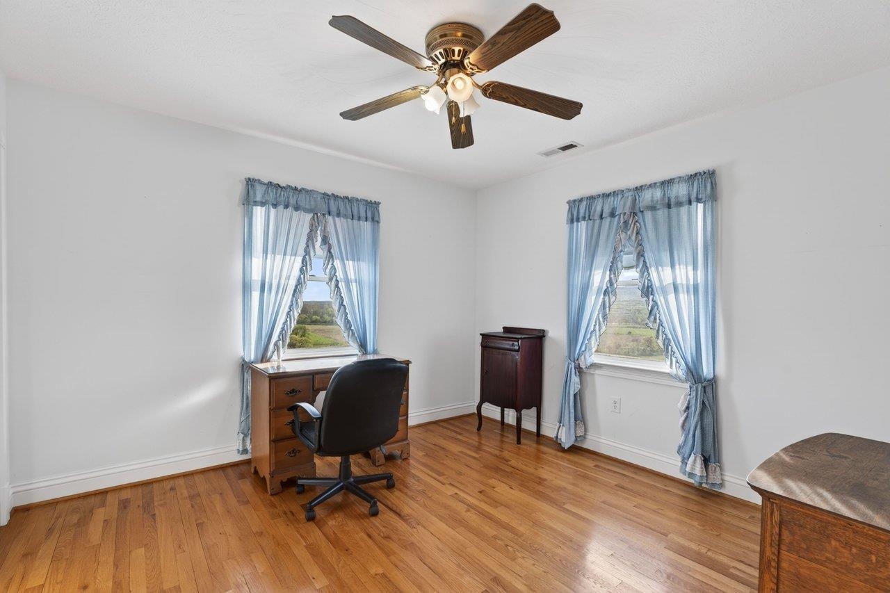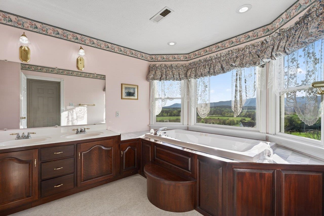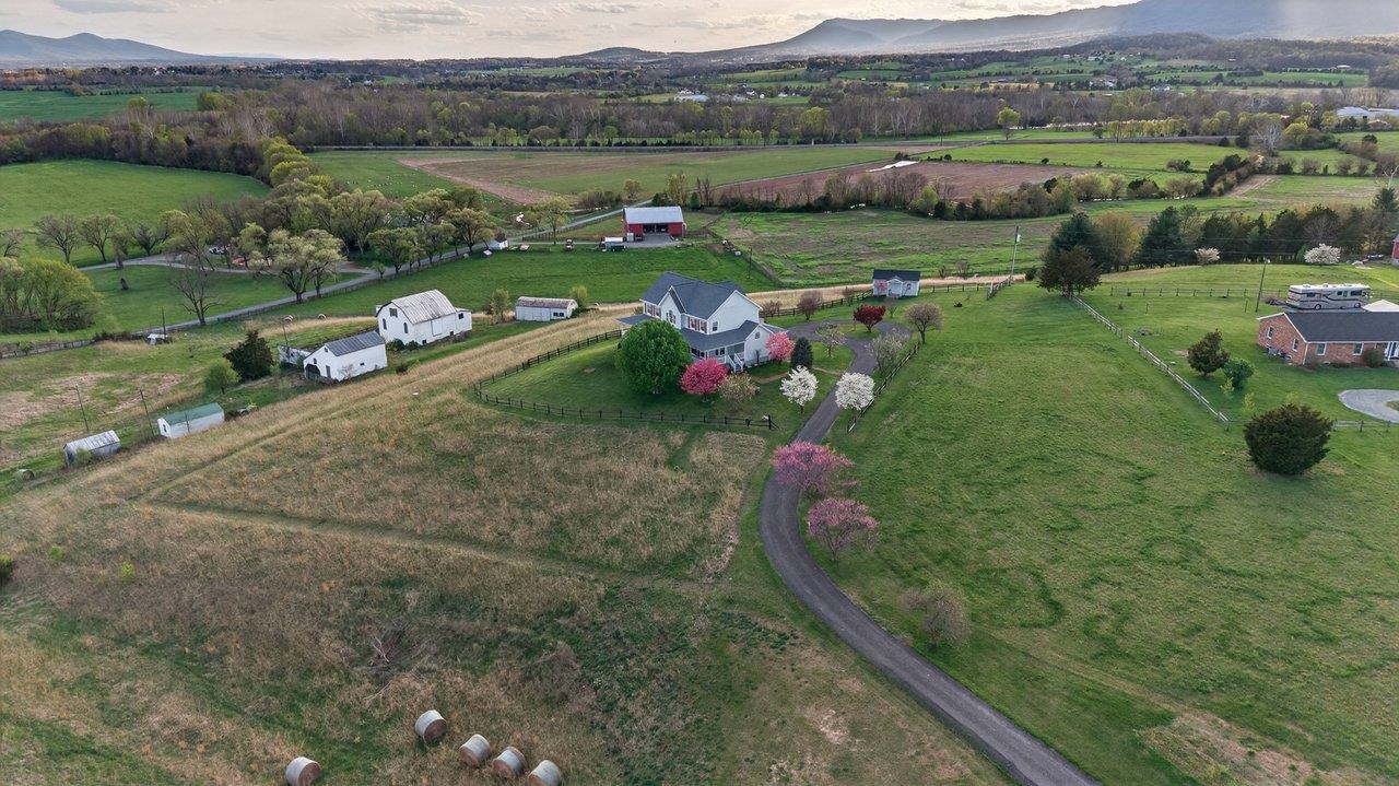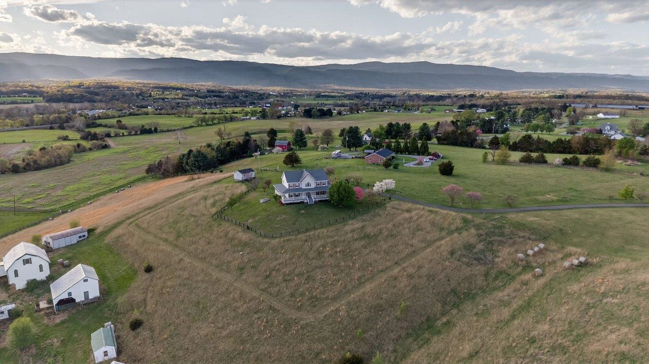 Custom-built, one-owner home in Elkton showcasing breathtaking panoramic views of the Blue Ridge and Massanutten Mountains, with the ski slopes at Massanutten visible in the distance. Built in 1997 with evident pride of ownership throughout. New roof installed in 2025. Versatile floor plan includes a fully equipped basement apartment with kitchen, ideal for multi-generational living, guest space, or rental income potential, along with a central vacuum system for added convenience. The property features a diverse selection of established fruit trees and plantings, including peaches, pears, cherries, apples, raspberries, and grapevines.