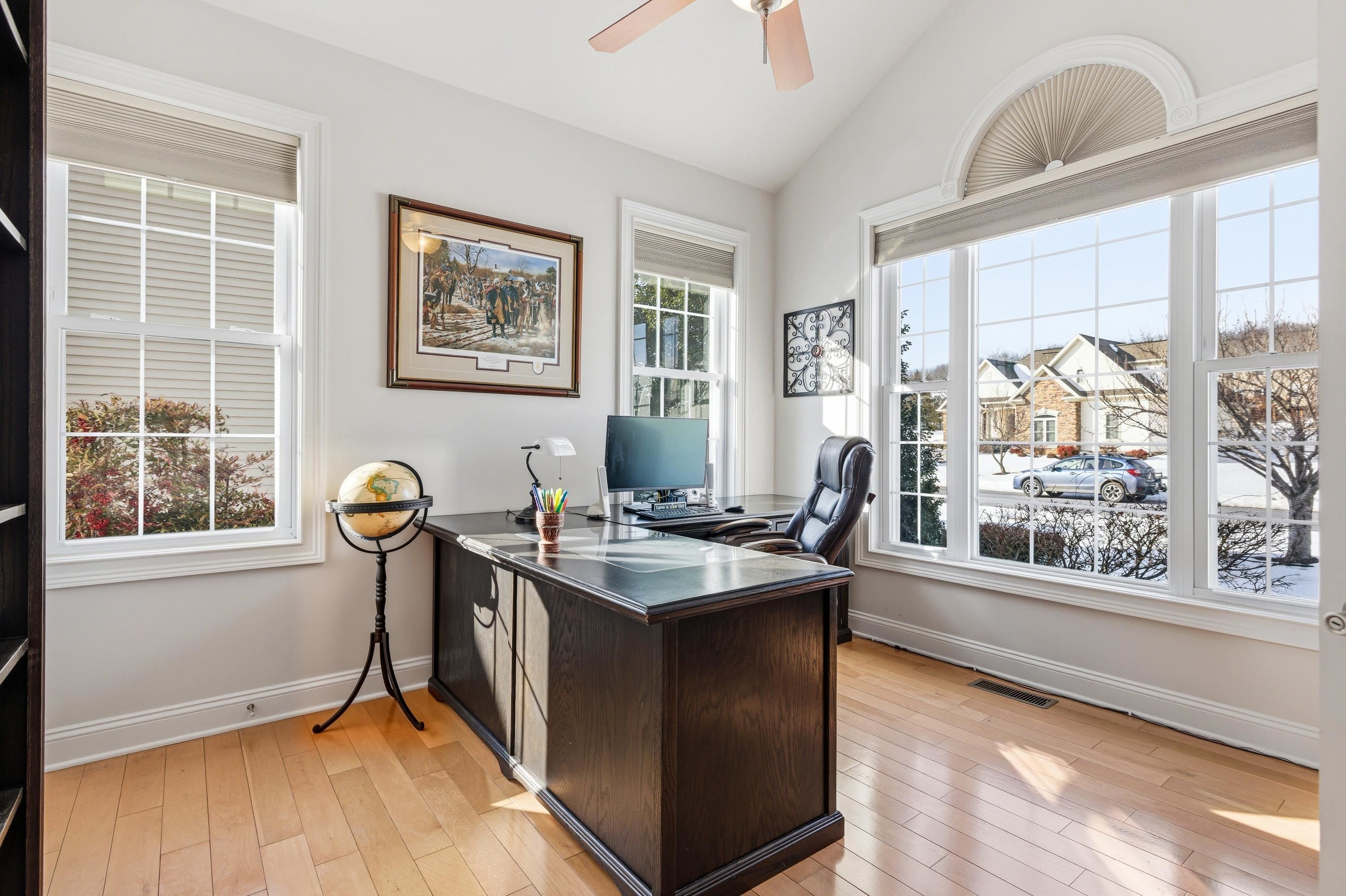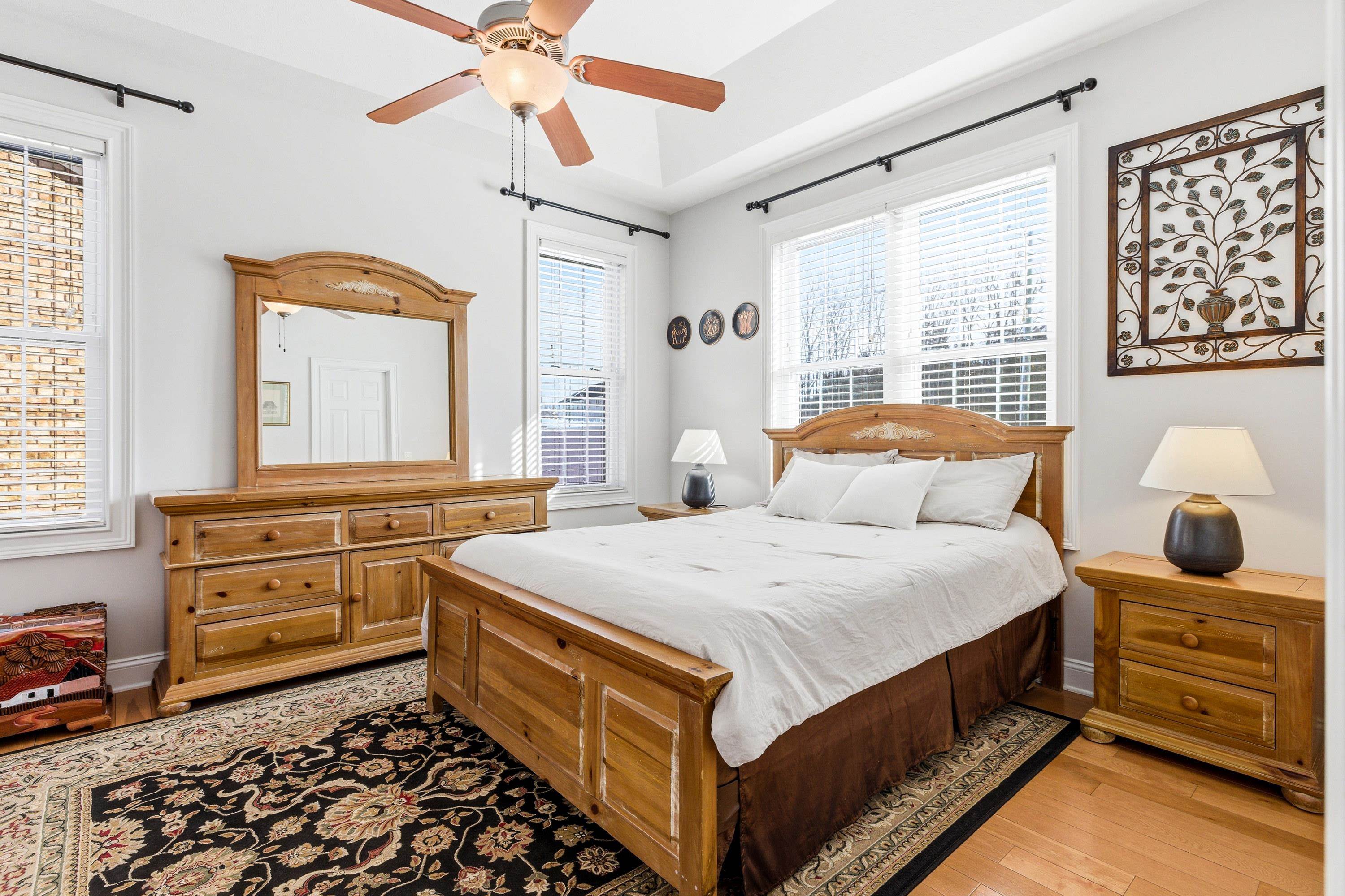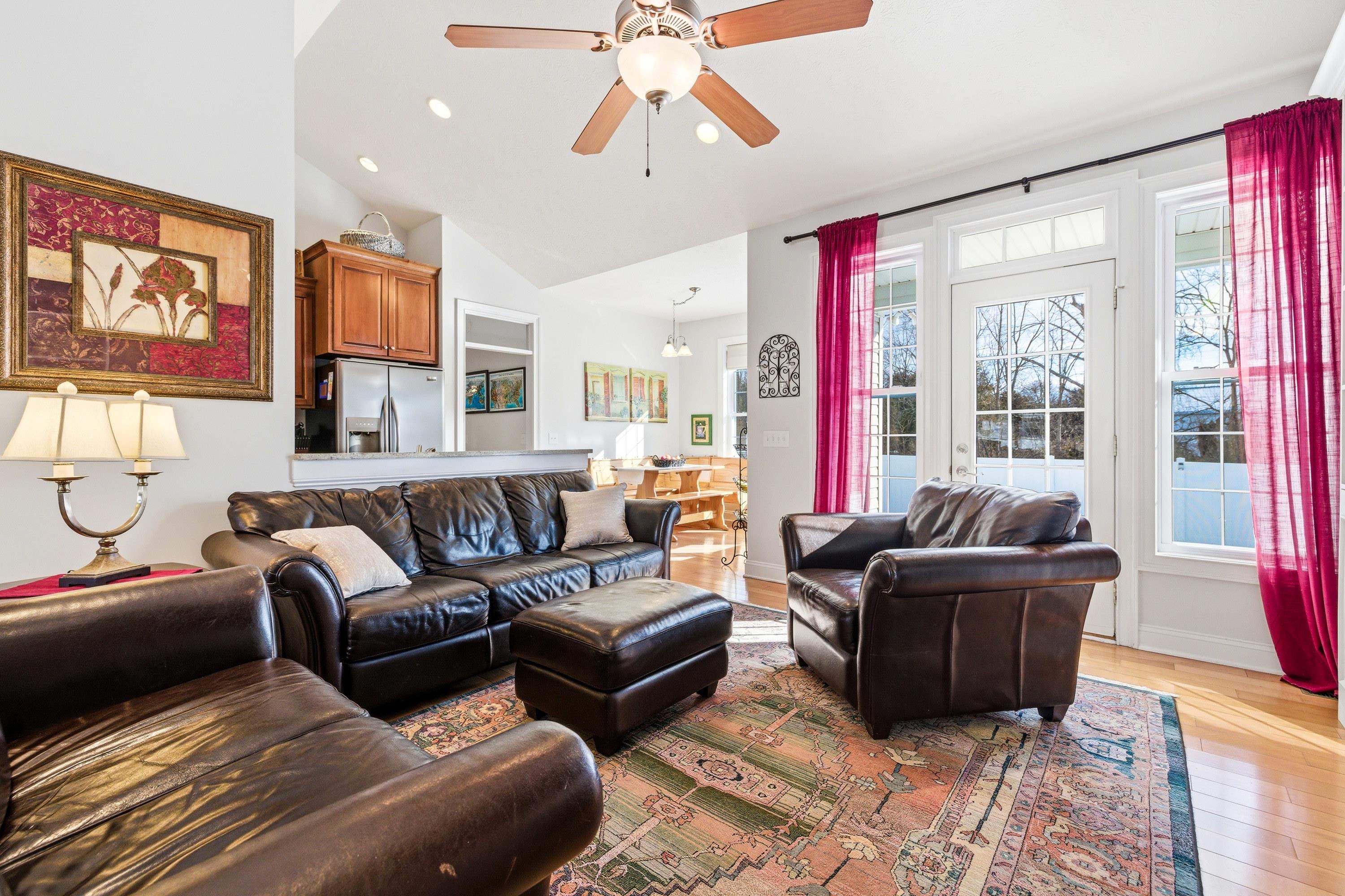 This custom-built, one-level home in Meadowbrook sits on a large, flat lot with a fully fenced backyard -- all just minutes from downtown Harrisonburg. The brick front exterior and covered back porch set the tone for the quality found throughout. Inside, the open floor plan flows effortlessly between the living, dining, and kitchen areas, with hardwood floors, high ceilings, a gas fireplace, transoms over most doors, upgraded trim, custom cabinetry, wainscoting in the dining room and ceiling fans in every bedroom and in the living room. The kitchen features a breakfast nook and stainless steel appliances. Three bedrooms and two full bathrooms are located on the main level, including the primary suite, while a fourth bedroom with its own full bathroom upstairs provides ideal space for guests or a dedicated home office. Step outside to enjoy the covered back porch and a large patio -- perfect for relaxing or entertaining in the fully fenced backyard. Meadowbrook offers 19 acres of community green space and walking trails, all within easy reach of shopping, dining, and major employers in the Harrisonburg area.
