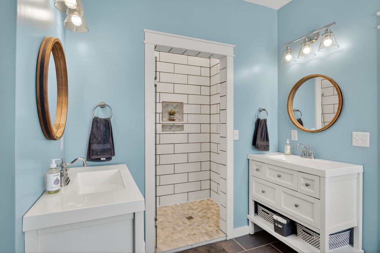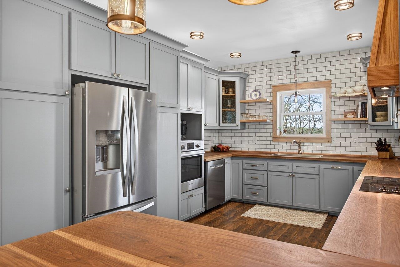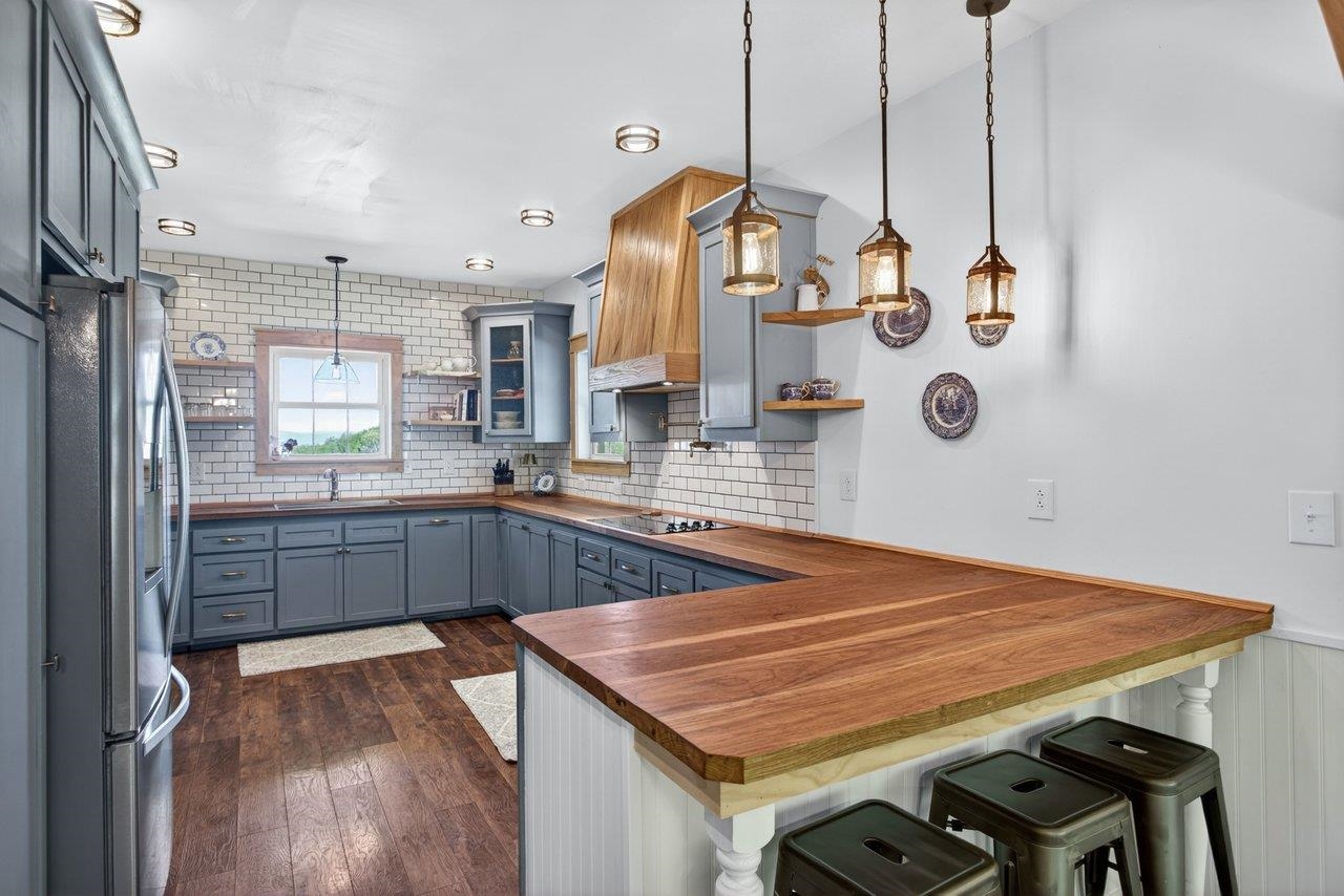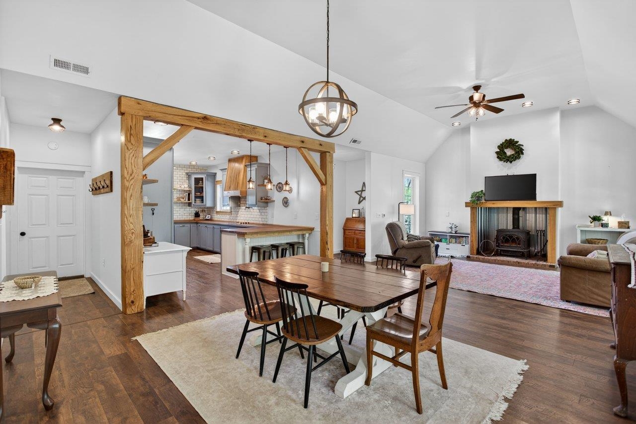 Tucked into the peaceful foothills of Keezletown, VA, this stunning craftsman-style modern farmhouse offers the perfect blend of rustic charm and contemporary comfort on 2.2 private acres. Backed up by mature woods, you’ll enjoy a serene, tucked-away setting while still being just minutes from Harrisonburg and all its conveniences. Step inside to discover an inviting open-concept layout highlighted by soaring ceilings and an abundance of natural light. The spacious living and dining areas flow seamlessly, creating the ideal space for both everyday living and entertaining. At the heart of the home, the beautifully designed kitchen showcases exposed beam framing, warm butcher block countertops, and all the modern upgrades you could want—combining functionality with timeless style. The living room is a true showstopper, anchored by a massive fireplace with a woodstove insert—perfect for cozy evenings during cooler months. The home features three bedrooms and two and a half baths, offering both comfort and flexibility. A versatile, heated and cooled bonus space provides endless possibilities—perfect for a home office, recreation room, or hobby space. Downstairs, a large unfinished basement presents incredible potential for expansion.