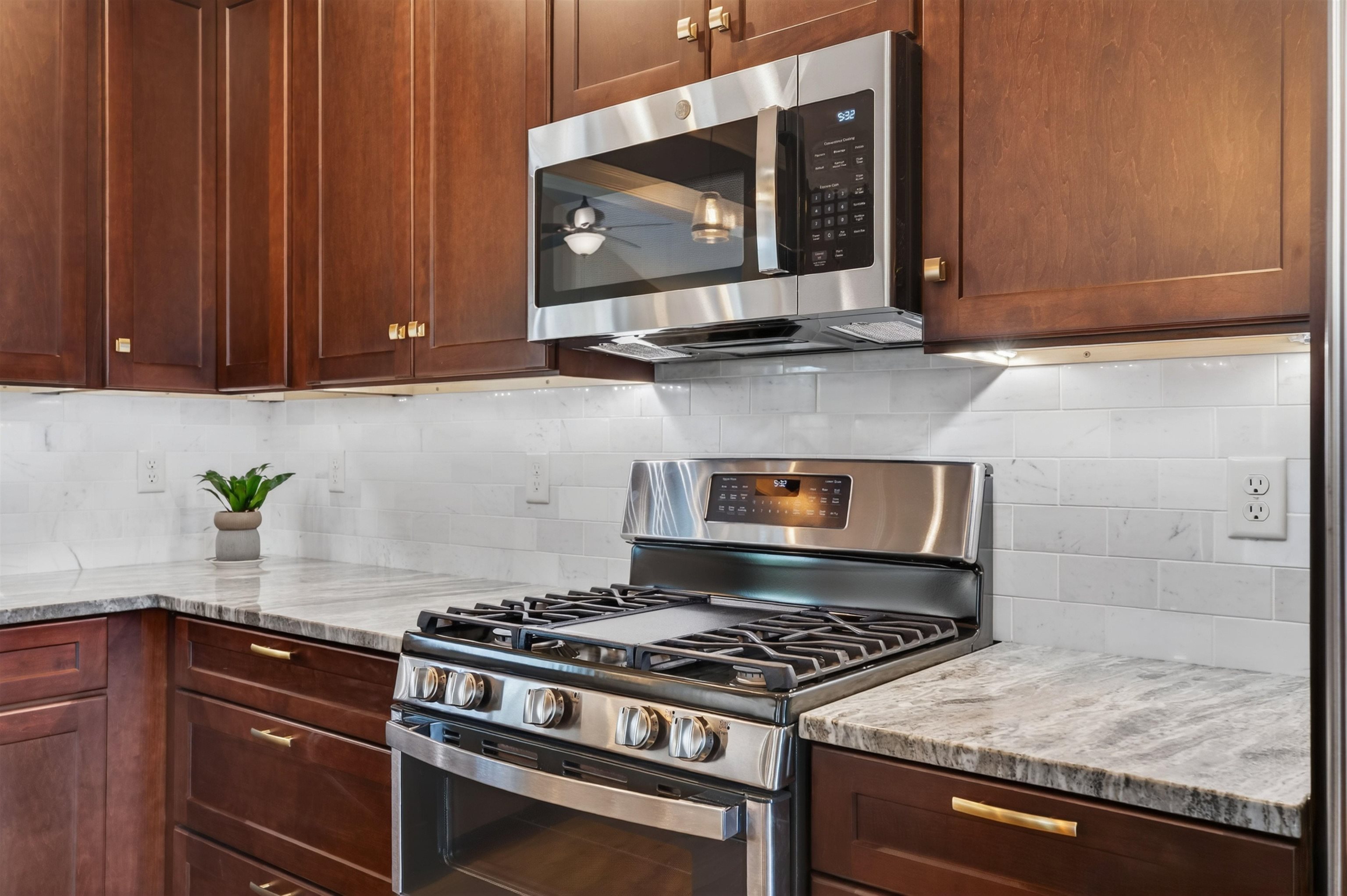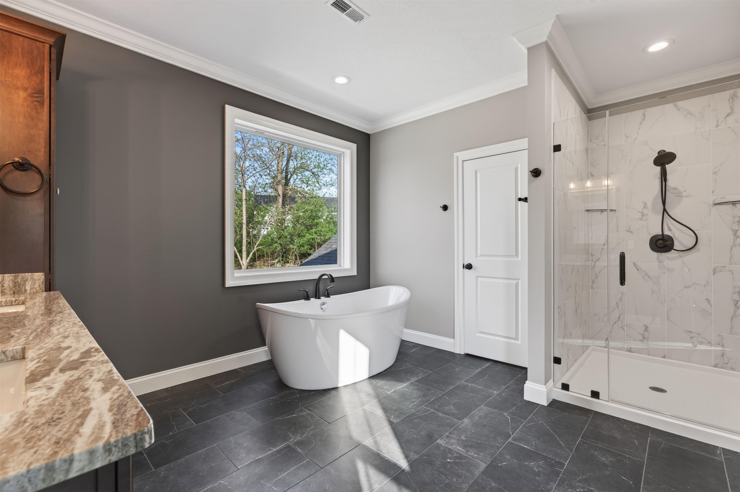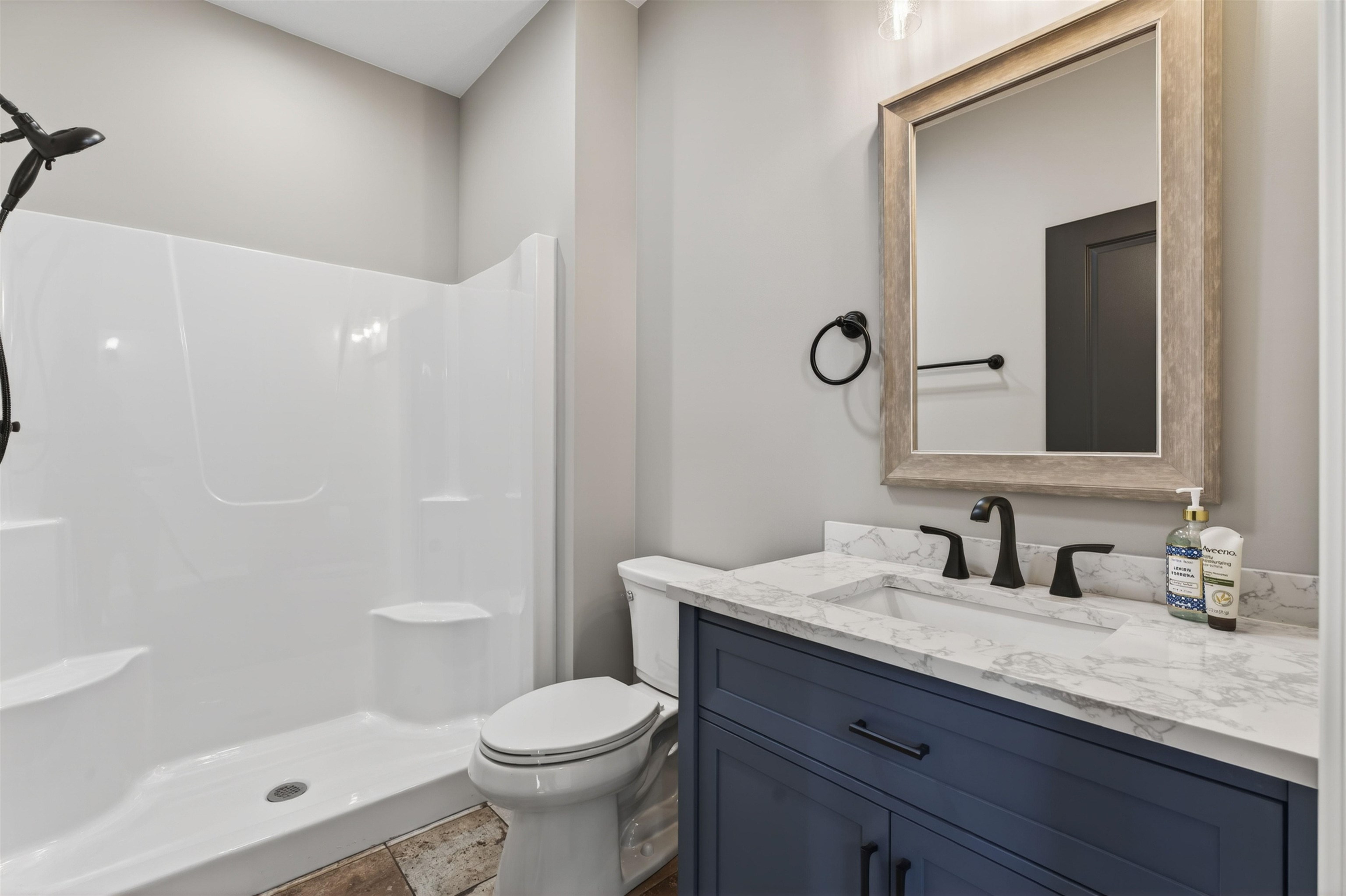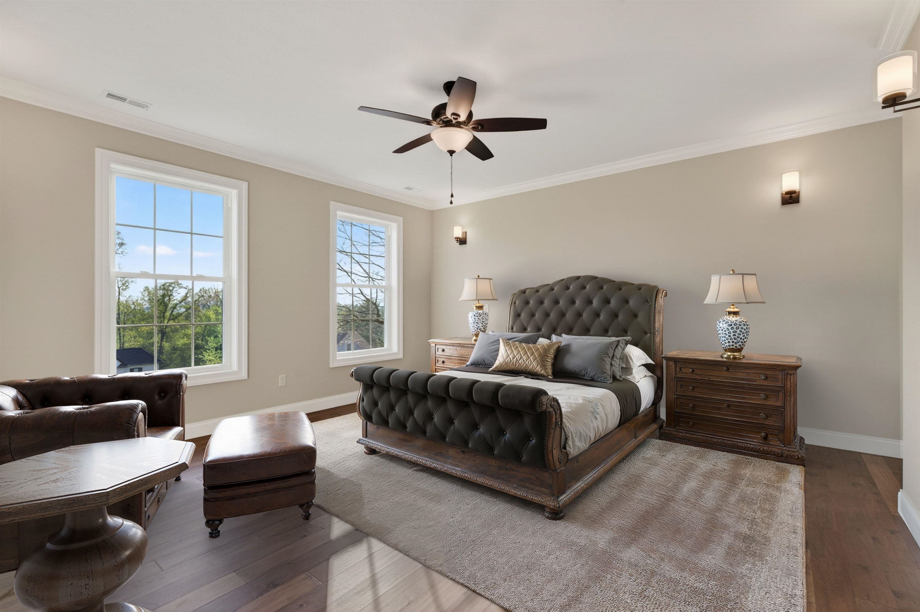 Welcome to this stunning custom home in Crossroads Farm, ideally situated on a quiet cul-de-sac. This spacious 5-bedroom, 5 full-bath residence offers exceptional versatility. The open-concept main-level features a welcoming living room with a beautiful stone fireplace, a kitchen with large island and dual pantries, a dining room, and sunroom with vaulted ceilings looking out onto a private wooded backyard. Upstairs, the primary suite has a large walk-in closet with custom shelving, a spa-like en-suite features a luxurious soaking tub, separate shower, double vanity, and private water closet. Upstairs includes two additional bedrooms with their own full baths, a bonus sitting area with gorgeous mountain views and a convenient laundry room. The finished walkout basement offers a private apartment setup with bedroom, family room, bonus room, bathroom, and kitchenette—ideal for guests or multi-generational living. Other highlights include an oversized two-car garage with 10x10 doors suitable for an RV or boat. The home has engineered hardwood floors, insulated precast foundation walls, energy star windows, 2 heat pumps and 2 water heaters for enhanced comfort and efficiency. Truly a place to call home. Some photos virtually staged.