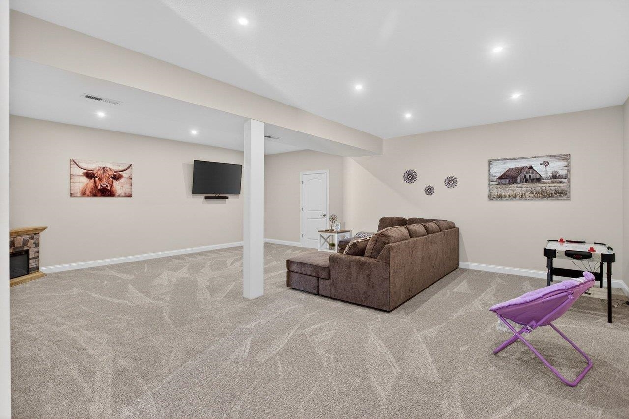 Welcome to 16823 Kites Drive, nestled at the foothills of the Blue Ridge Mountains in Elkton, Virginia. This private oasis was thoughtfully designed and custom-built by the current owner, & has been meticulously maintained ever since. Set on a beautifully manicured, partially wooded lot, the property offers exceptional privacy & a serene, park-like setting. Enjoy the peaceful surroundings from the inviting covered front porch or the expansive rear deck—perfect for relaxing or entertaining. Inside, the open-concept great room showcases rich hardwood flooring, a tray ceiling, & an abundance of natural light. The main level features 3 spacious bedrooms and 2.5 baths, along with a generously sized mudroom complete with laundry & ample storage. The primary suite provides a comfortable retreat, featuring a well-appointed en-suite bath with a soaking tub, separate shower, & a large walk-in closet. The recently finished lower level expands the living space significantly, offering a cozy den, a second kitchen ideal for hosting gatherings, a recreation room, multiple storage areas, & a utility room. You’ll be impressed by the spacious 26×24 detached garage, conveniently connected to the home by a breezeway.