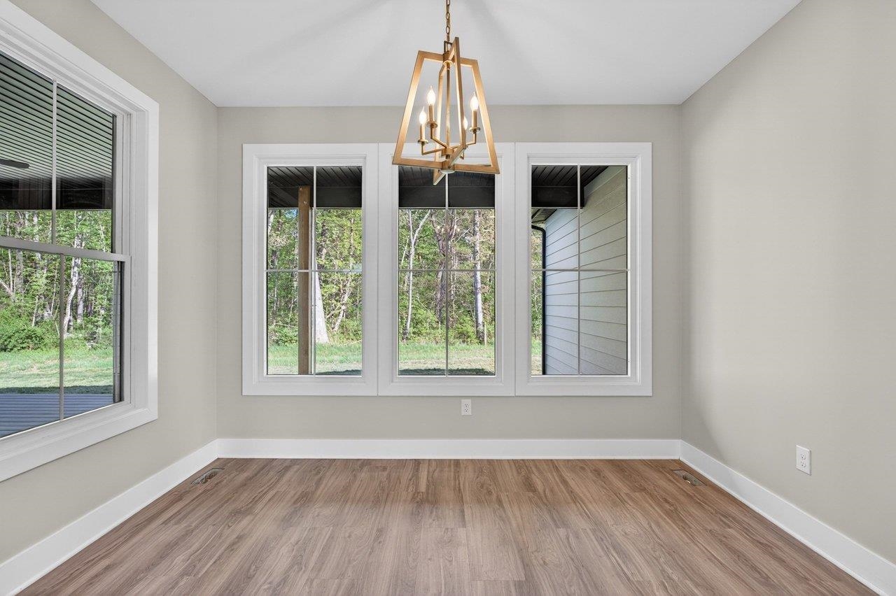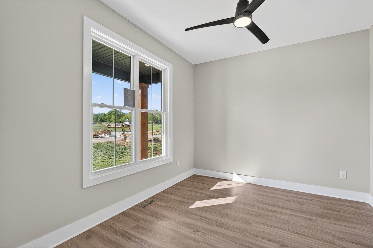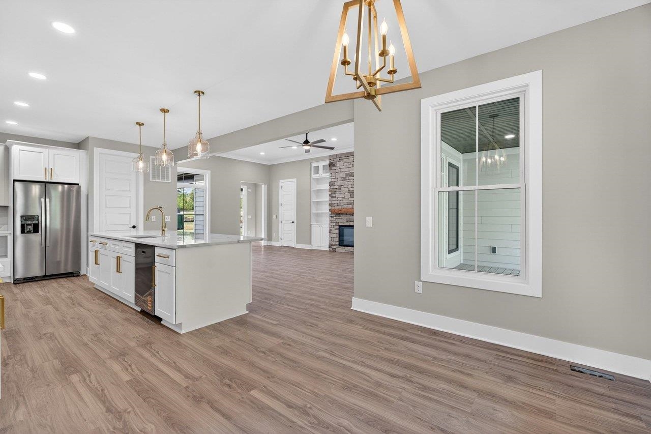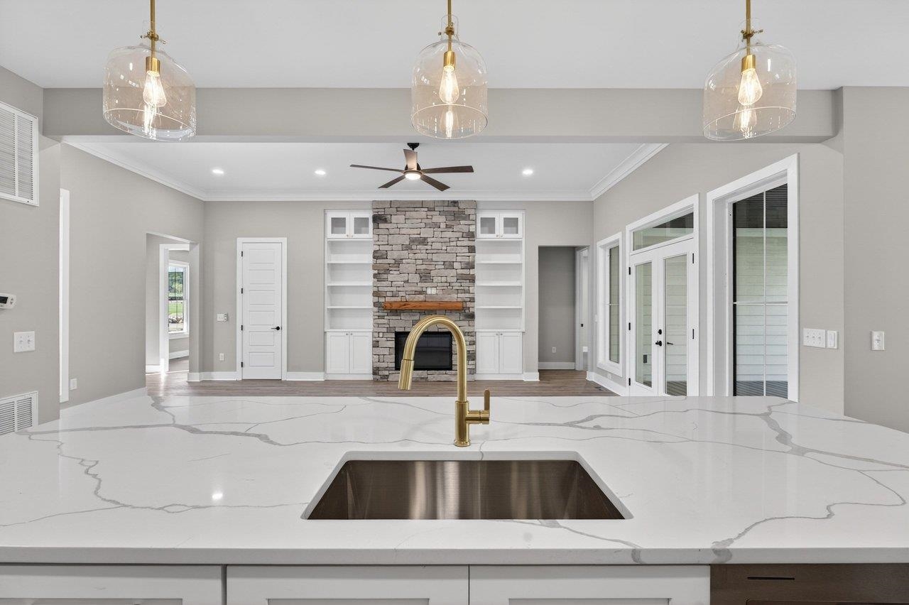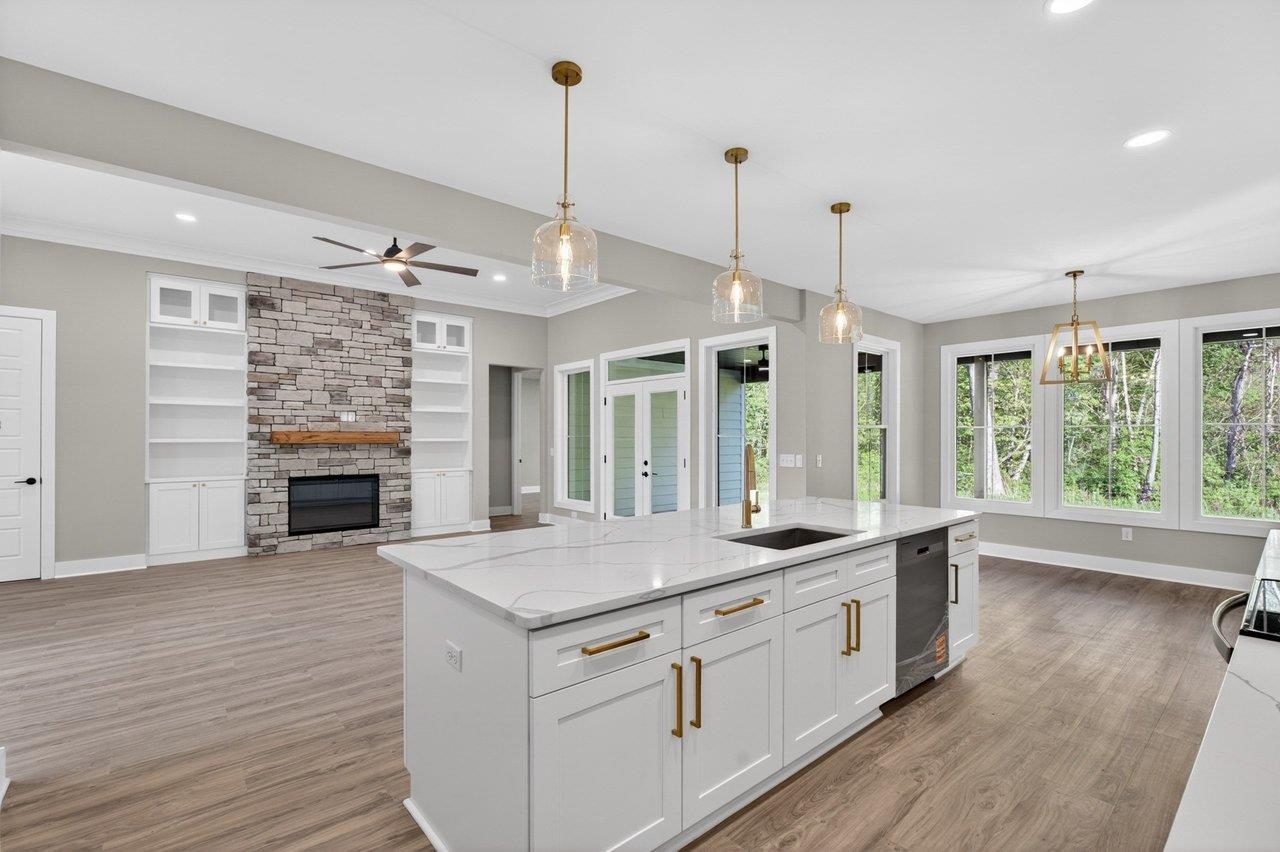 Welcome to your next chapter in The Ponds, one of Rockingham County’s most sought-after communities—ideal for those ready to simplify or step into more space. Built by a reputable local builder and backed by a one-year warranty for stress-free living, this new home blends quality craftsmanship with elevated design. Enjoy a thoughtful layout with soaring 13’ ceilings, luxury vinyl plank flooring throughout, and a stunning 10’ quartz kitchen island anchoring the open-concept space. The electric fireplace adds warmth and style, while a spacious pantry keeps everything organized. With 4 bedrooms and 2.5 baths, there’s room for guests, hobbies, or a home office. The primary suite is a true retreat with a spa-like en-suite, dual vanities, and a custom Ikea style walk-in closet. Relax on the covered front porch with pond views or unwind on the private back porch with wooded surroundings. Located minutes from James Madison University, Cave Hill Brewery, and Brix & Columns Vineyard, and convenient to Charlottesville and Harrisonburg, this home offers the perfect blend of tranquility and convenience.