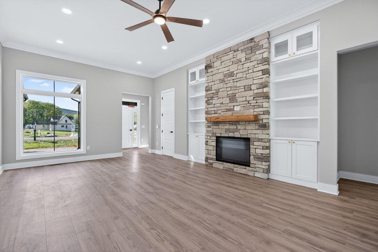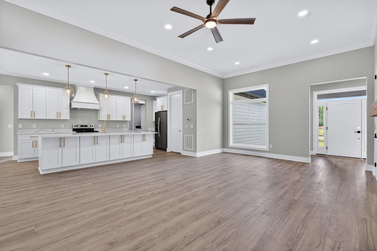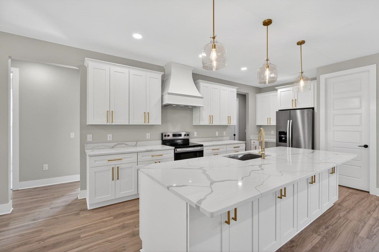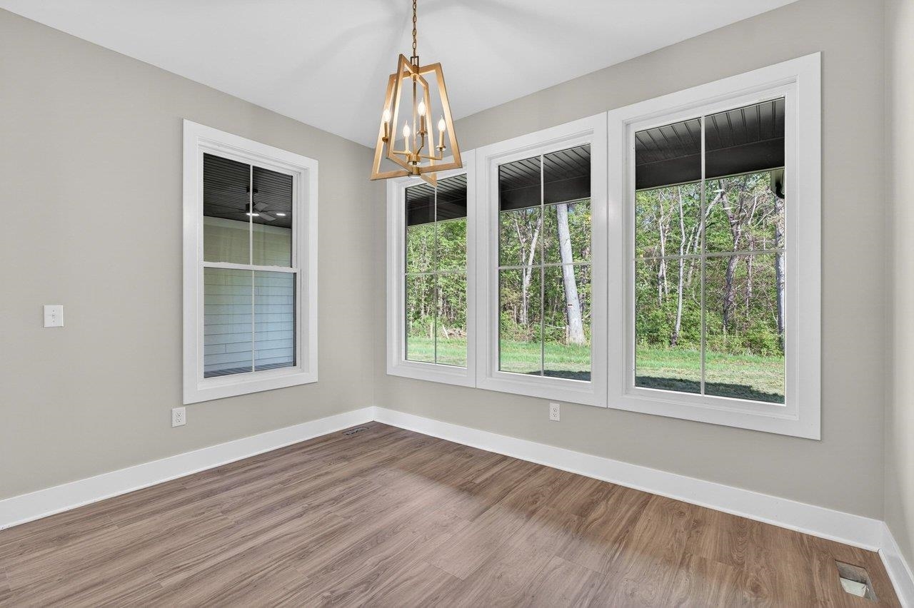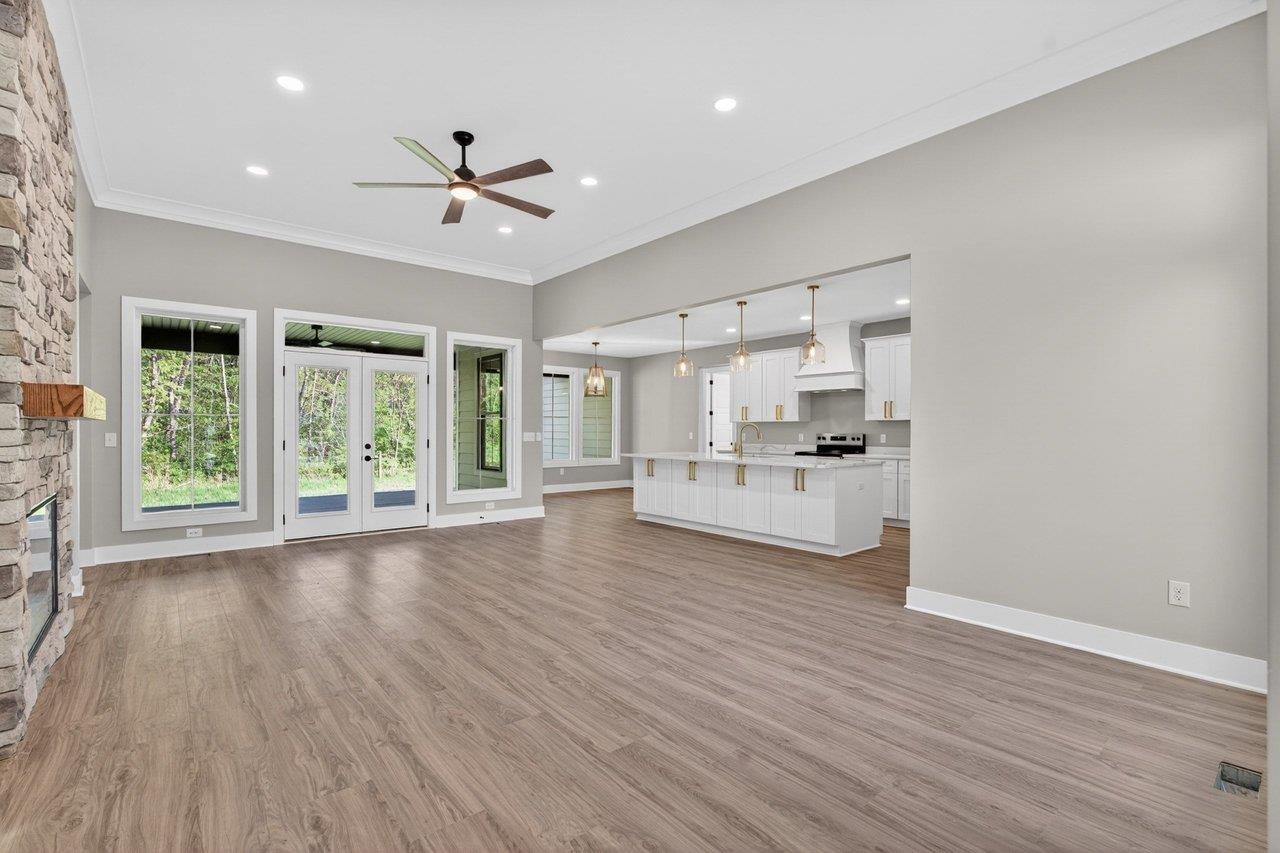 Welcome to your next chapter in The Ponds, one of Rockingham County’s most sought-after communities—ideal for those ready to simplify or step into more space. Built by a reputable local builder and backed by a one-year warranty for stress-free living, this new home blends quality craftsmanship with elevated design. Enjoy a thoughtful layout with soaring 13’ ceilings, luxury vinyl plank flooring throughout, and a stunning 10’ quartz kitchen island anchoring the open-concept space. The electric fireplace adds warmth and style, while a spacious pantry keeps everything organized. With 4 bedrooms and 2.5 baths, there’s room for guests, hobbies, or a home office. The primary suite is a true retreat with a spa-like en-suite, dual vanities, and a custom Ikea style walk-in closet. Relax on the covered front porch with pond views or unwind on the private back porch with wooded surroundings. Located minutes from James Madison University, Cave Hill Brewery, and Brix & Columns Vineyard, and convenient to Charlottesville and Harrisonburg, this home offers the perfect blend of tranquility and convenience.