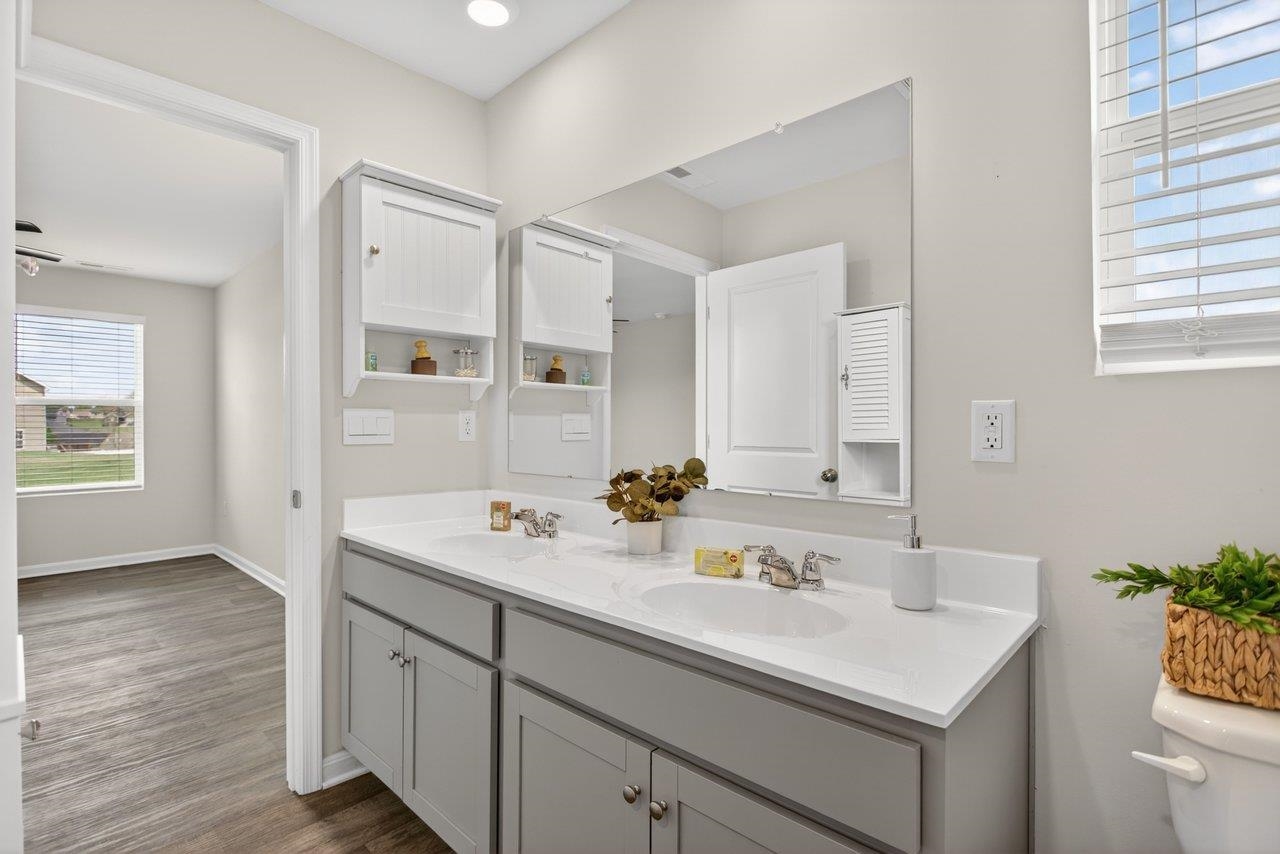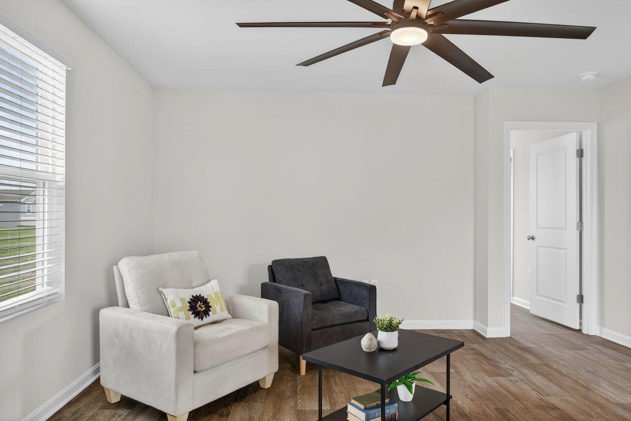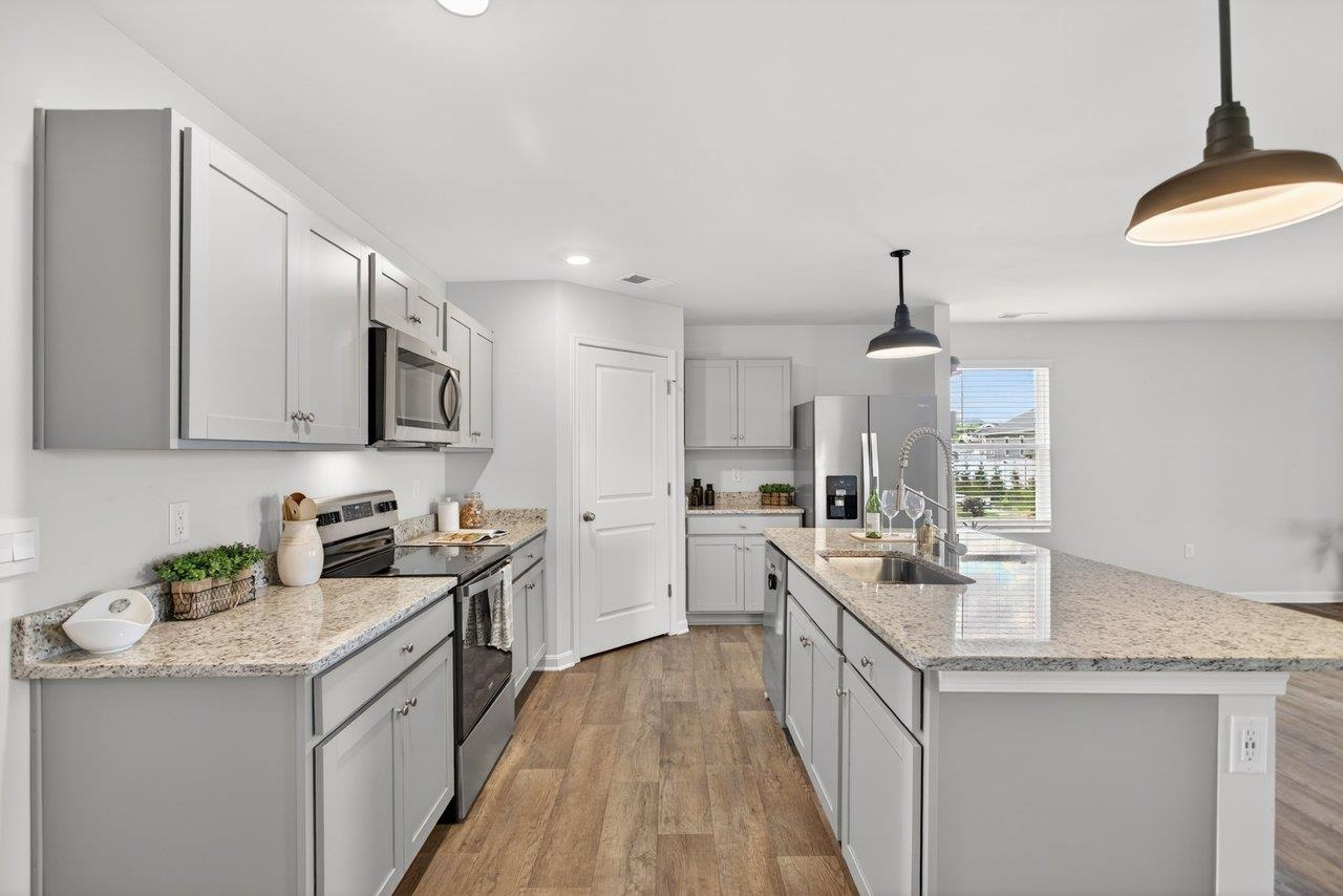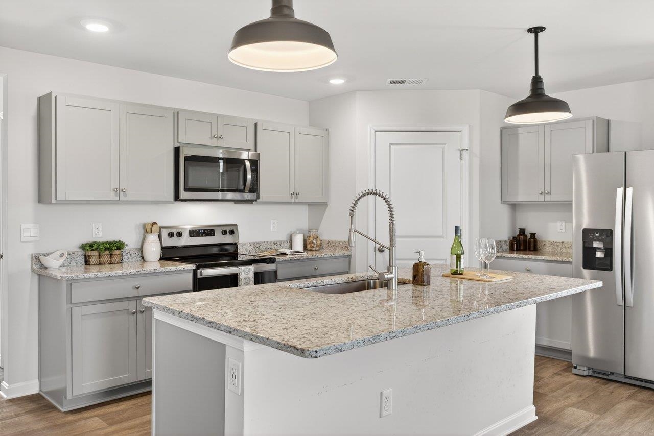 Beautiful 2023 one-level home situated on a flat lot in Coyote Run, offering a bright open-concept layout with modern finishes throughout. The kitchen is the centerpiece of the home, featuring granite countertops, a large island with seating, stainless steel appliances, ample cabinetry, and a dedicated pantry, all seamlessly flowing into the spacious living area. The main living space is filled with natural light from multiple windows and features durable luxury vinyl plank flooring, creating a warm and inviting atmosphere. The primary suite offers a comfortable retreat with generous space, a large walk-in closet, and a private bath with a large walk-in shower, while the additional bedrooms provide flexibility for guests, office space, or everyday living. Sliding glass doors lead to a covered screened porch, perfect for relaxing or entertaining, overlooking a wide, open yard with plenty of usable space. Additional highlights include an attached 2-car garage, concrete driveway, neutral color palette, and a functional layout designed for easy living.